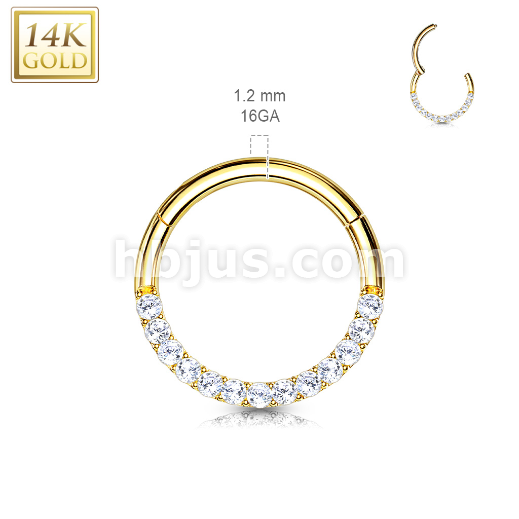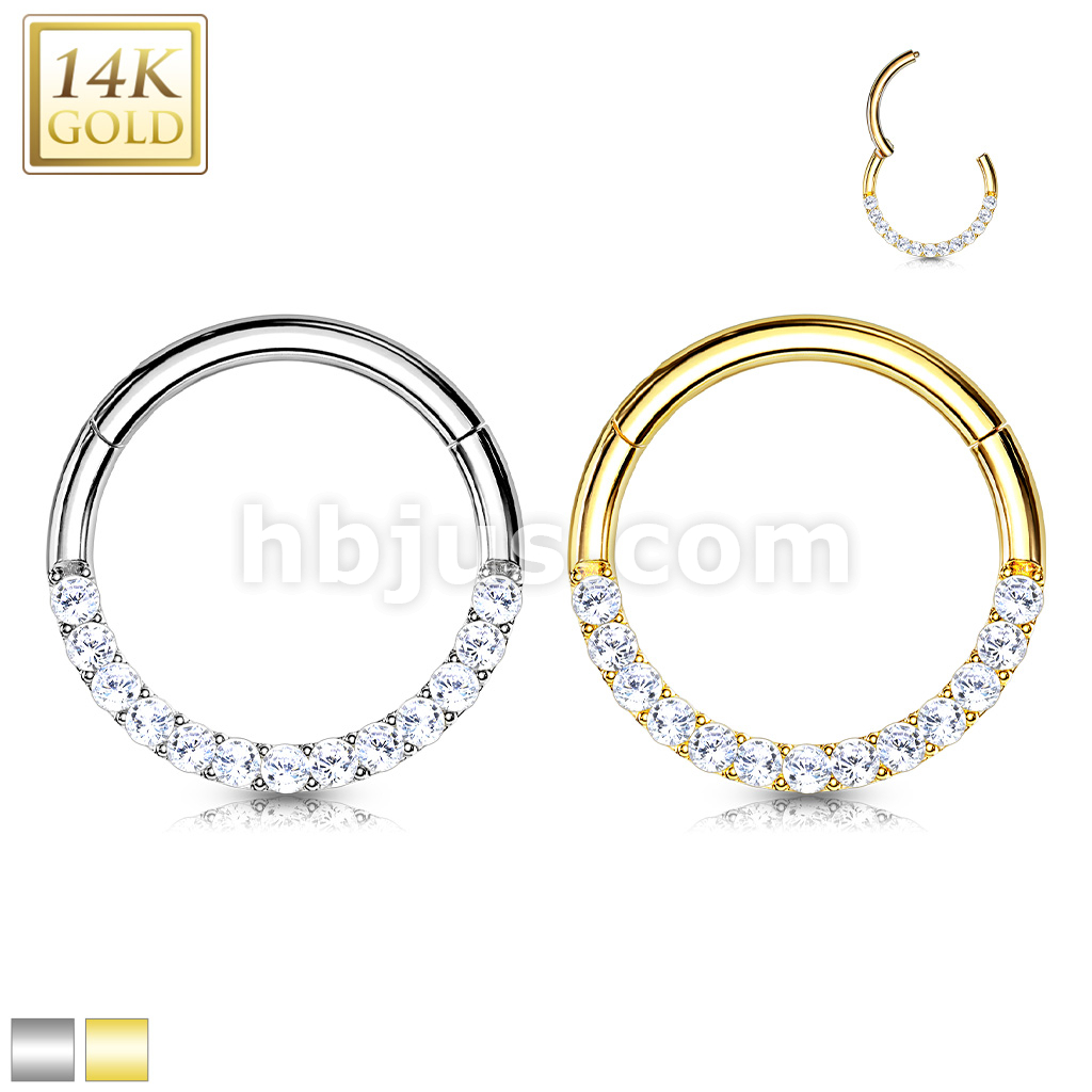 14K Gold CZ Paved Half Circle Hinged Hoop Rings for Septum, Daith and More
