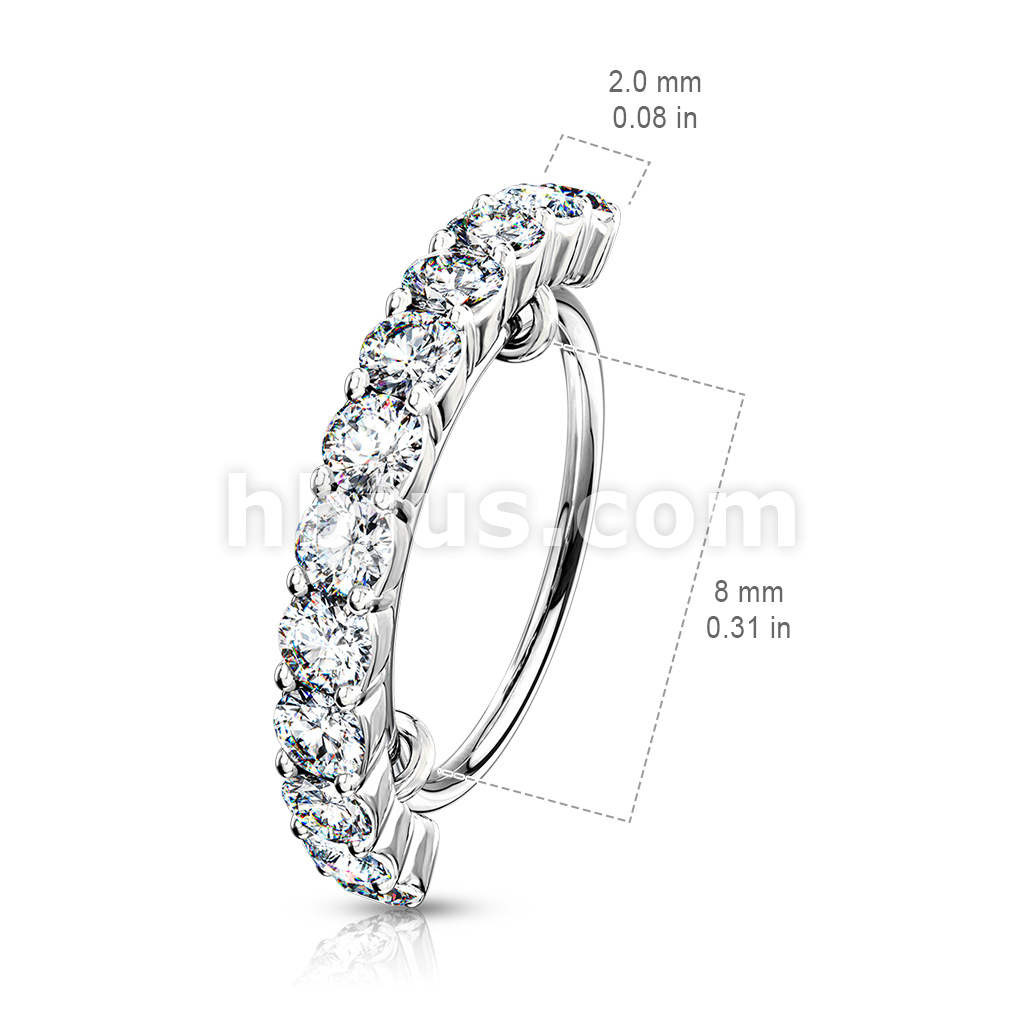 Half Circle Lined CZ 316L Surgical Steel Bendable Hoop Ring