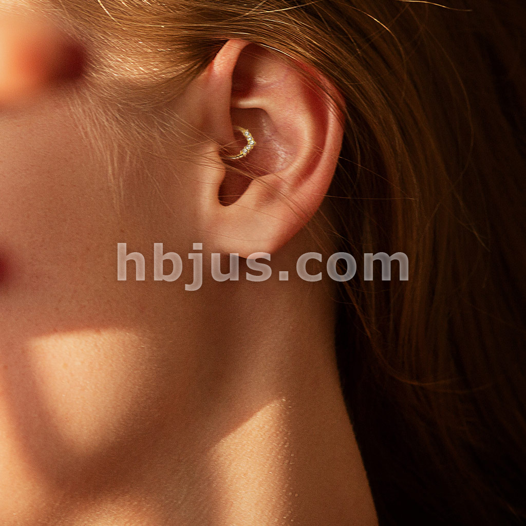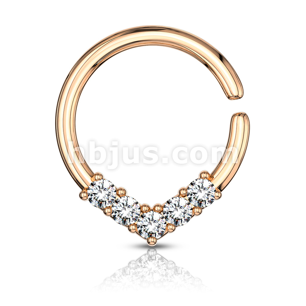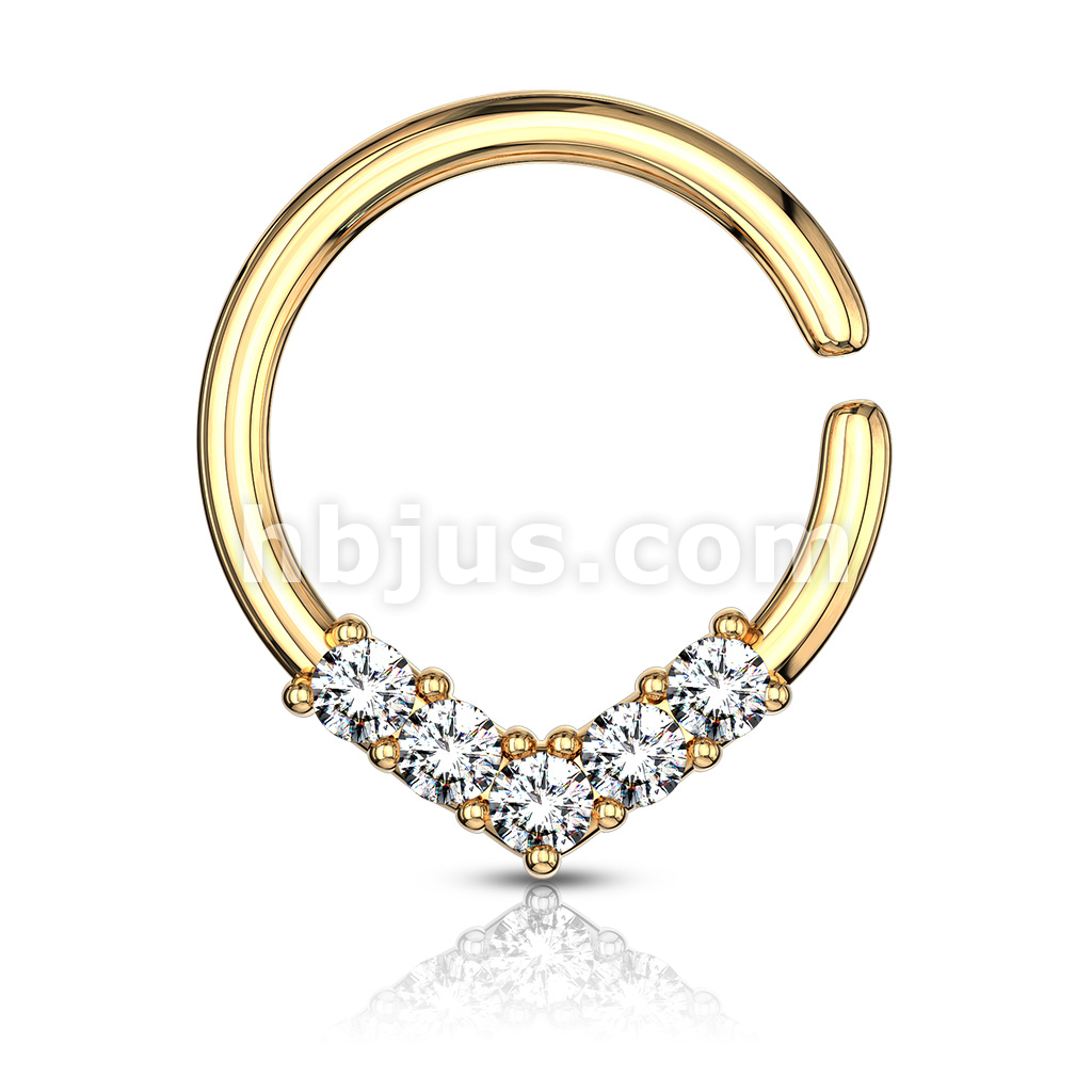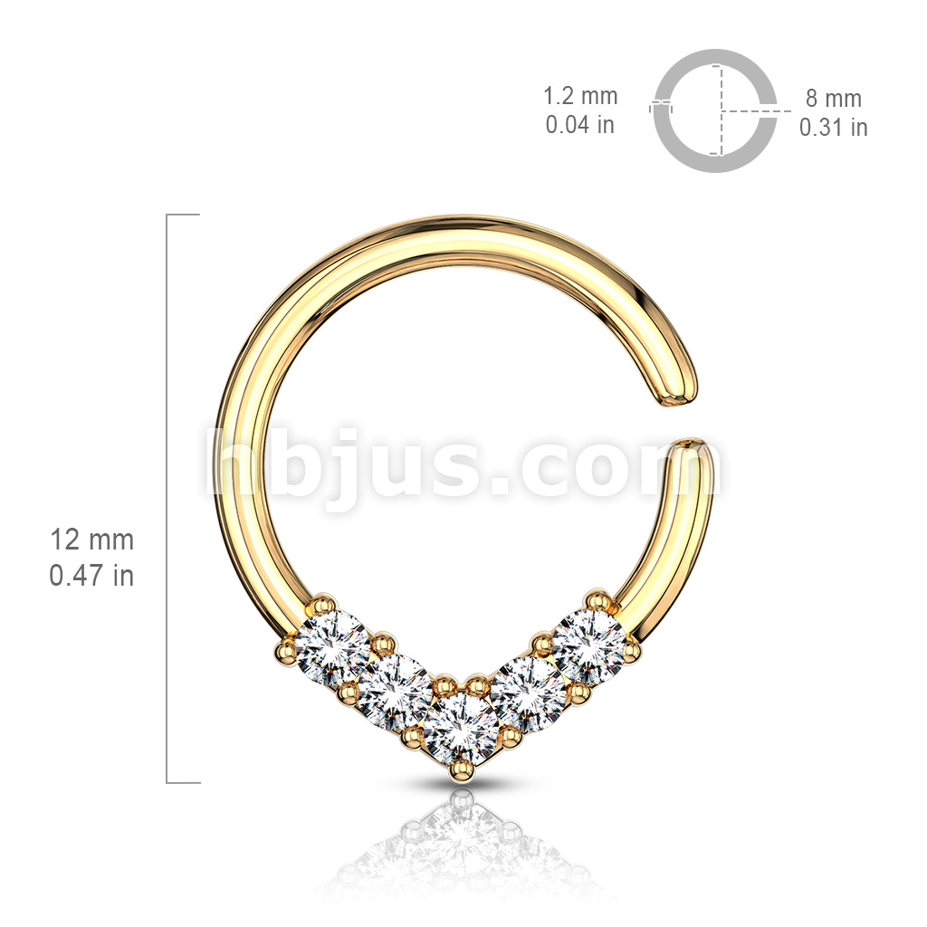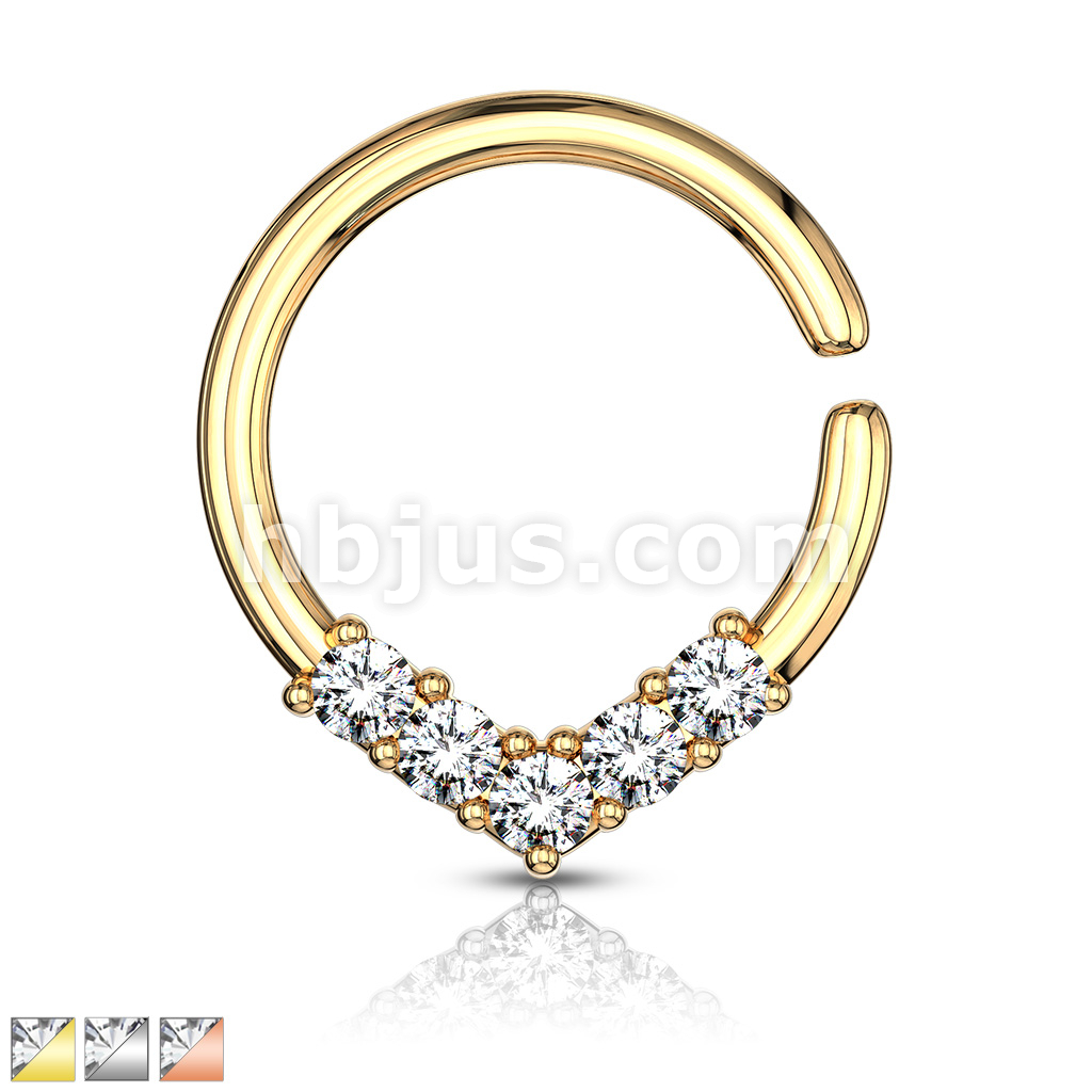 5 CZ Set V Shaped on Round Bendable Cut Ring for Cartilage, Tragus, Septum, and More
