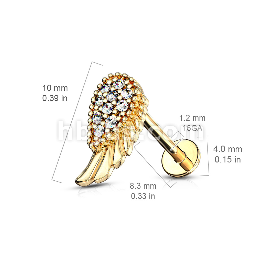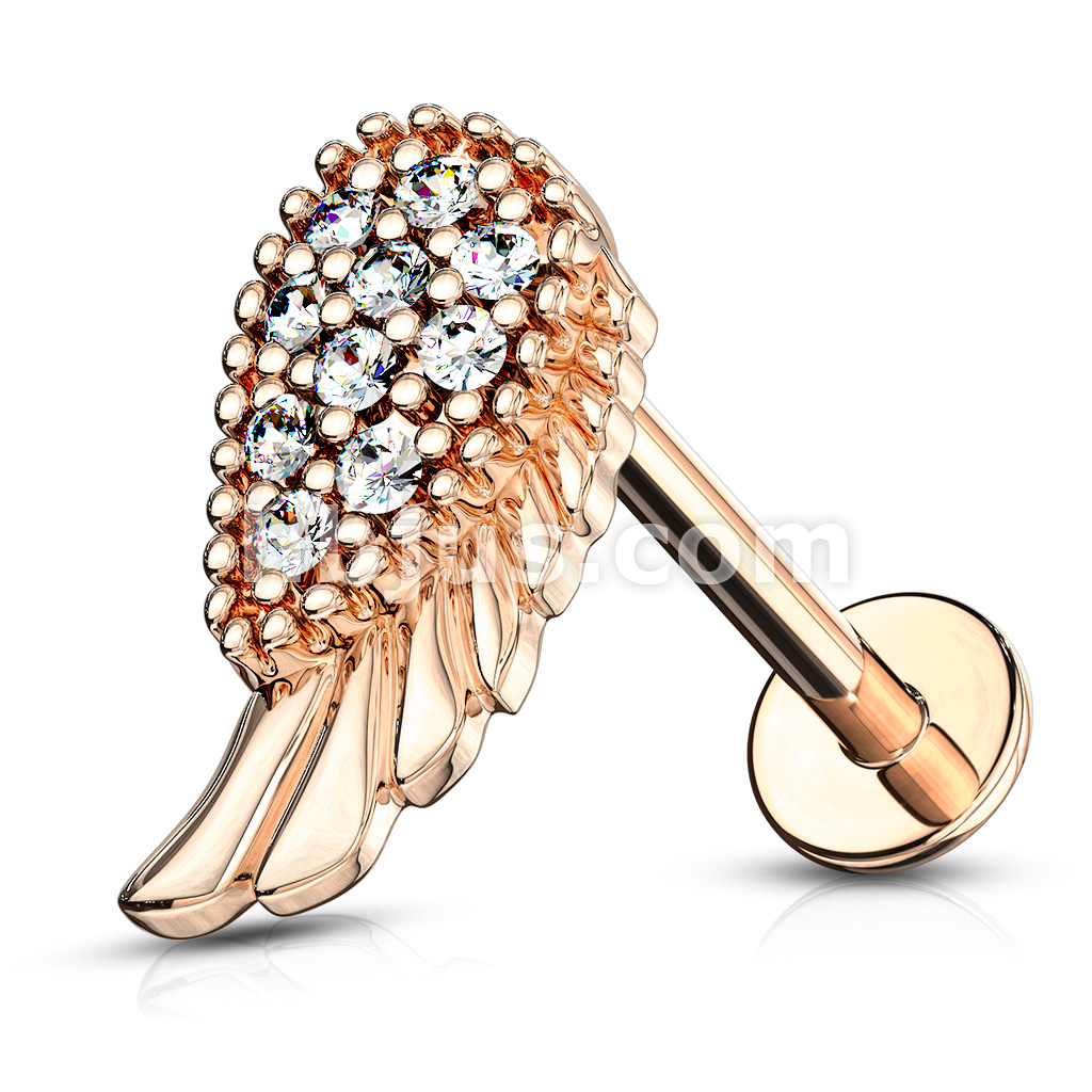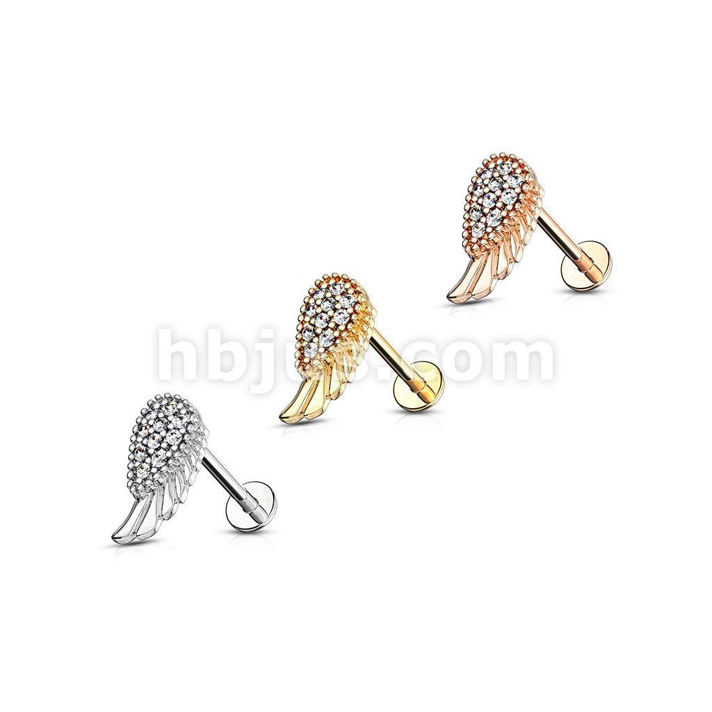 CZ Paved Angel Wing Top Internally Threaded 316L Surgical Steel Labret, Monroe, Ear Cartilage Studs