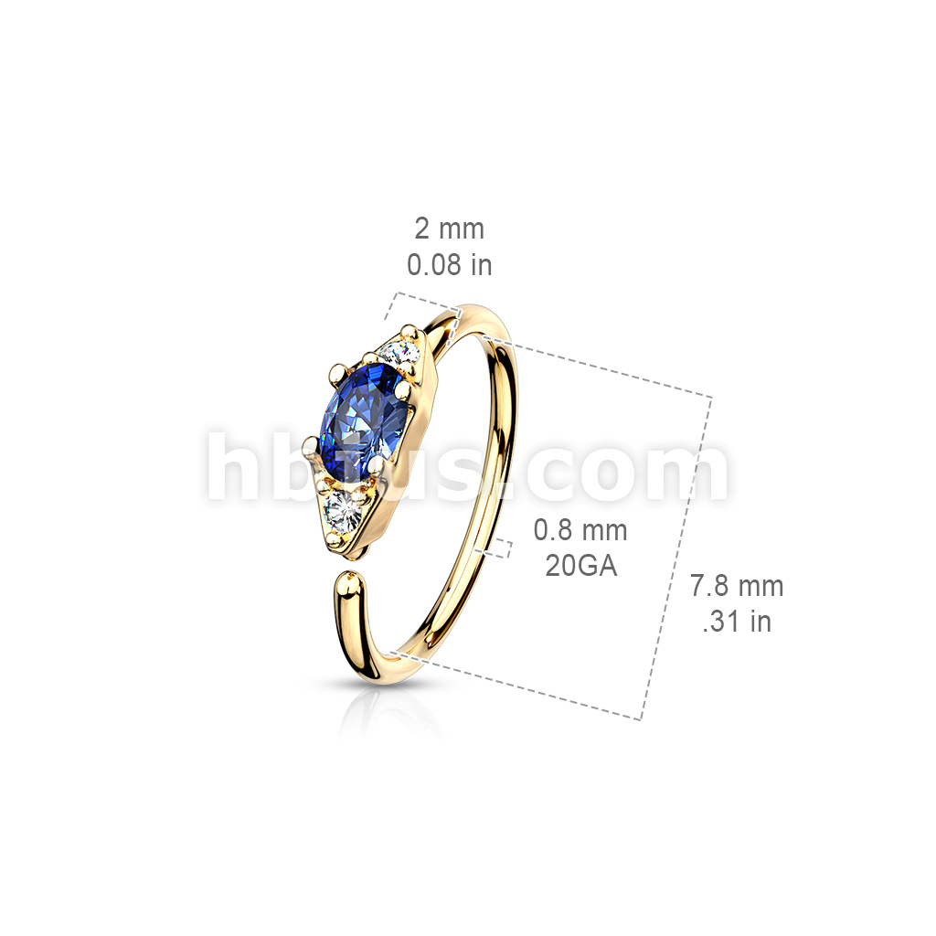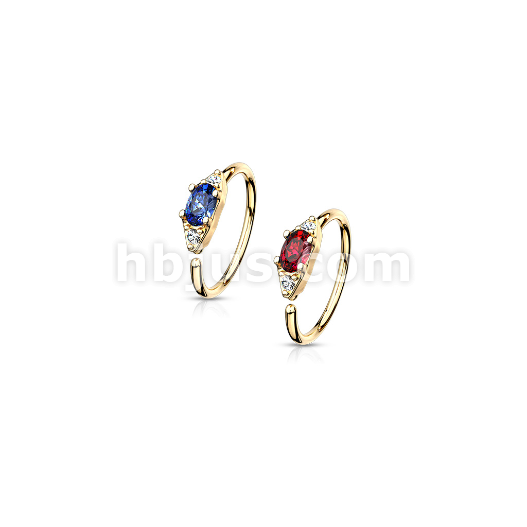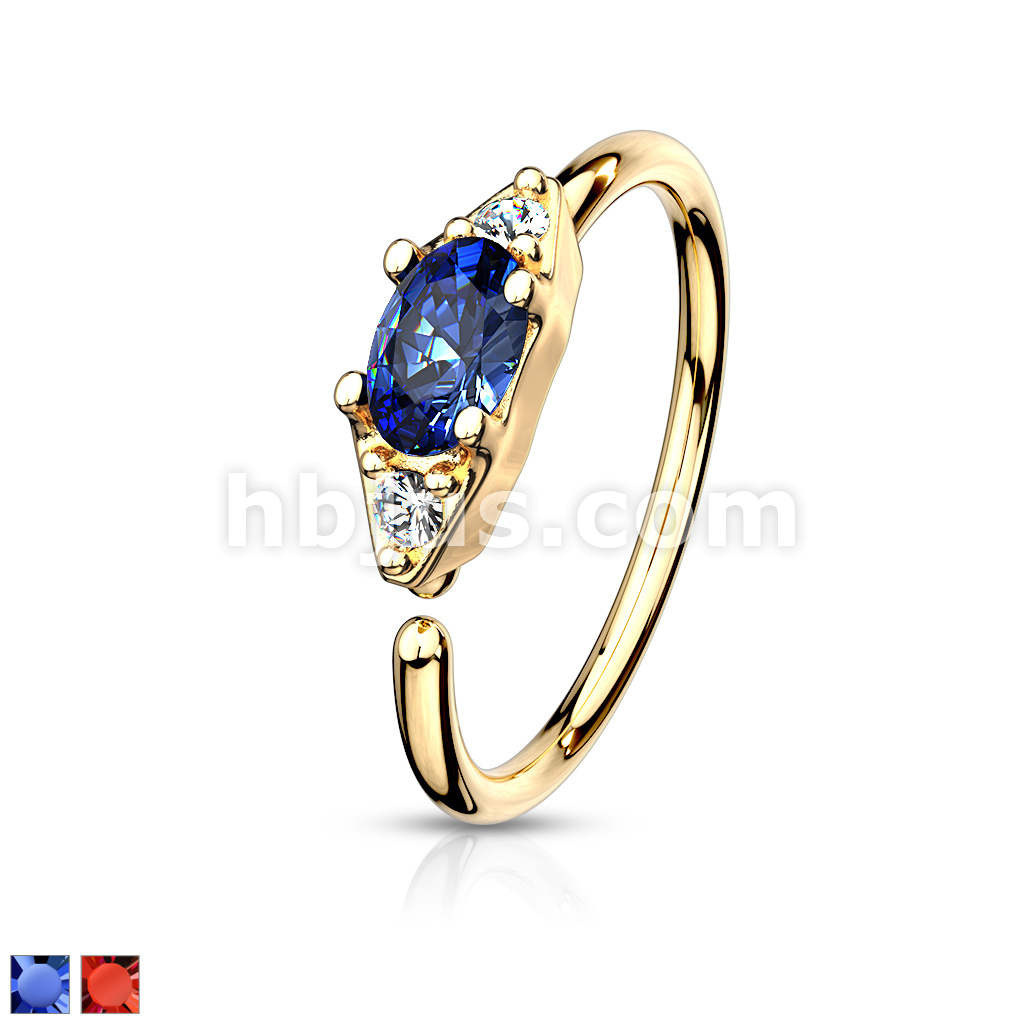 Double CZ with Prong Set Oval CZ Center Bendable Nose, Cartilage Hoop Rings