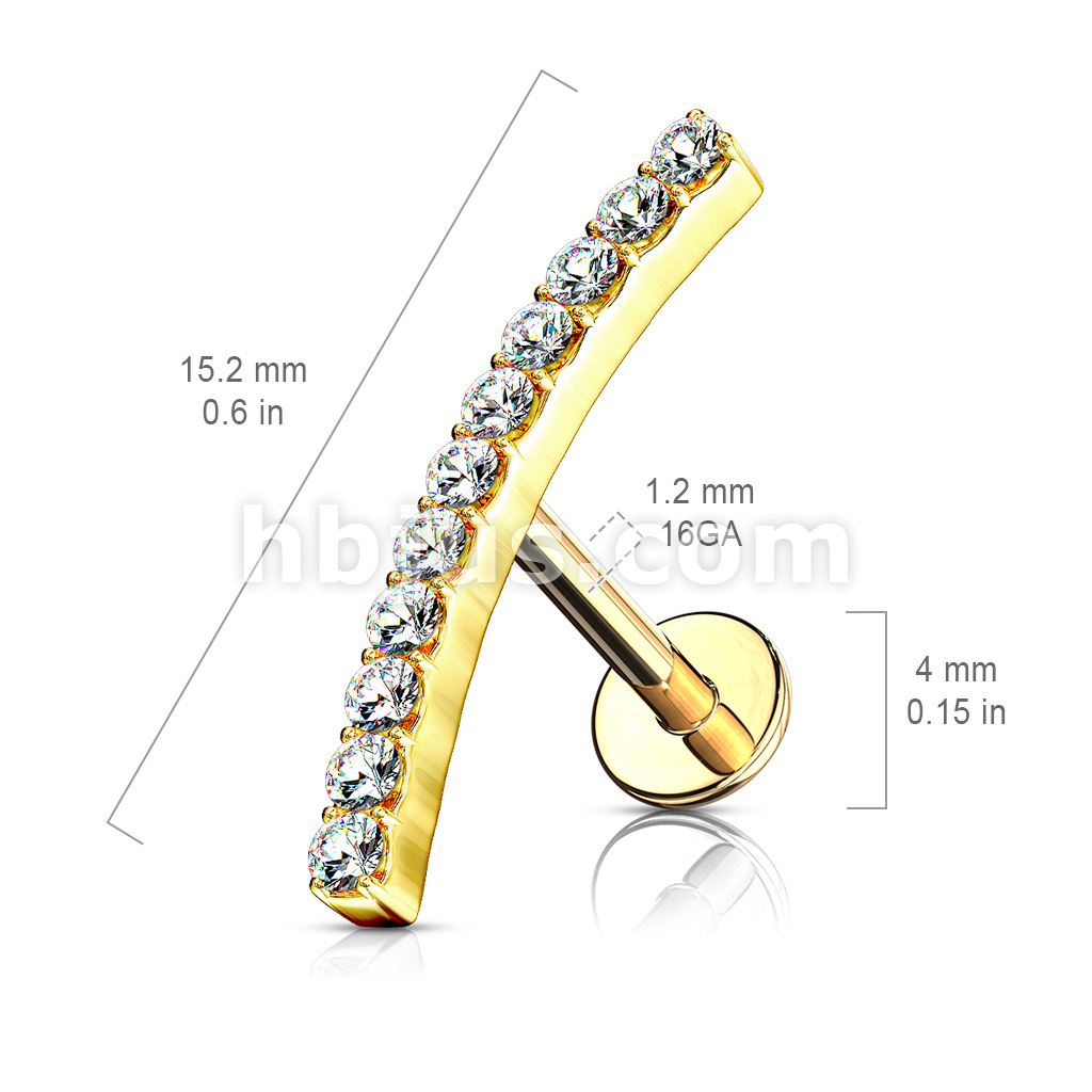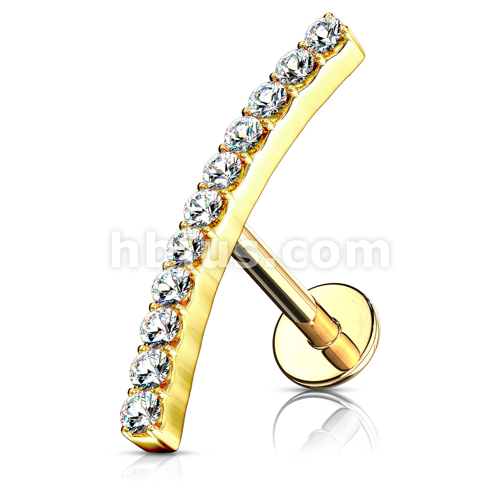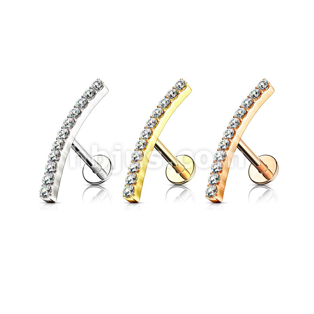 Lined CZ Curve Top 316L Surgical Steel Internally Threaded Labret, Monroe, Cartilage Studs
