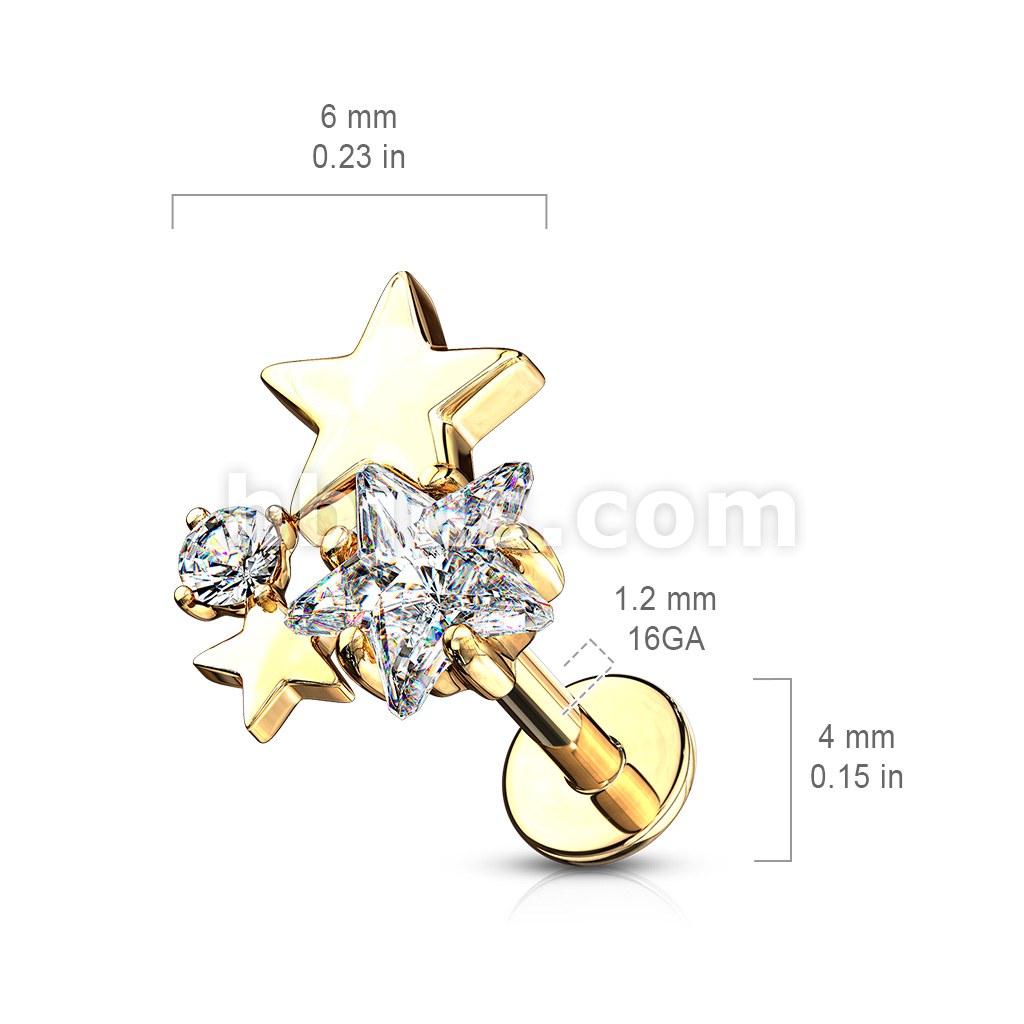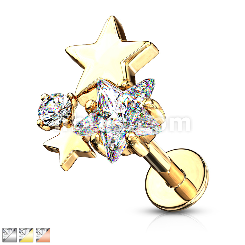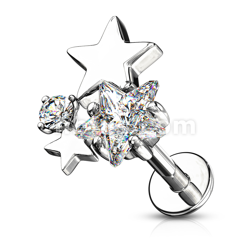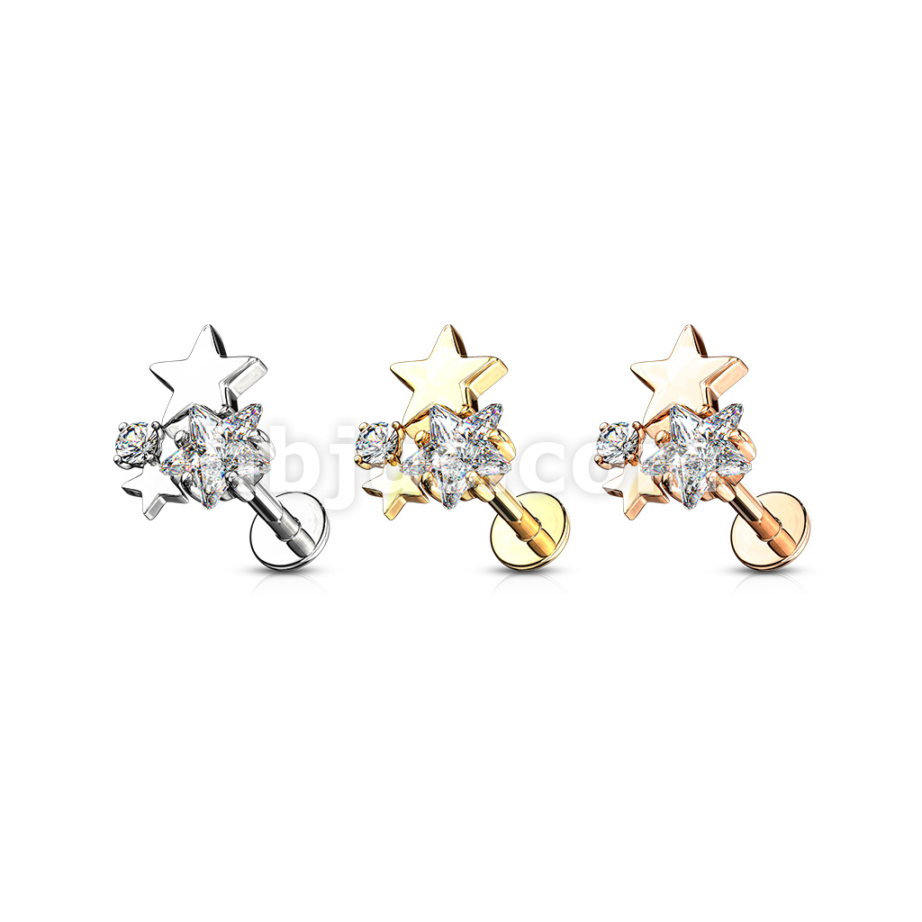 Cluster CZ Star Top Internally Threaded 316L Surgical Steel Flat Back Studs for Labret, Monroe, Ear Cartilage and More