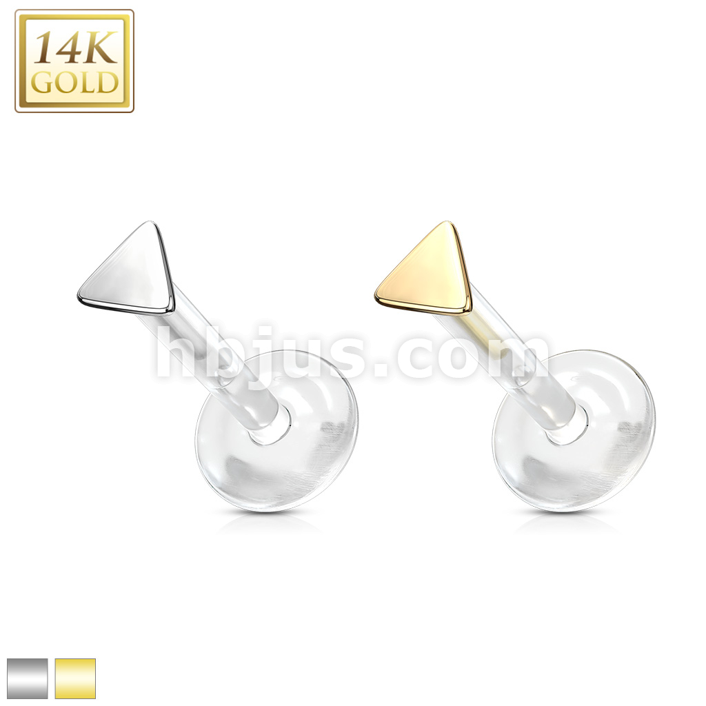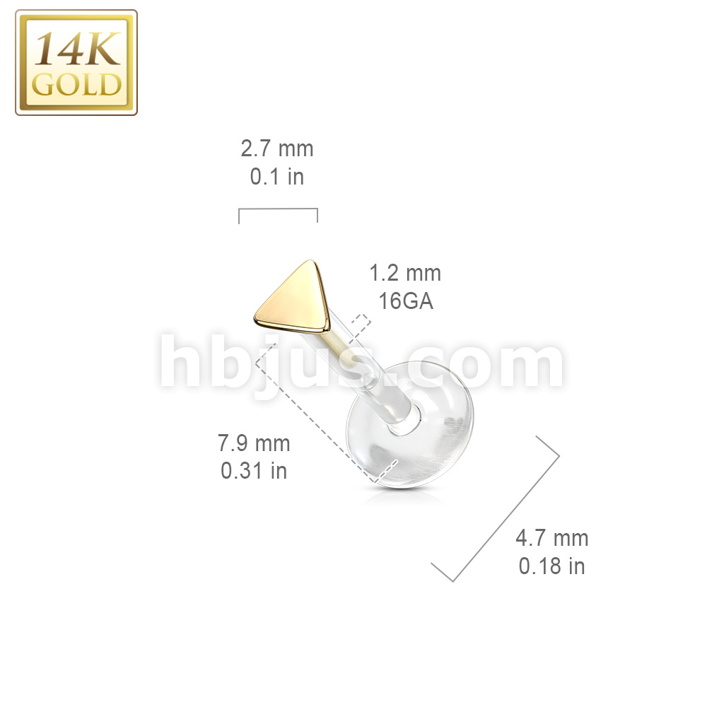 14K Gold Triangle Top Bio Flex Flat Back Studs for Labret, Monroe, Ear Cartilage and More