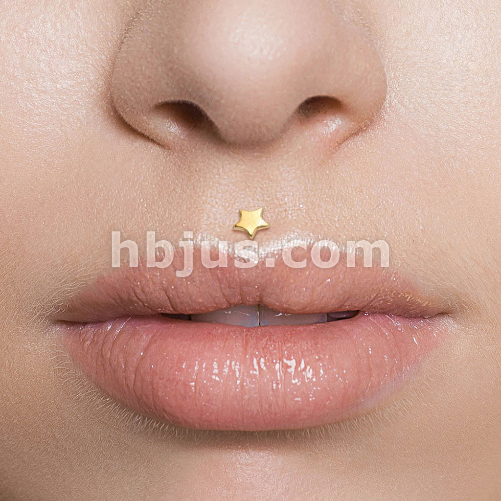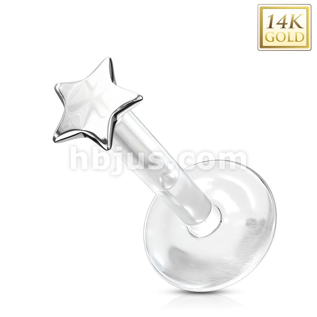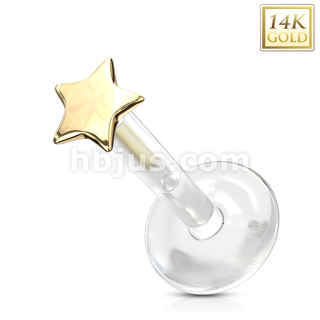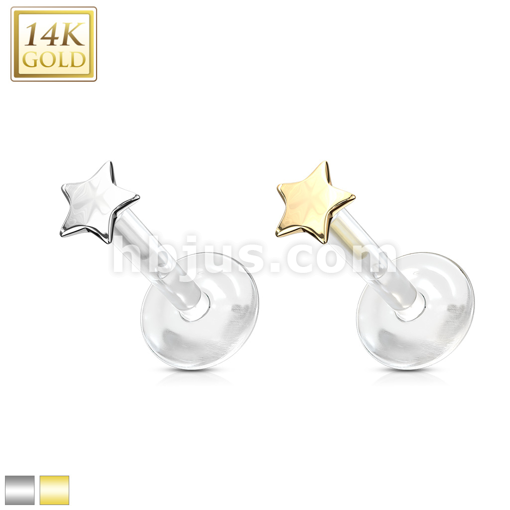 14K Gold Star Top Bio Flex Flat Back Studs for Labret, Monroe, Ear Cartilage and More