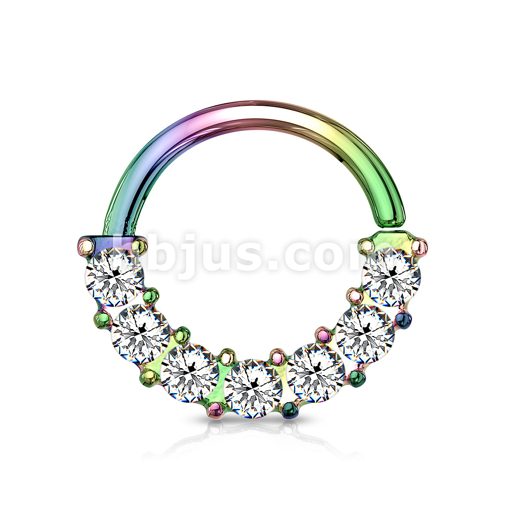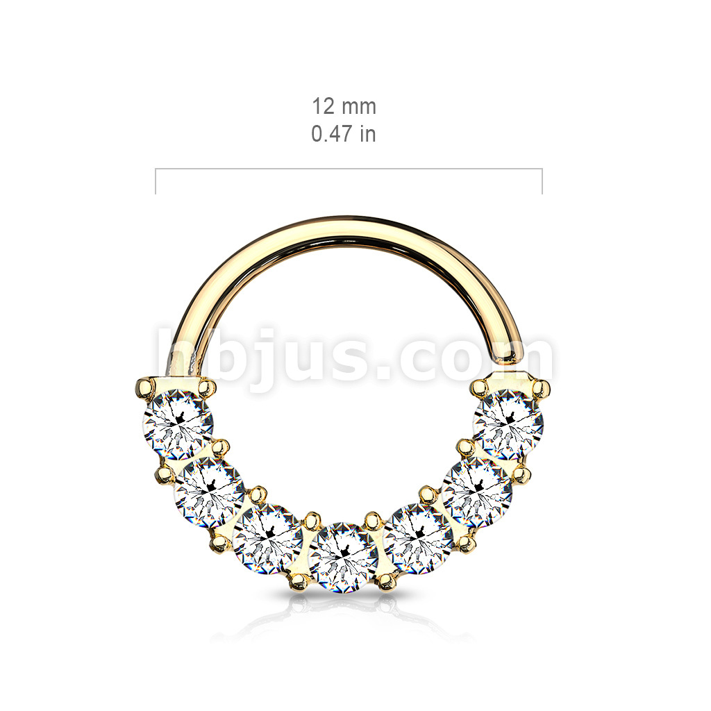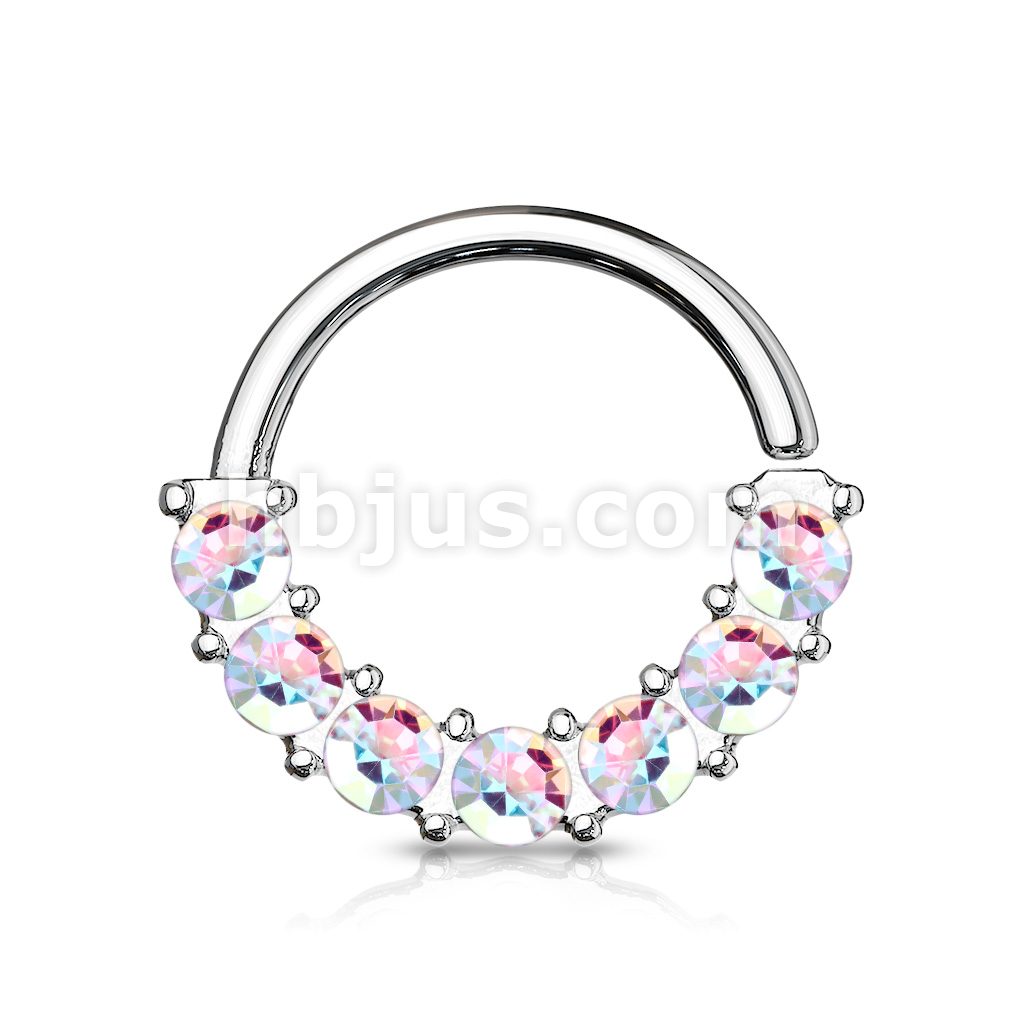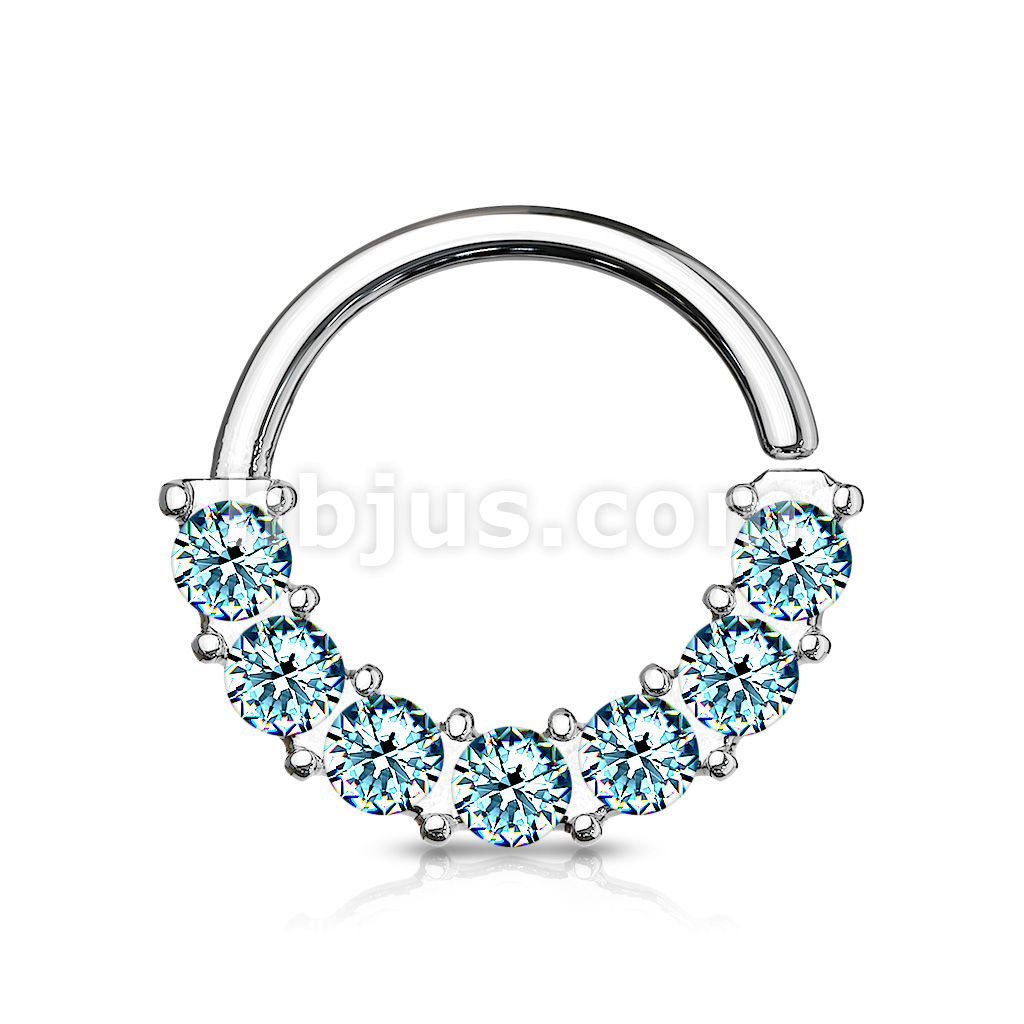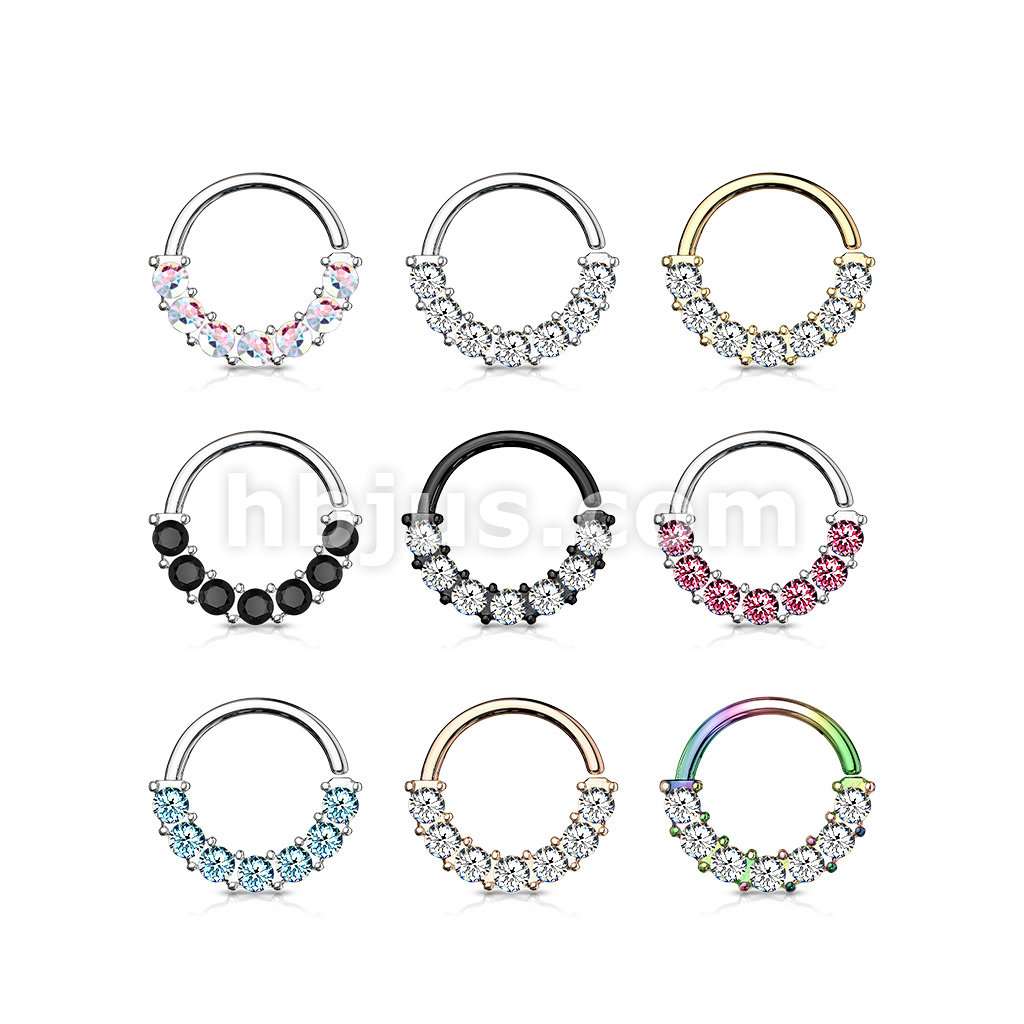 7 Gem Front Facing Set All 316L Surgical Steel Bendable Hoop Rings for Ear Cartilage, Daith, Nose Septum and More