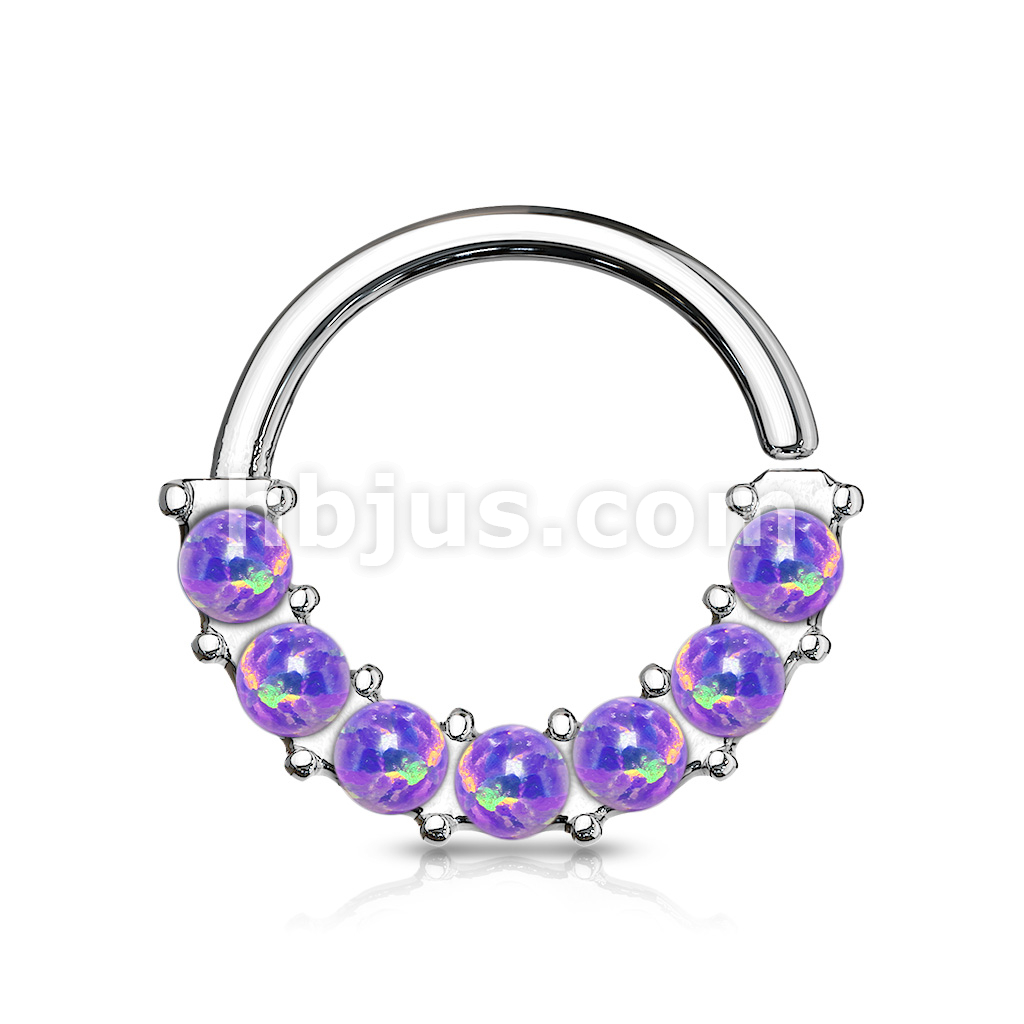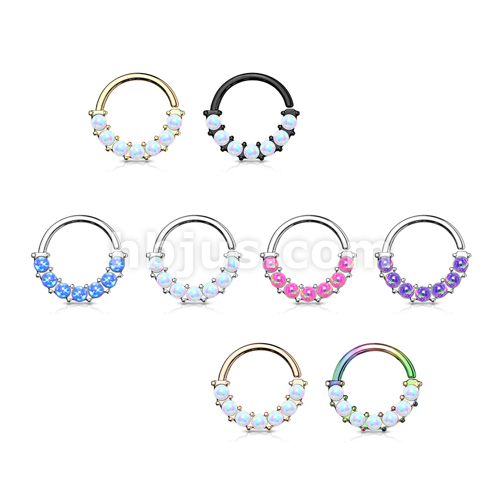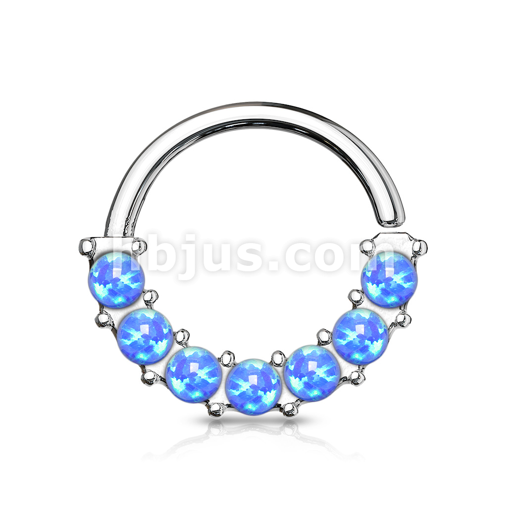 7 Opal Front Facing Set All 316L Surgical Steel Bendable Hoop Rings for Ear Cartilage, Daith, Nose Septum and More