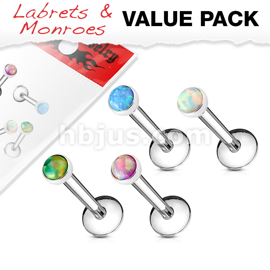 4 Pcs Value Pack Internally Threaded Opal Set 316L Surgical Steel Labret, Flat Back Studs