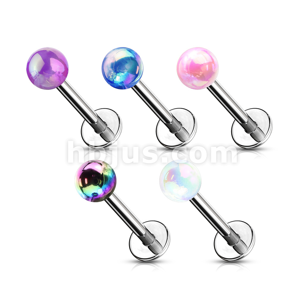 5 Pcs Value Pack Metallic AB Coating Ball 316L Surgical Steel Labret, Flat Back Studs