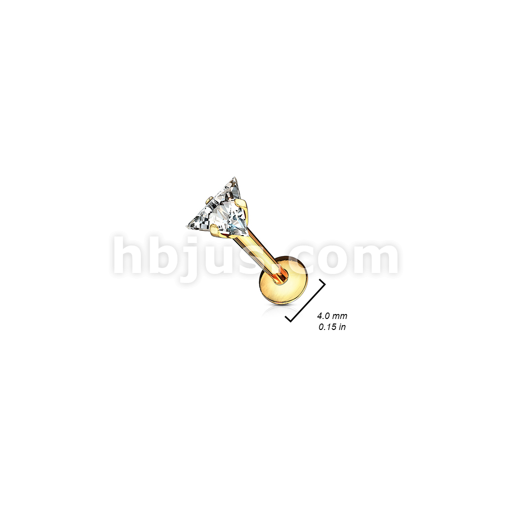4 Pcs Value Pack Internally Threaded Triangle CZ Prong Set 316L Surgical Steel Labret, Flat Back Studs