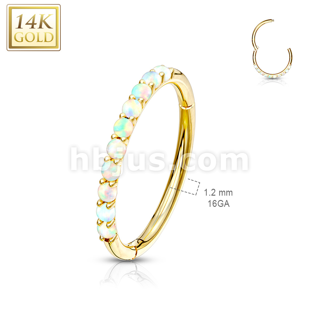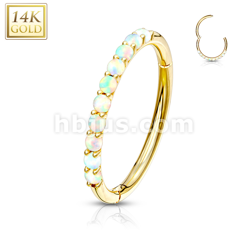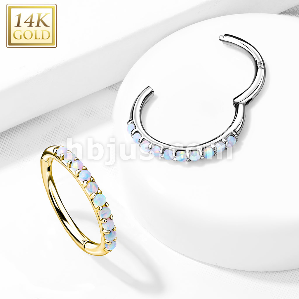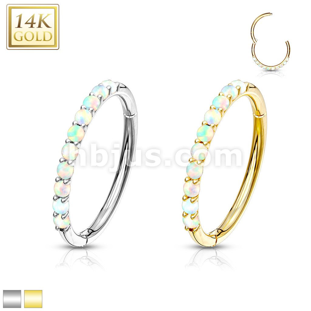 14K Side Opal Paved Half Circle Hinged Segment Hoop Rings for Cartilage,Daith,Eyebrow and More