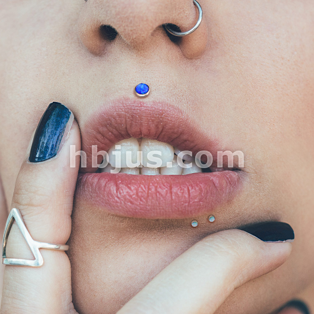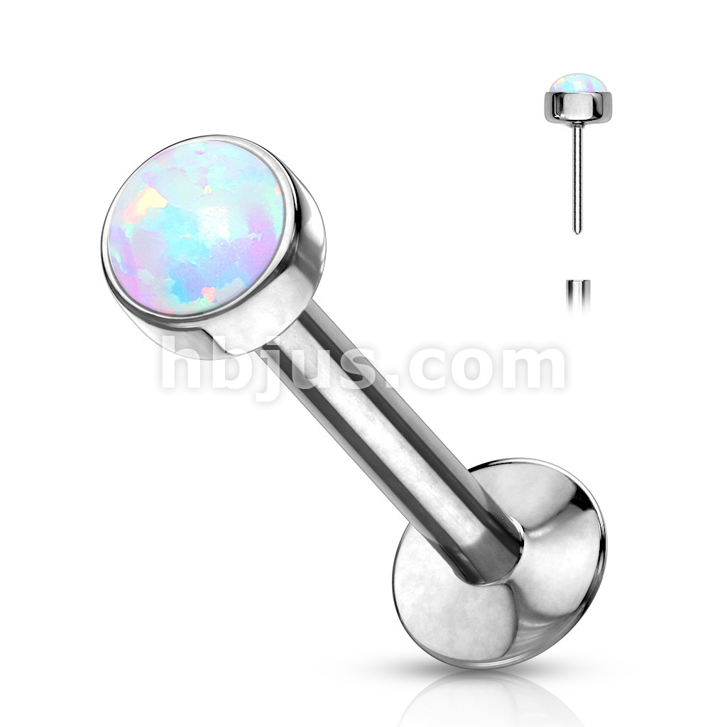 Push In Opal Flat Set Top 316L Surgical Steel Threadless Labret, Monroe, Flat Back Stud.