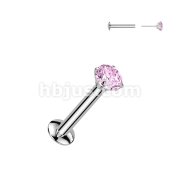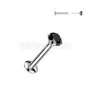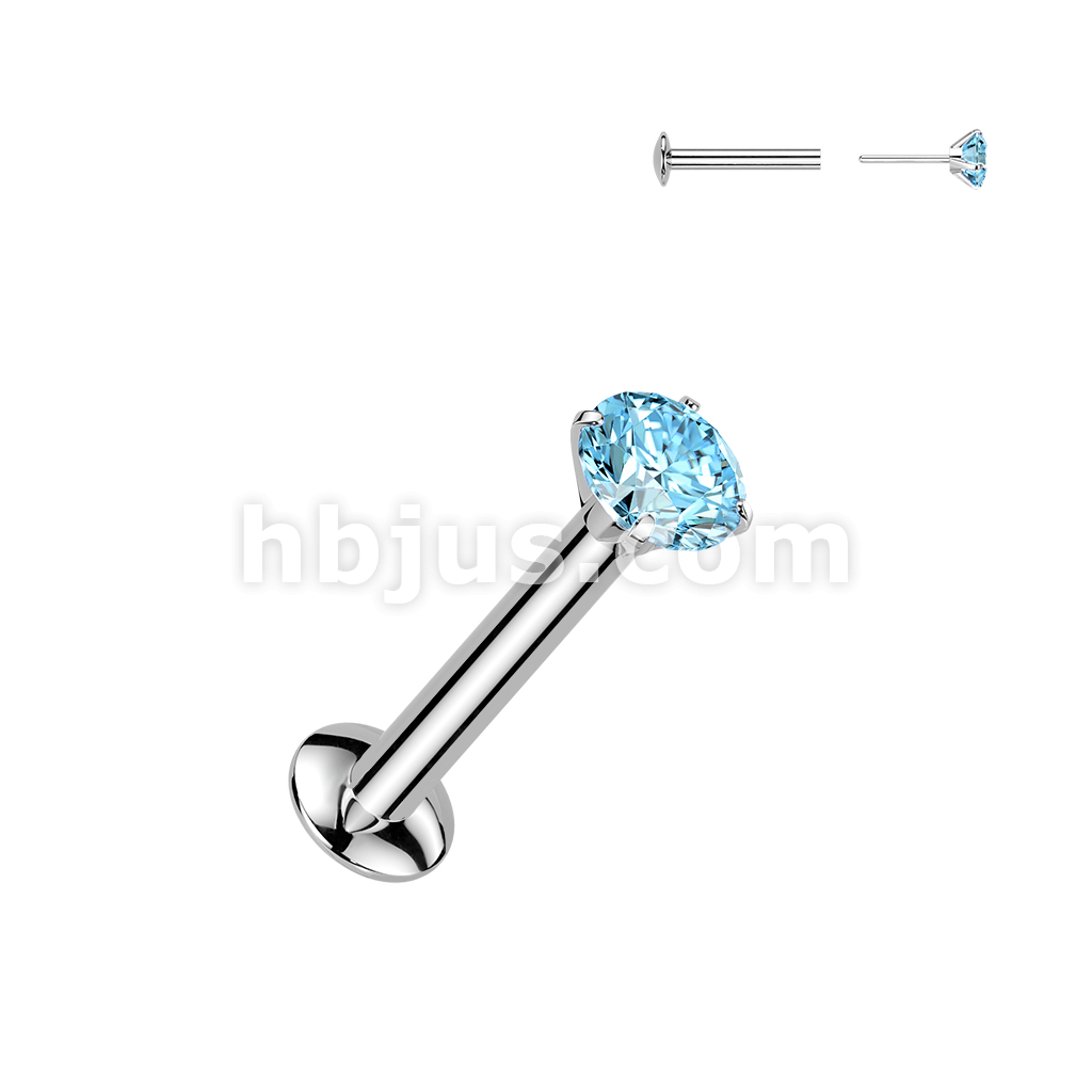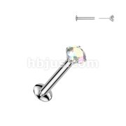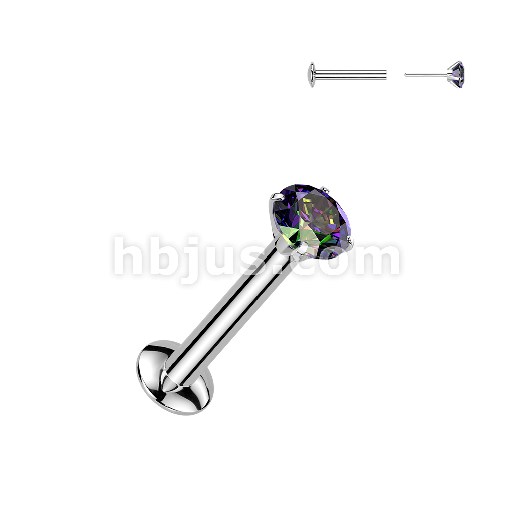 Push In Prong Set CZ Top 316L Surgical Steel Threadless Labret, Monroe, Flat Back Stud.