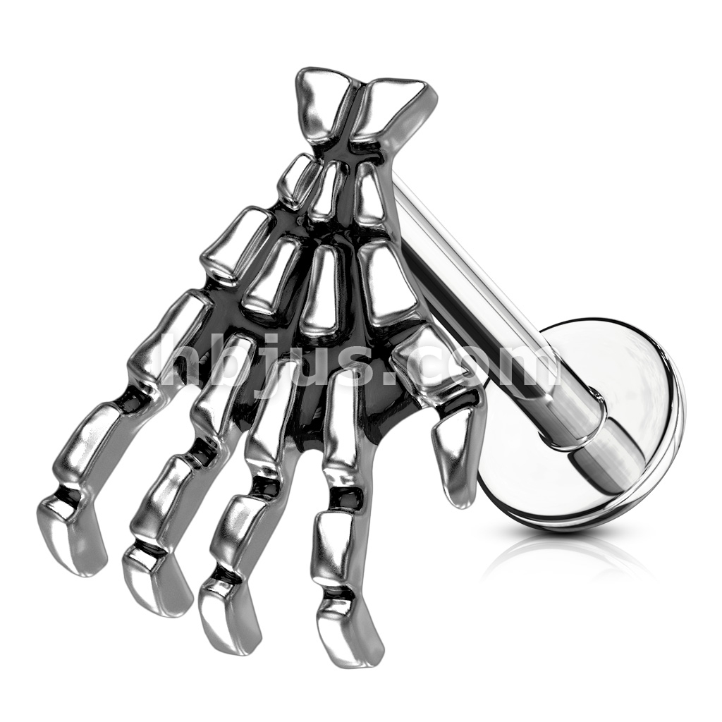 Skull Hand Top 316L Surgical Steel Flat Back Studs for Labret, Monroe, Ear Cartilage, and More
