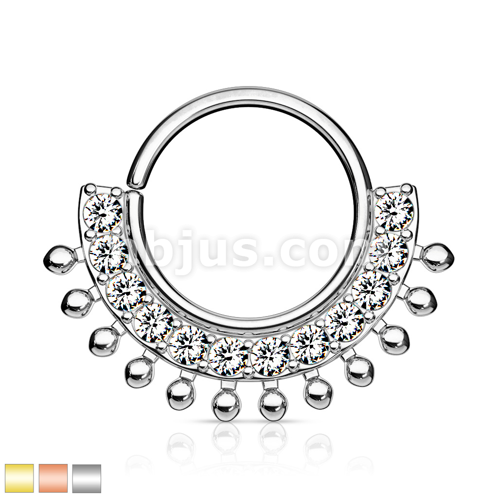CZ Lined Fan Bendable Hoop Rings for Septum, Ear Cartilage, Daith, and More