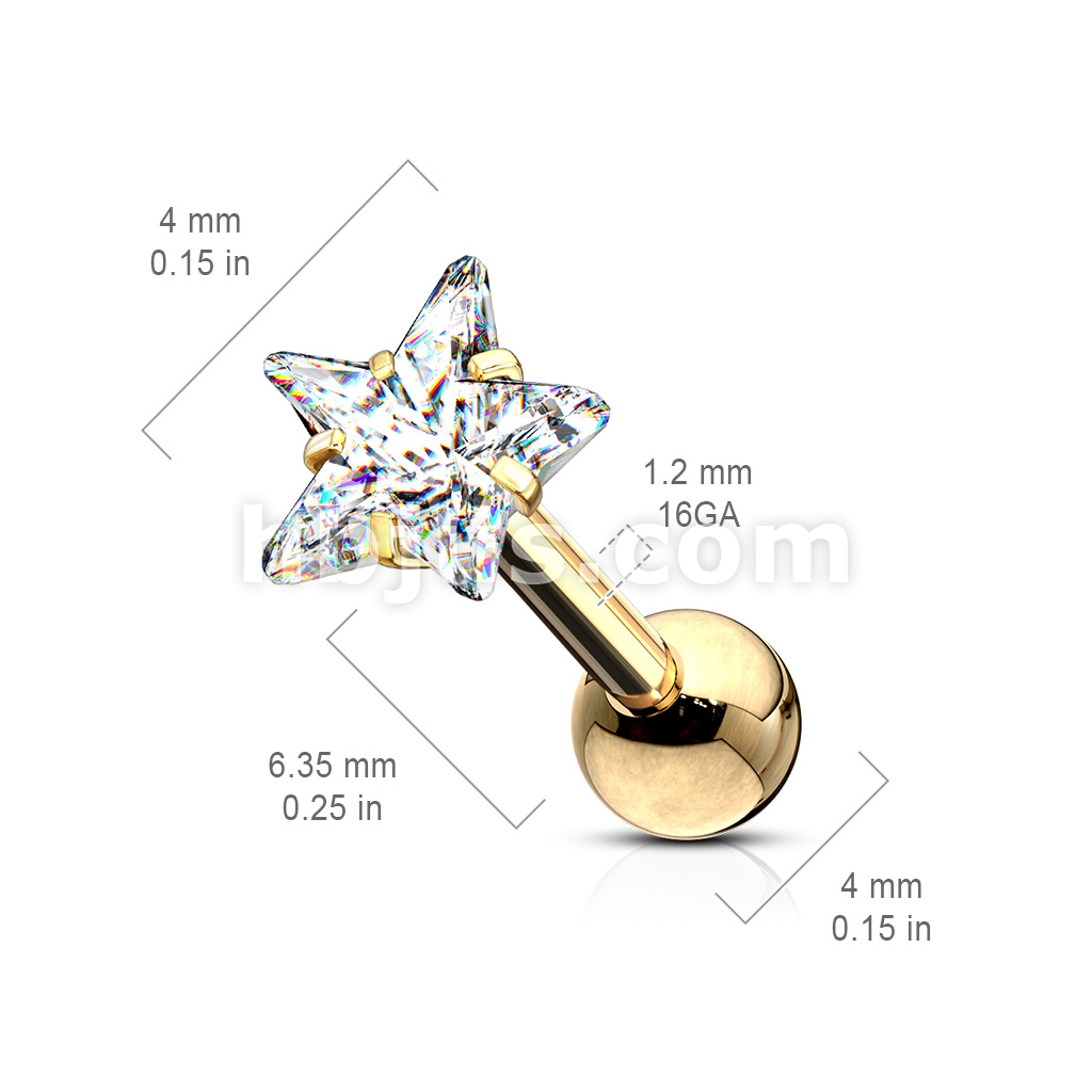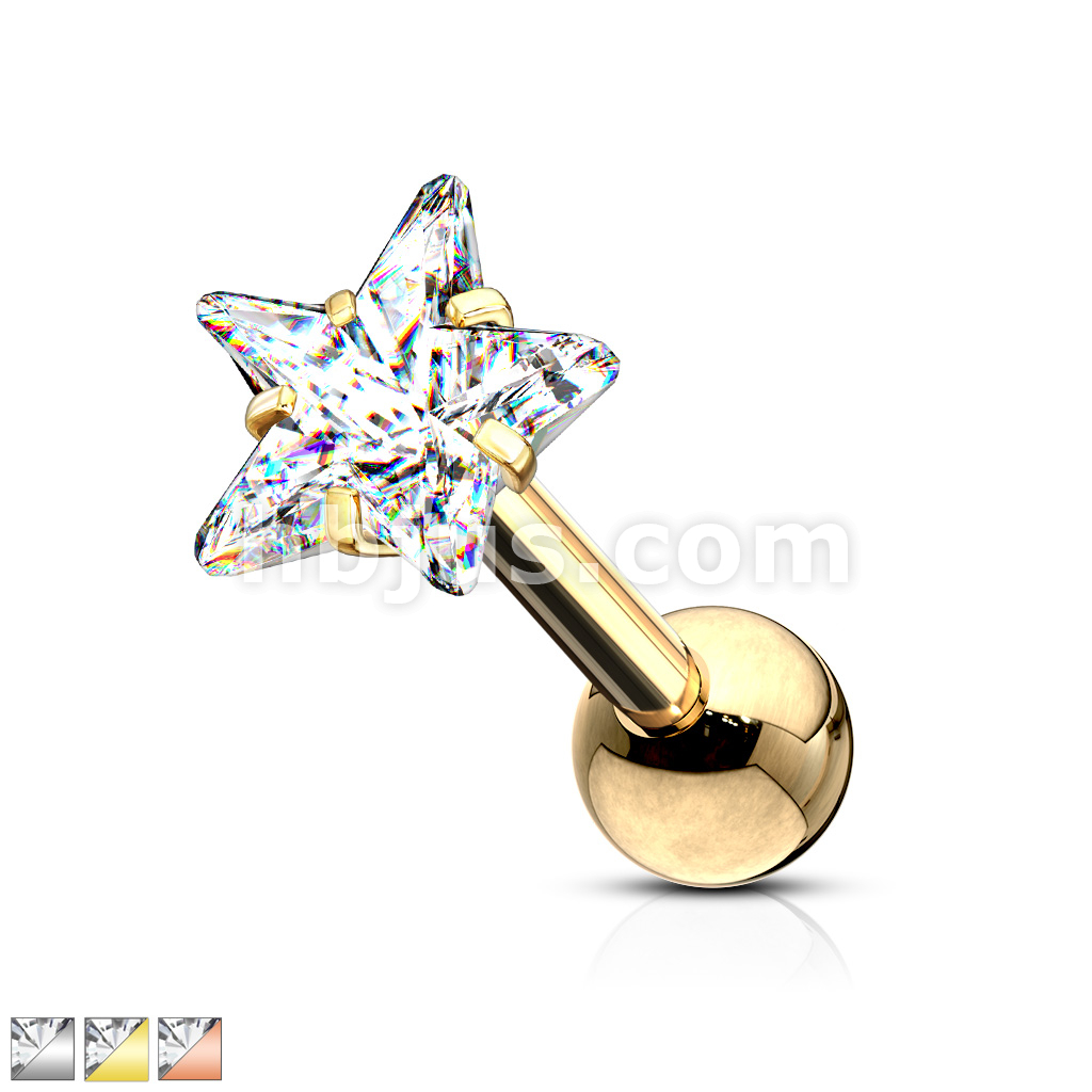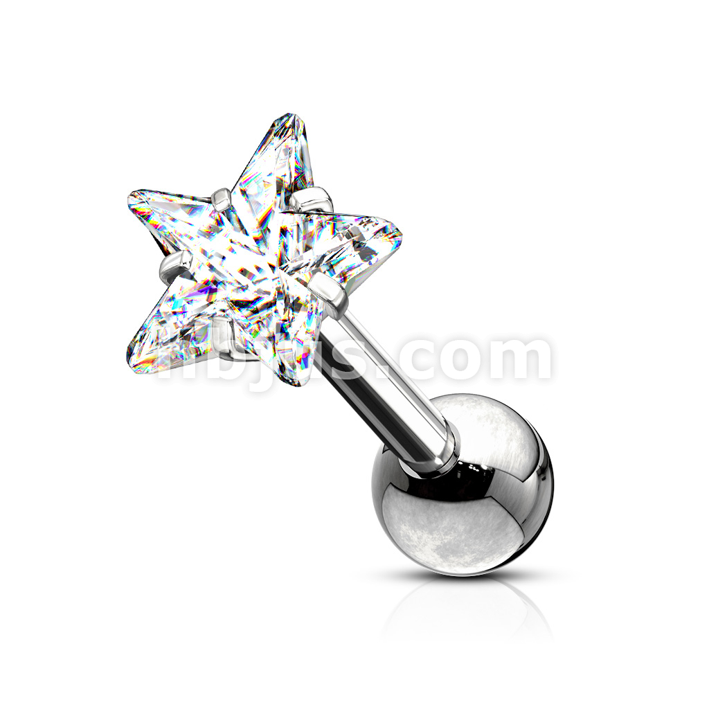 Prong Set Star CZ 316L Surgical Steel Cartilage, Tragus Barbell Studs