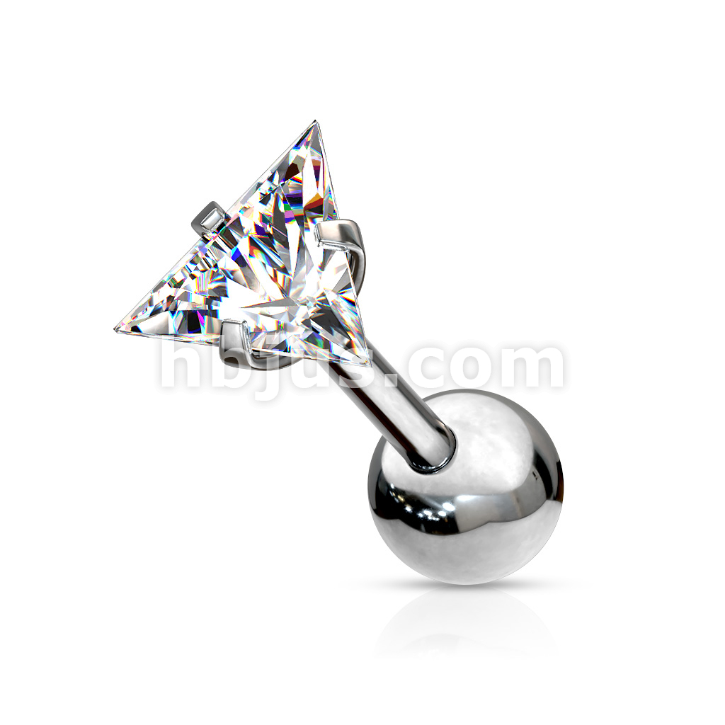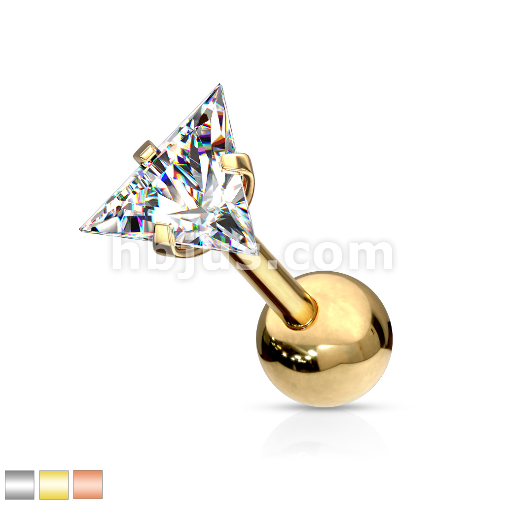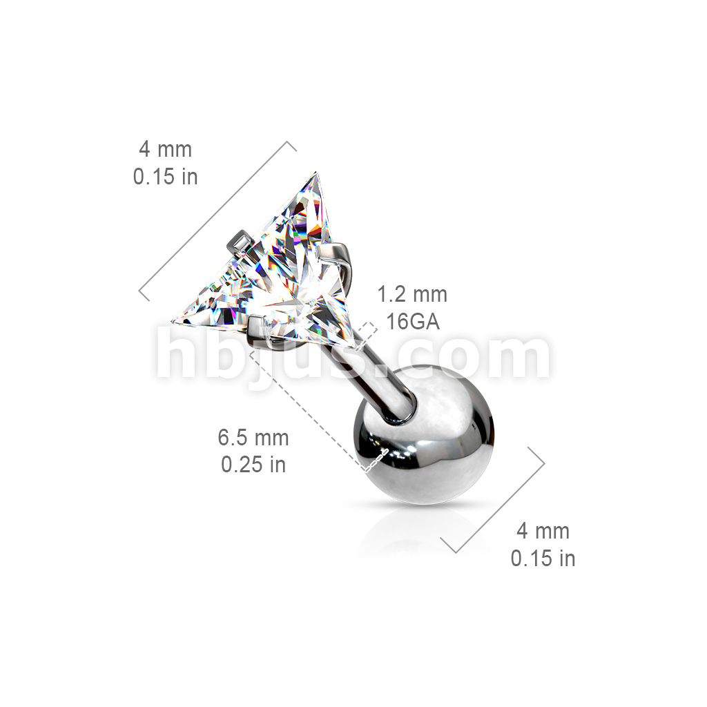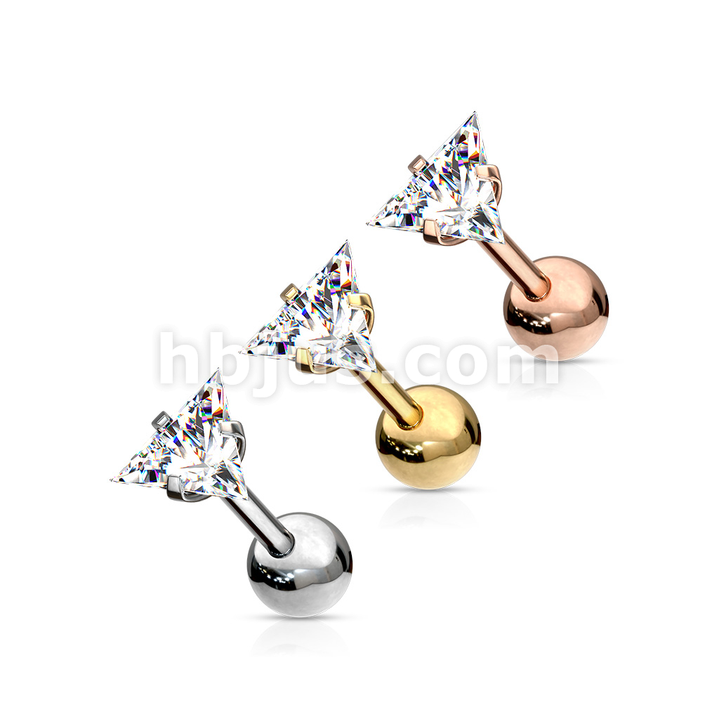 Prong Set Triangle CZ 316L Surgical Steel Cartilage, Tragus Barbell Studs