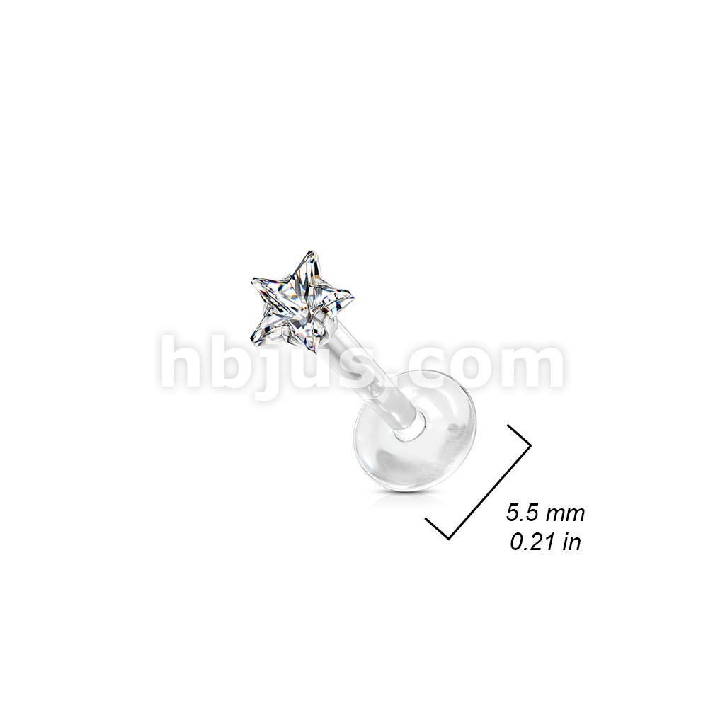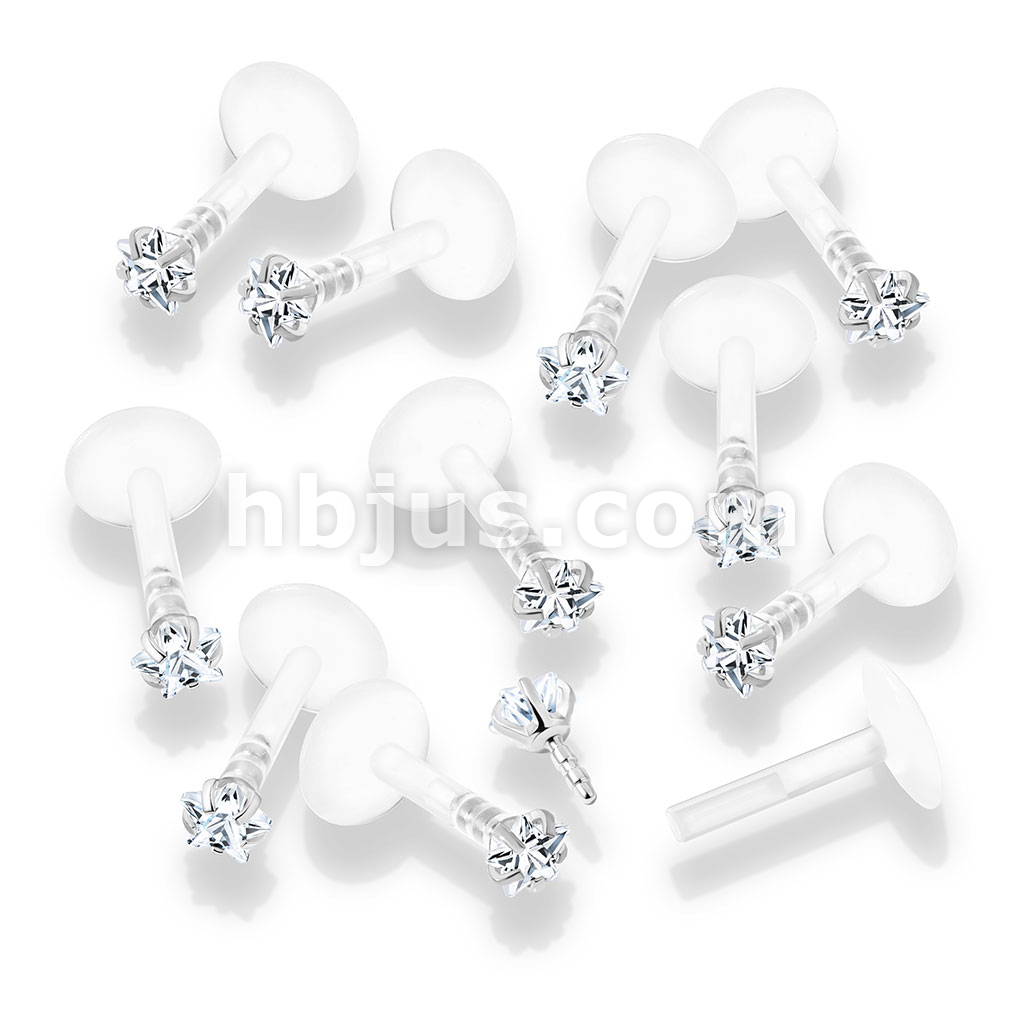 100 Pcs Prong Set Clear Star CZ 316L Surgical Steel Top Push In Bio Flex Flat Back Studs for Labret, Monroe, Ear Cartilage, and More