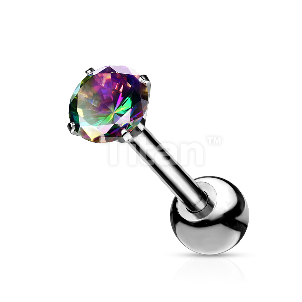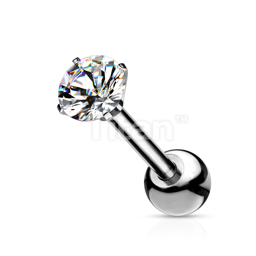 Implant Grade Titanium Cartilage, Tragus Barbell with Prong Set CZ