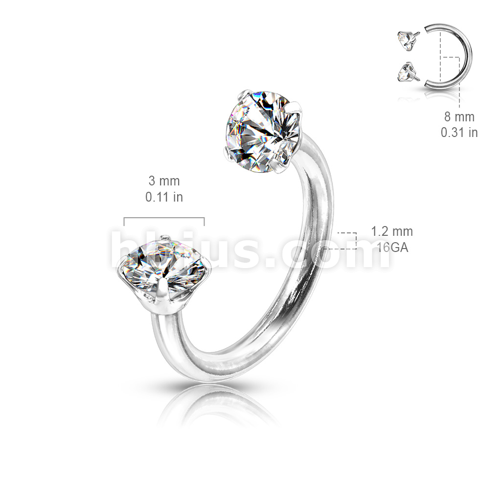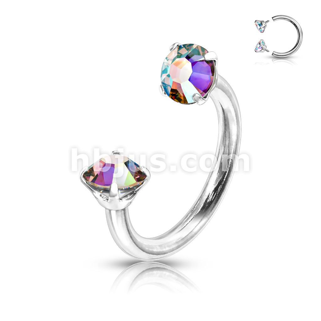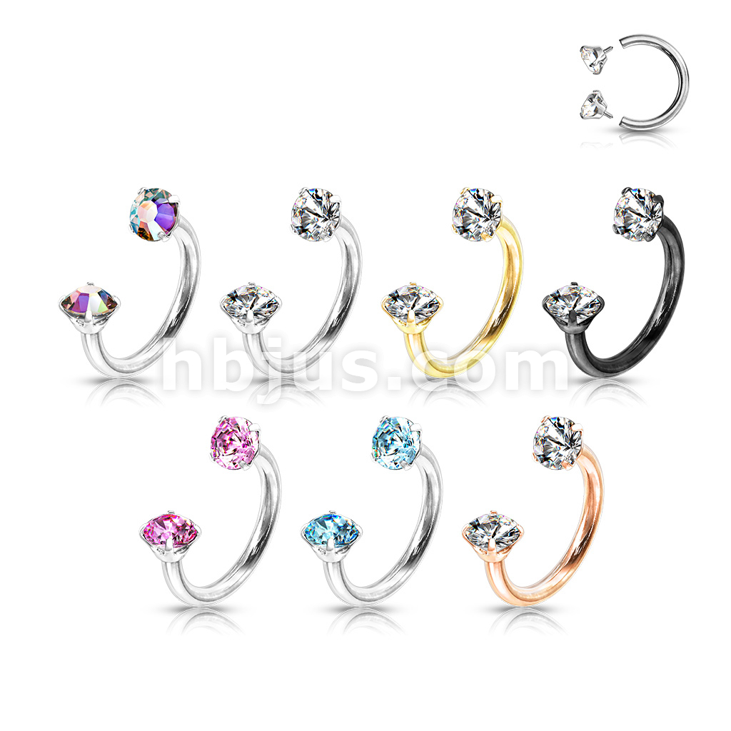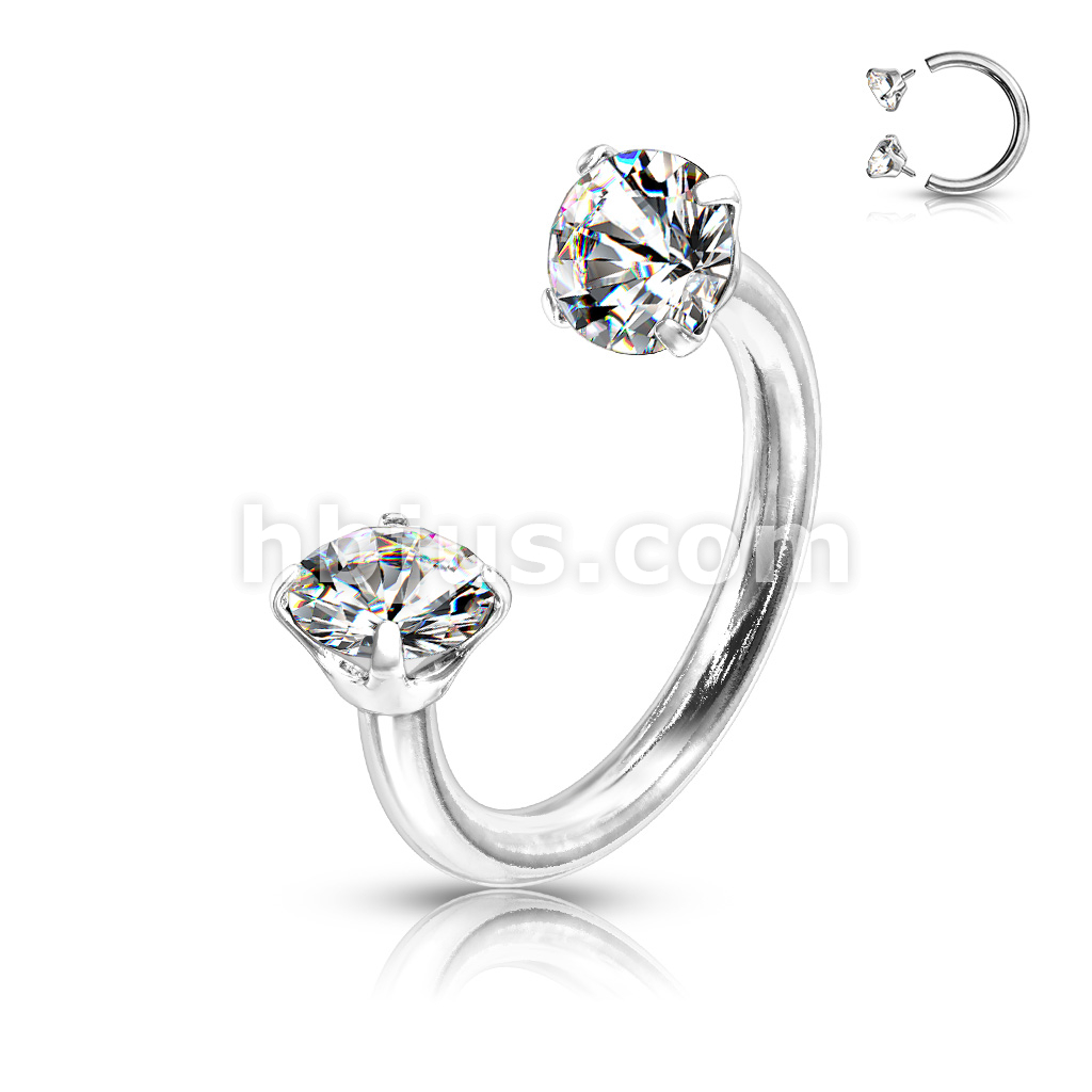 Prong Set Round CZ Internally Threaded 316L Surgical Steel Circular Barbell/Horseshoe