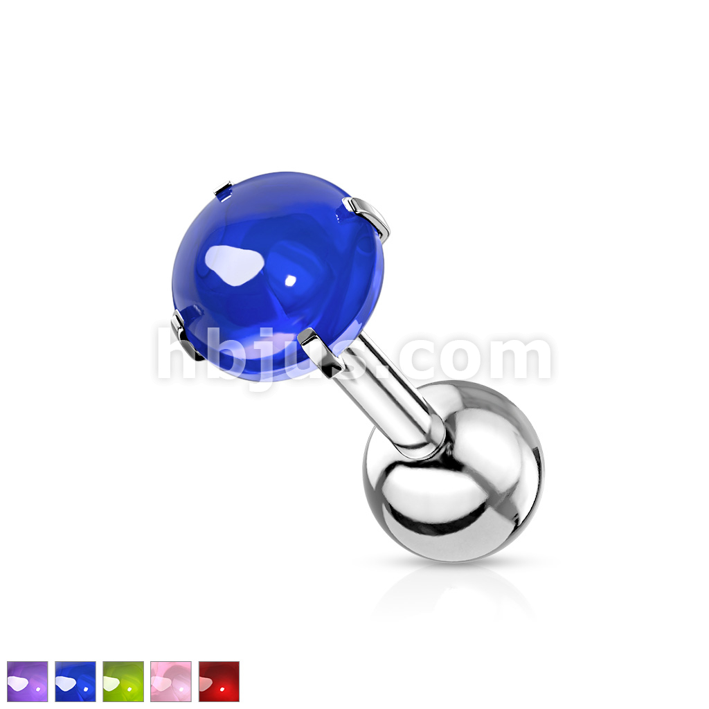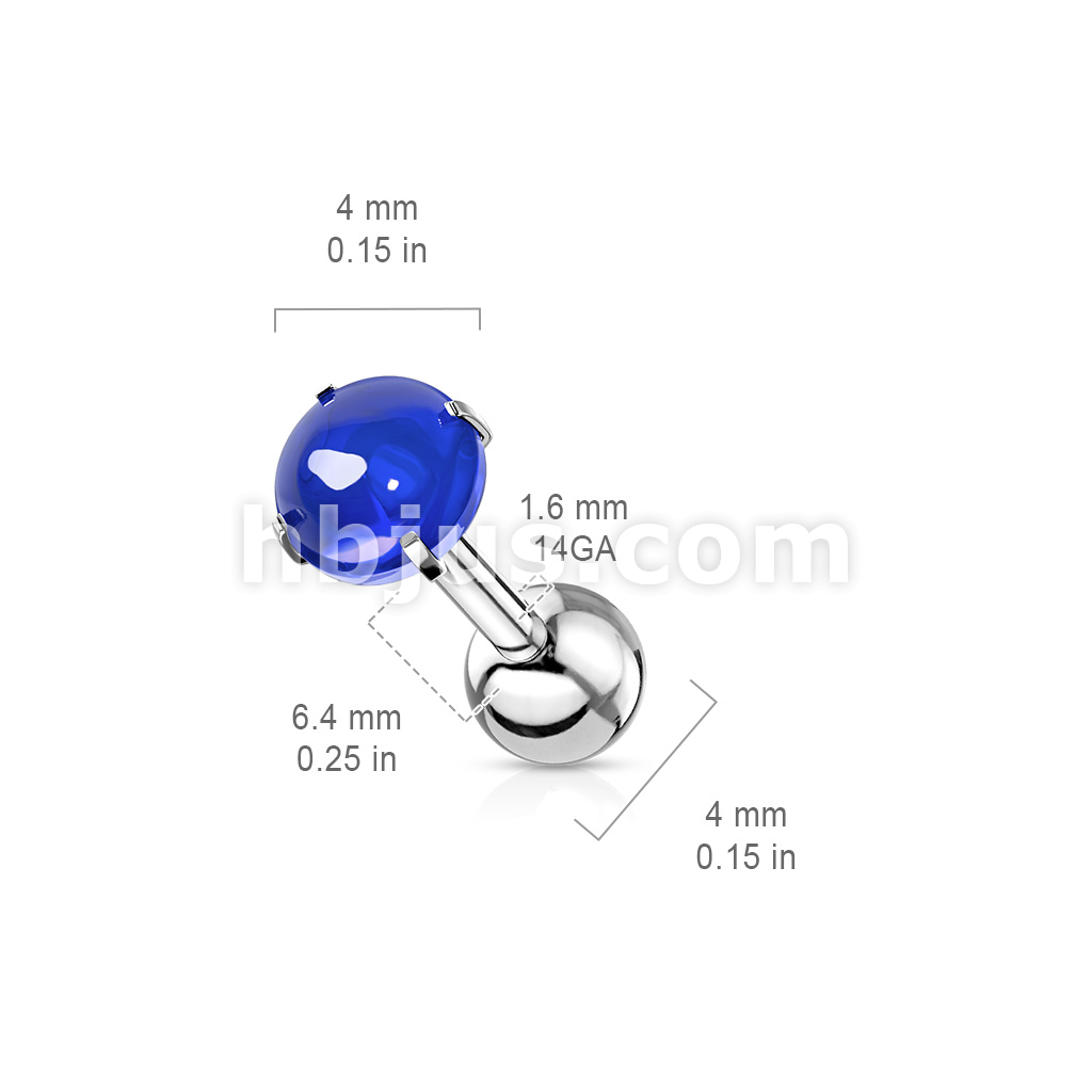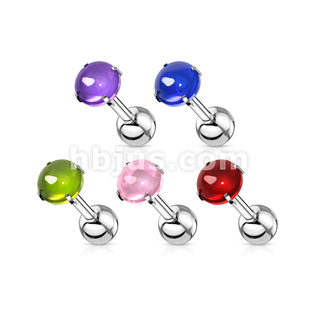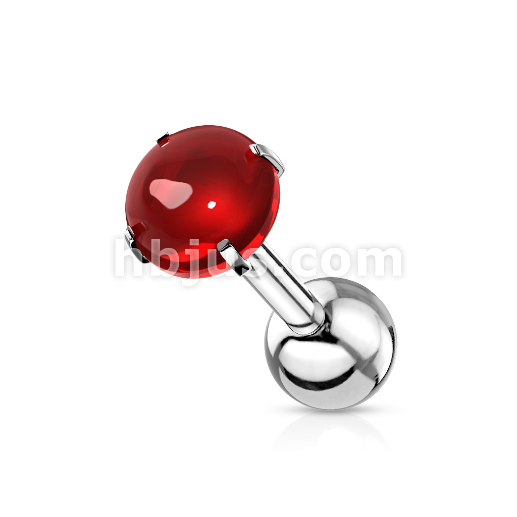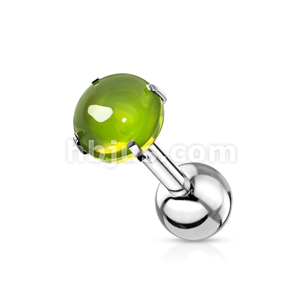 Prong Set Zircon Cabochon Stone 316L Surgical Steel Cartilage, Tragus Barbell Studs