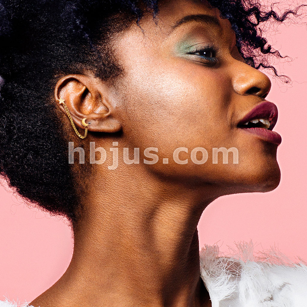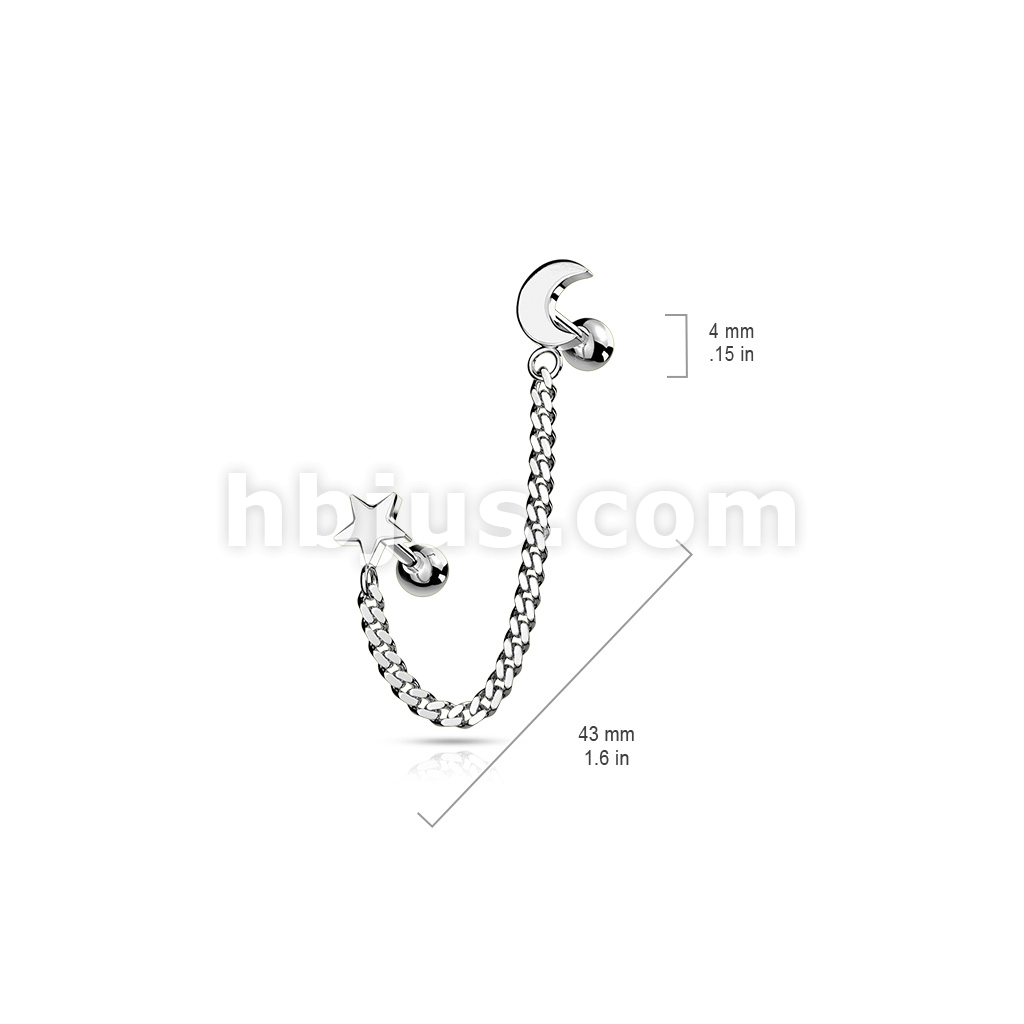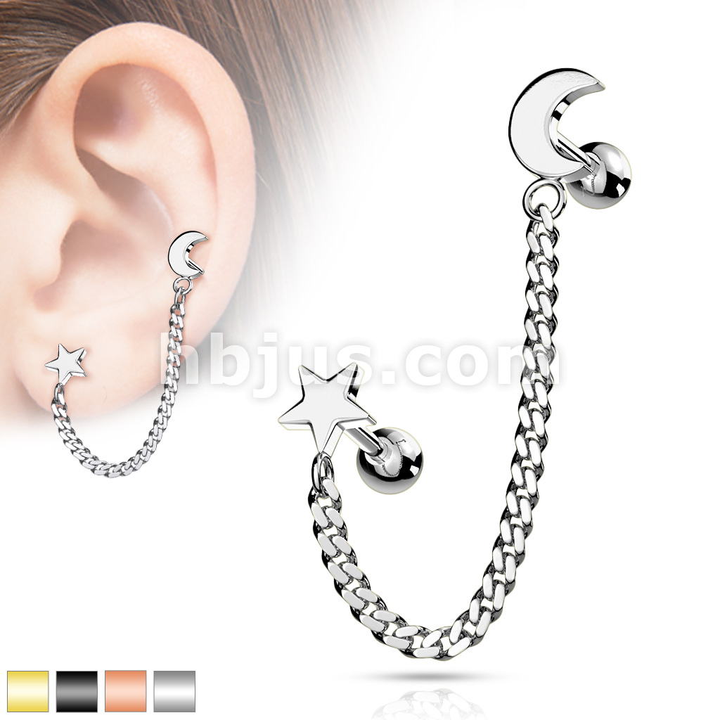 Star and Chain Linked Crescent Moon Cartilage Barbells 316L Surgical Steel