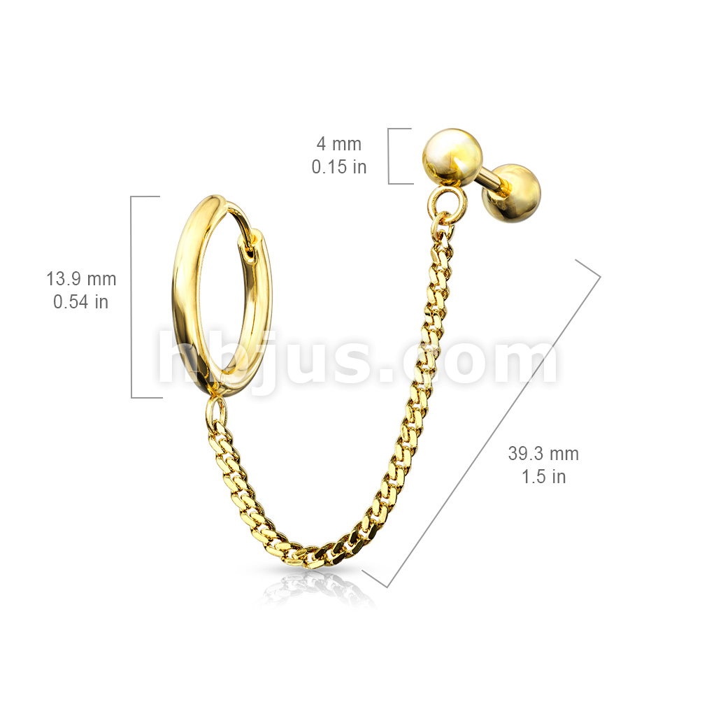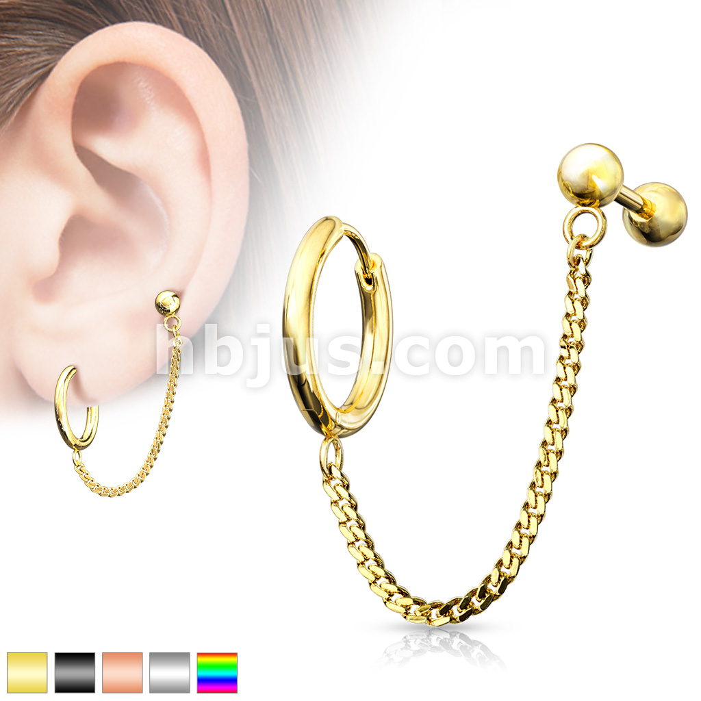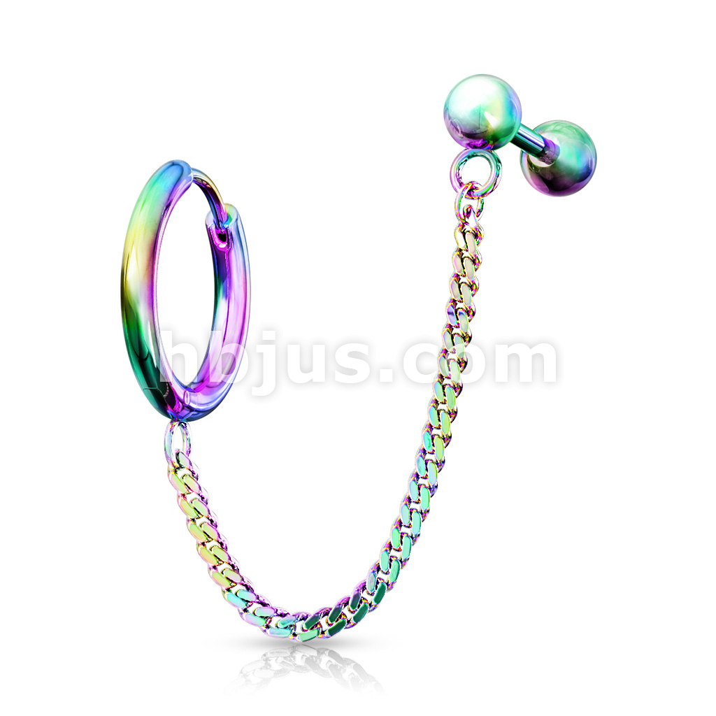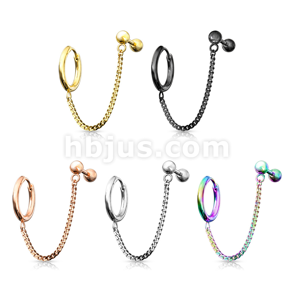 Round Clicker Hoop Earring and Chain Linked Cartilage Barbell 316L Surgical Steel