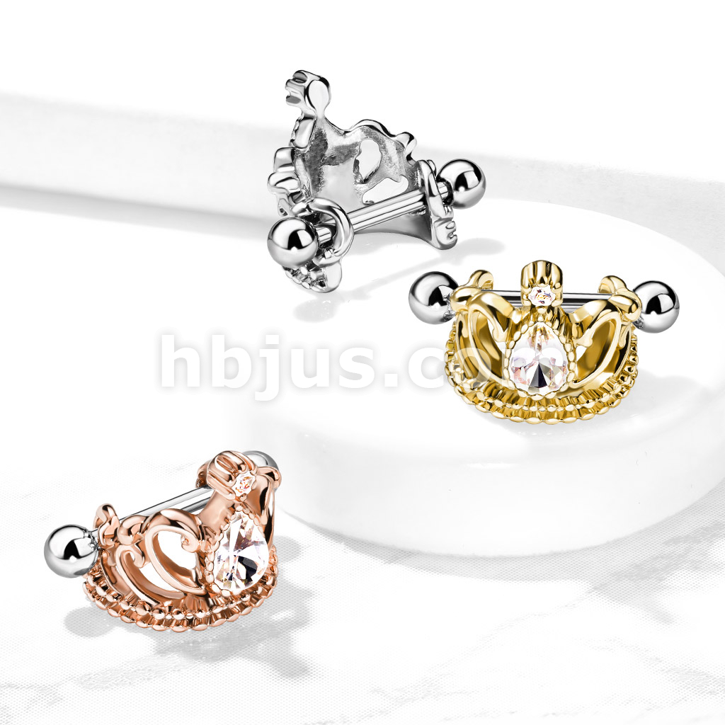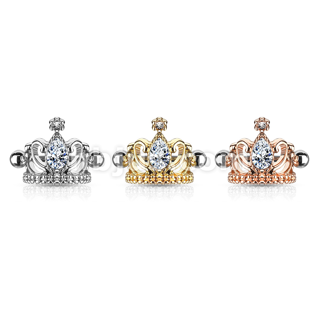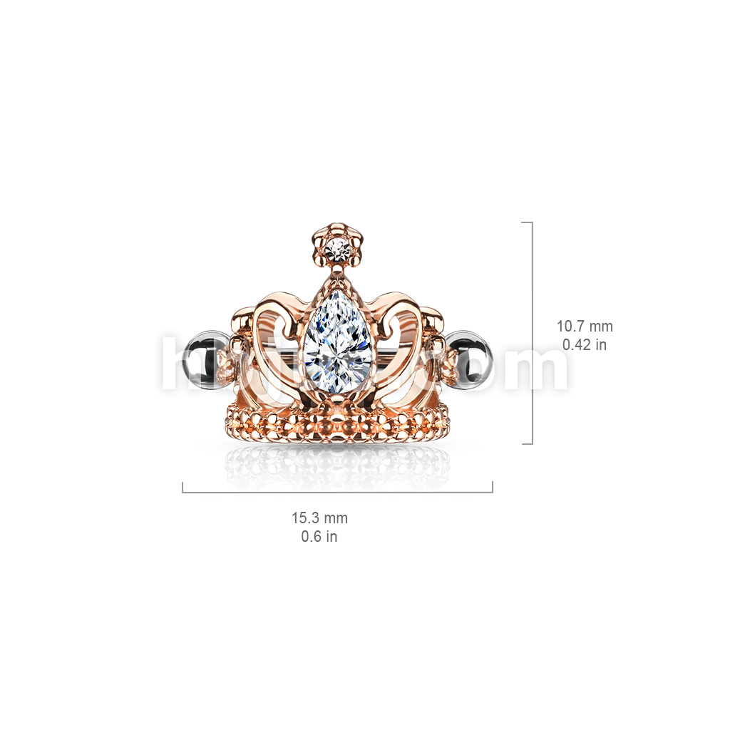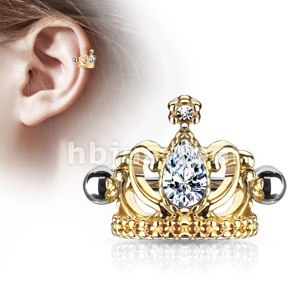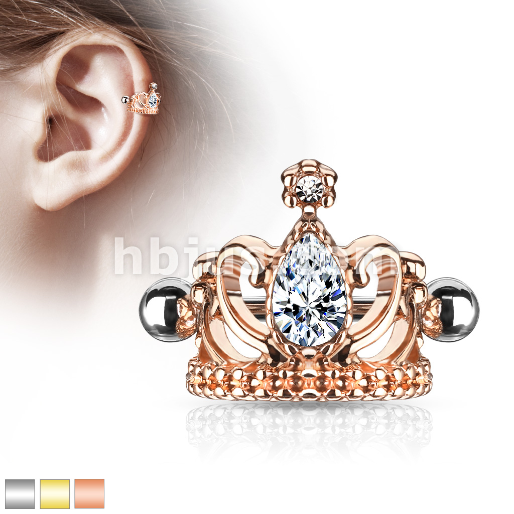 Tear Drop Crystal Tiara Helix Cuff with 316L Surgical Steel Barbell
