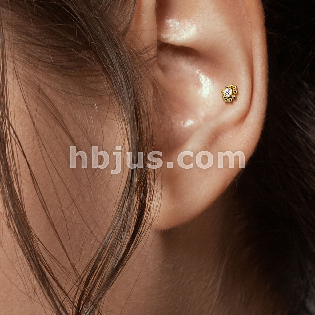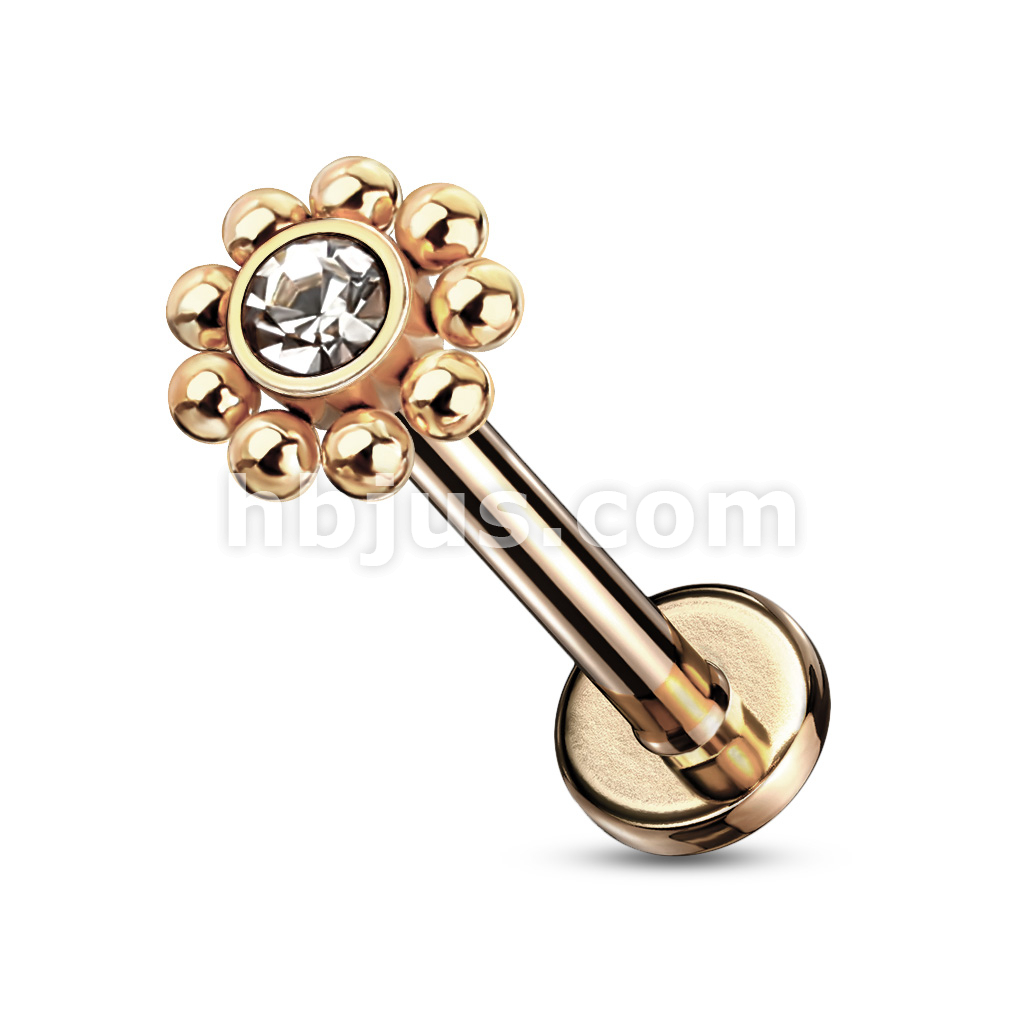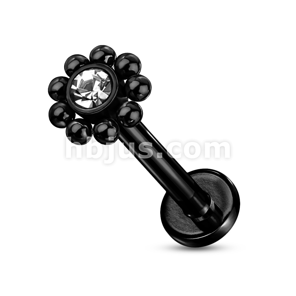 Steel Balls Around Gem Set Ball Top 316L Surgical Steel Internal Thread Flat Back Studs for Labret, Monroe, Ear Cartilage and More