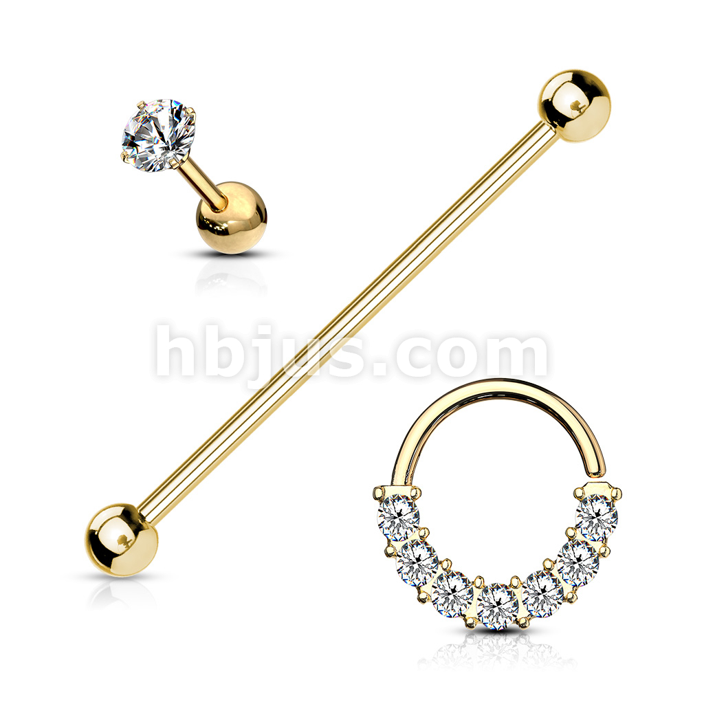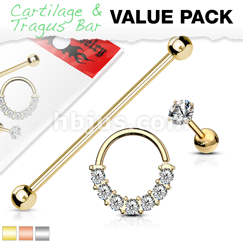 3 Pcs Industrial Barbell, Crystal Lined Bendable Hoop, and Prong Set CZ Barbell Stud 316L Surgical Steel Ear Cartilage Mix Value Pack
