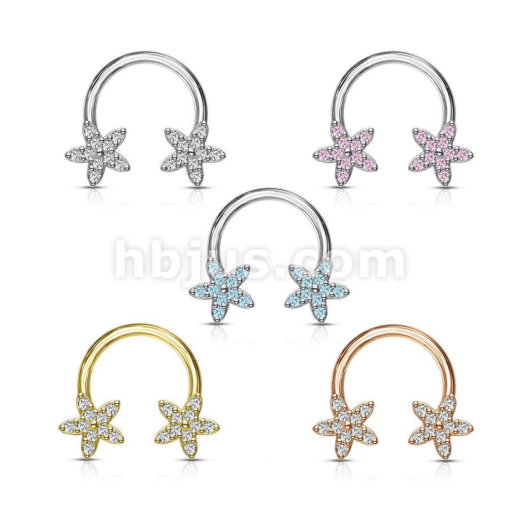 CZ Flower Ends 316L Surgical Steel Circular, Horseshoe