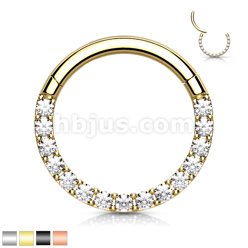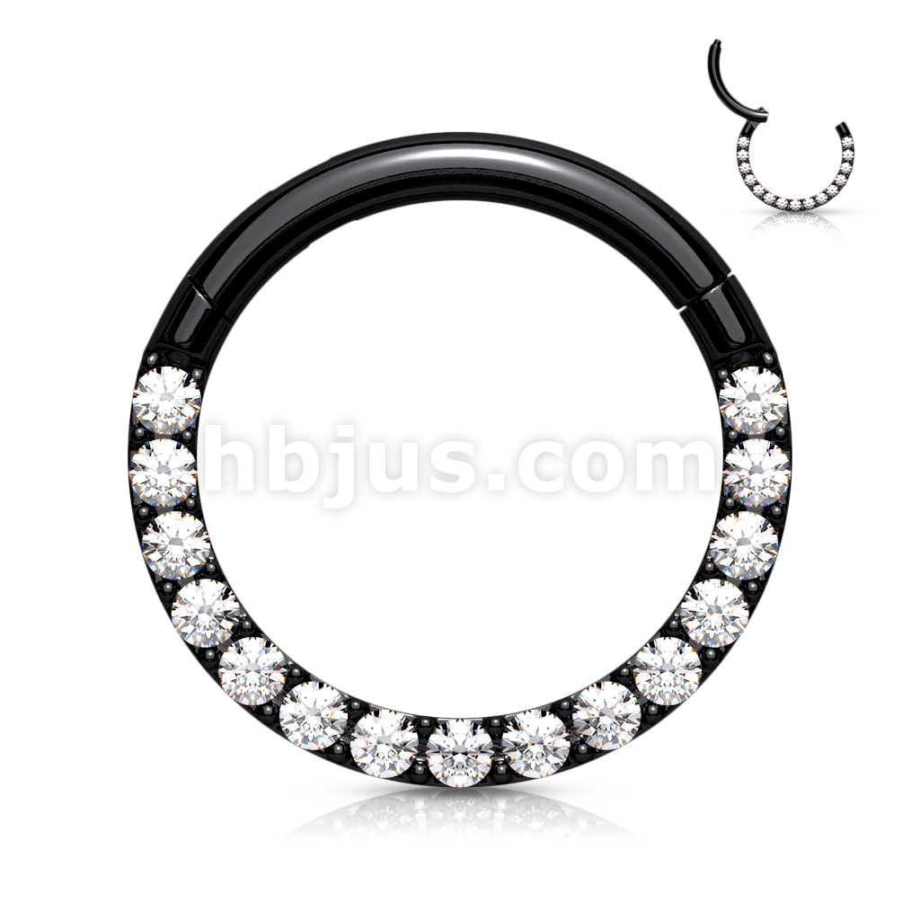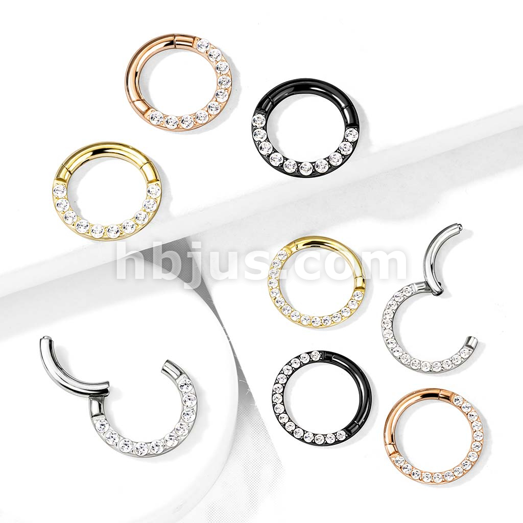High Quality Precision All 316L Surgical Steel Hinged Segment Hoop Rings with CNC Set Front Facing CZ Paved