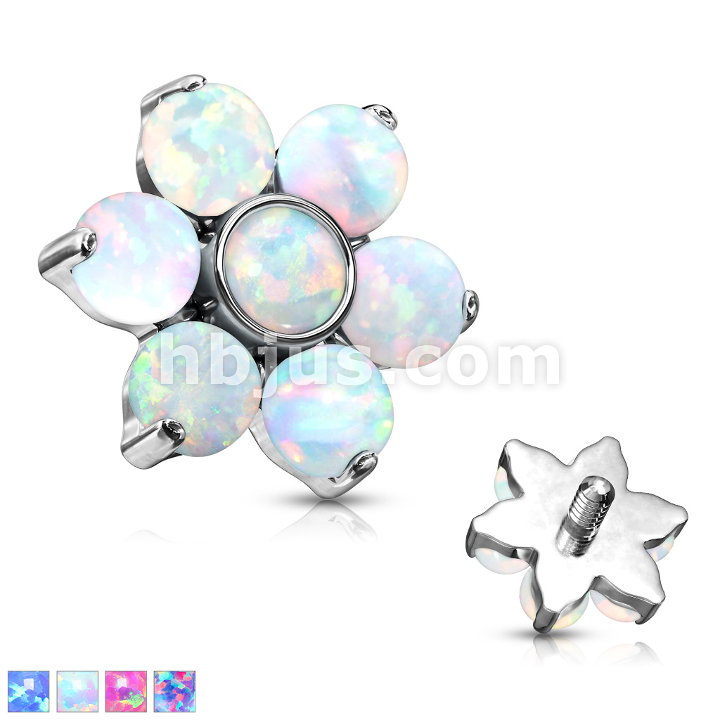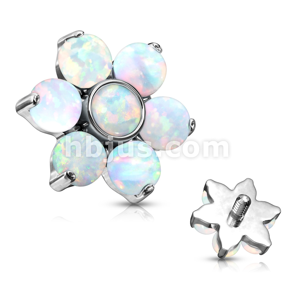 Opal Prong Set Flower 316L Surgical Steel Internally Threaded Top Parts For Labret, Dermal and More