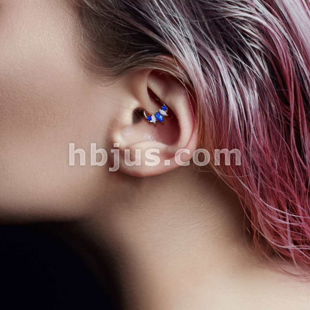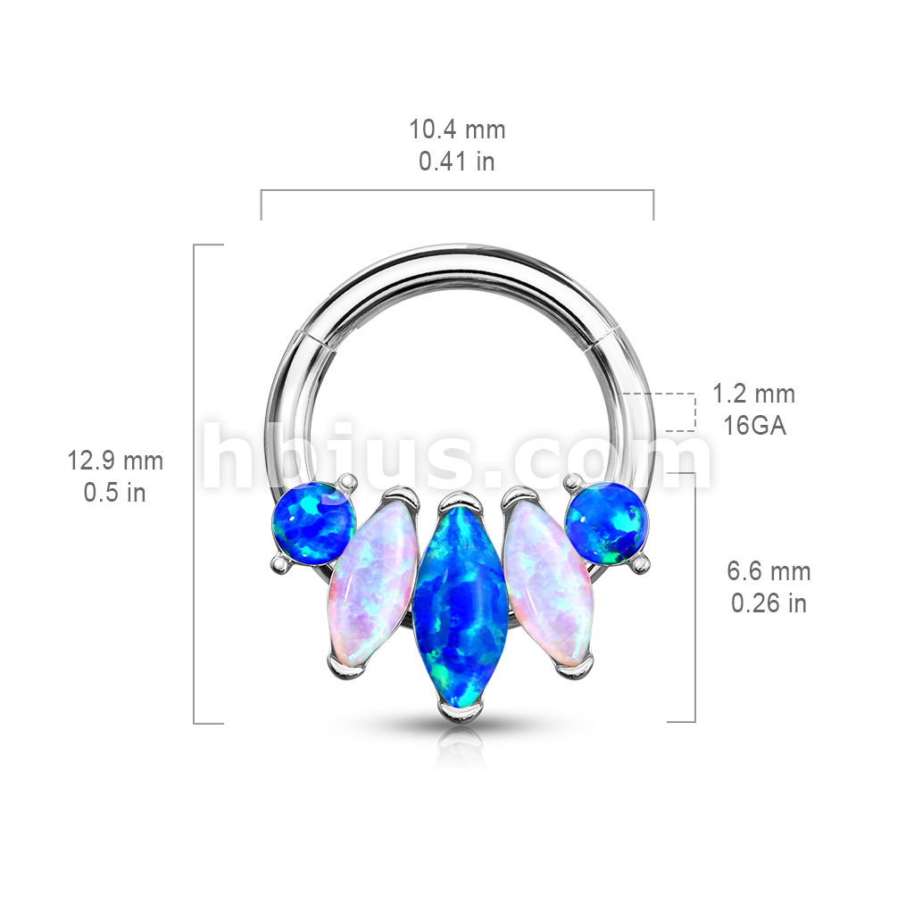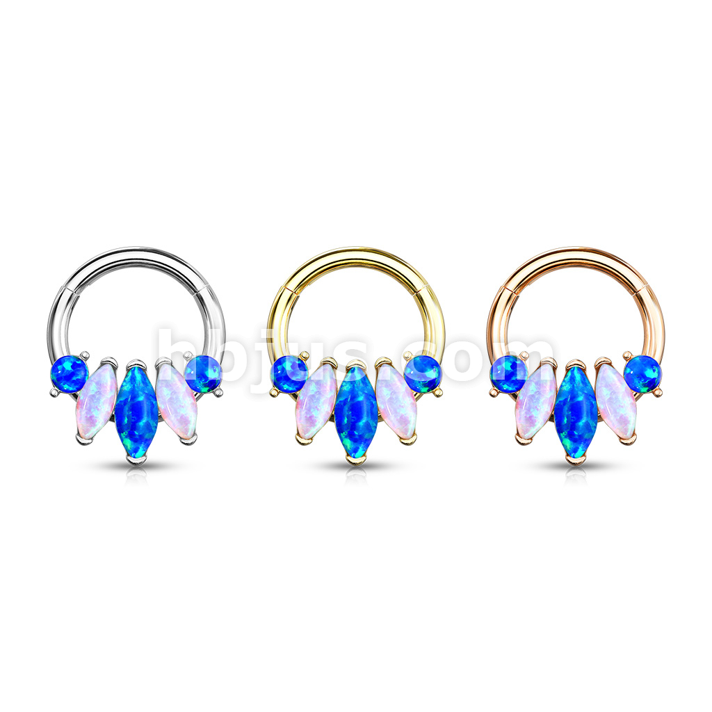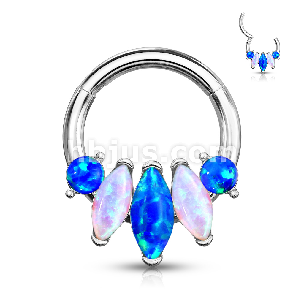 5-Marquise Opal Set 316L Surgical Steel Hinge Hoops for Ear, Nose Septum and More