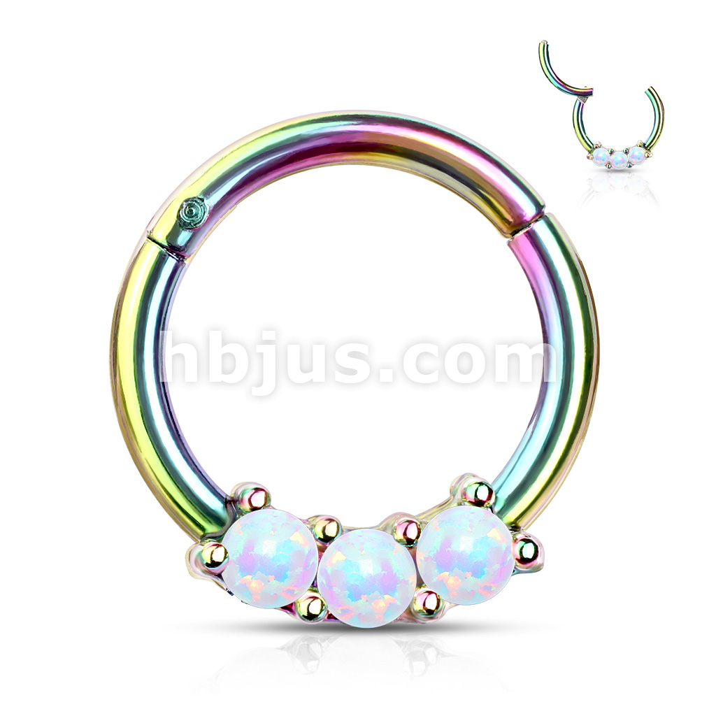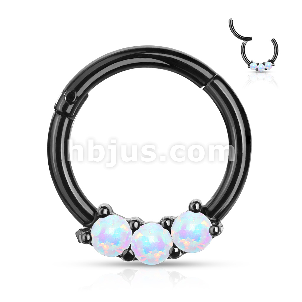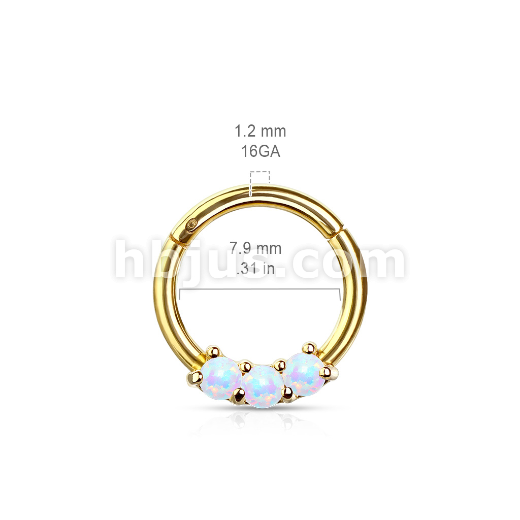 High Quality Precision 3-Opal Set All 316L Surgical Steel Hinged Segment Hoop Rings