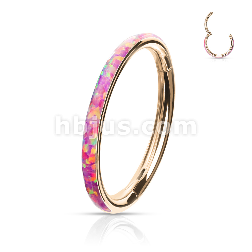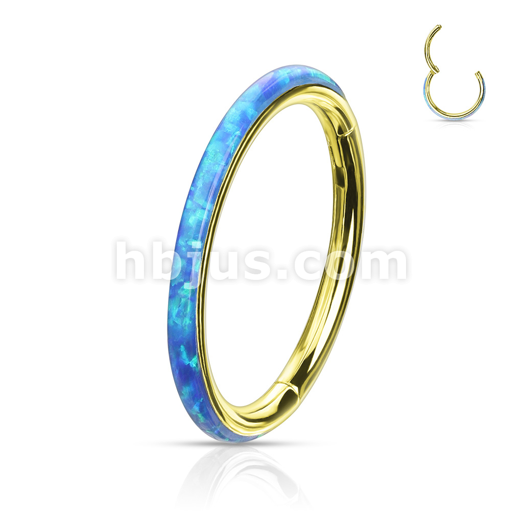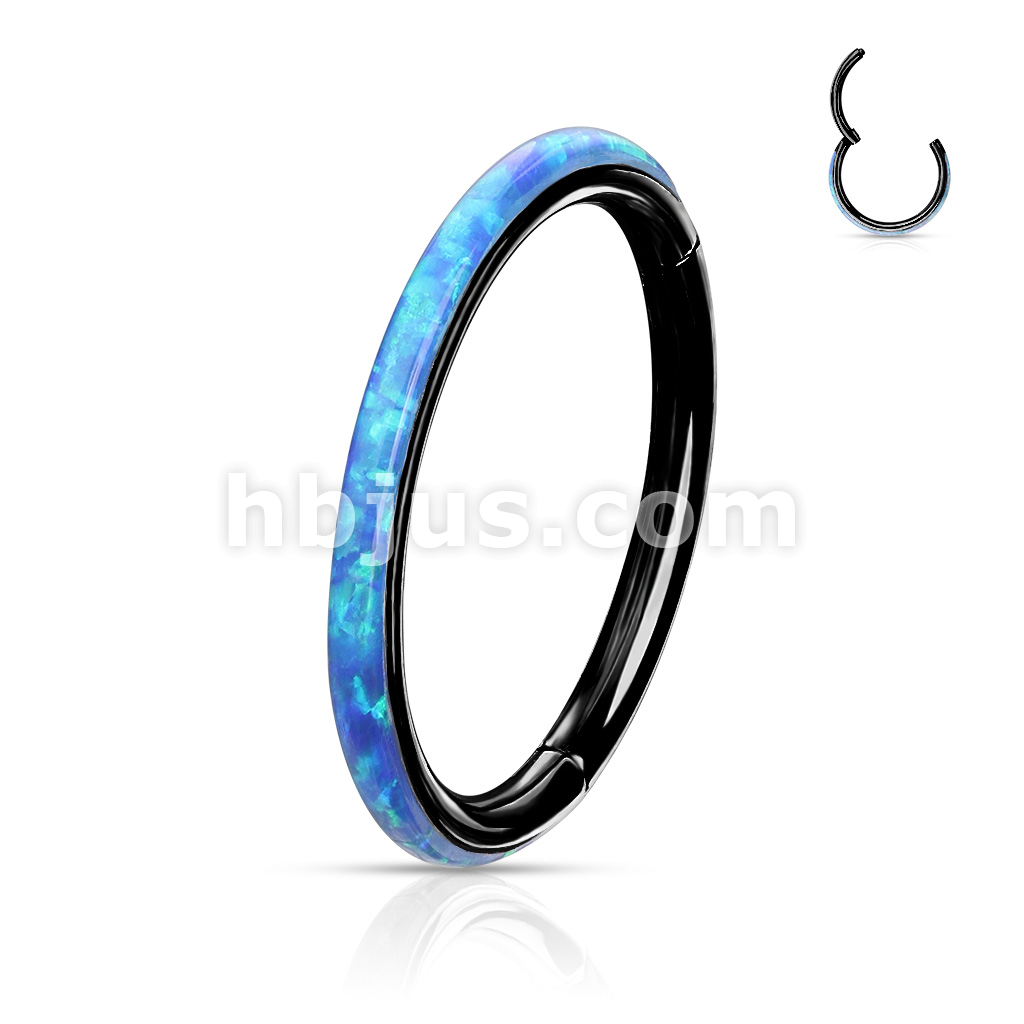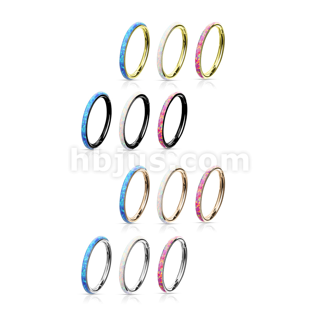 High Quality Precision All 316L Surgical Steel Hinged Segment Hoop Rings with Opal Set Outer Side