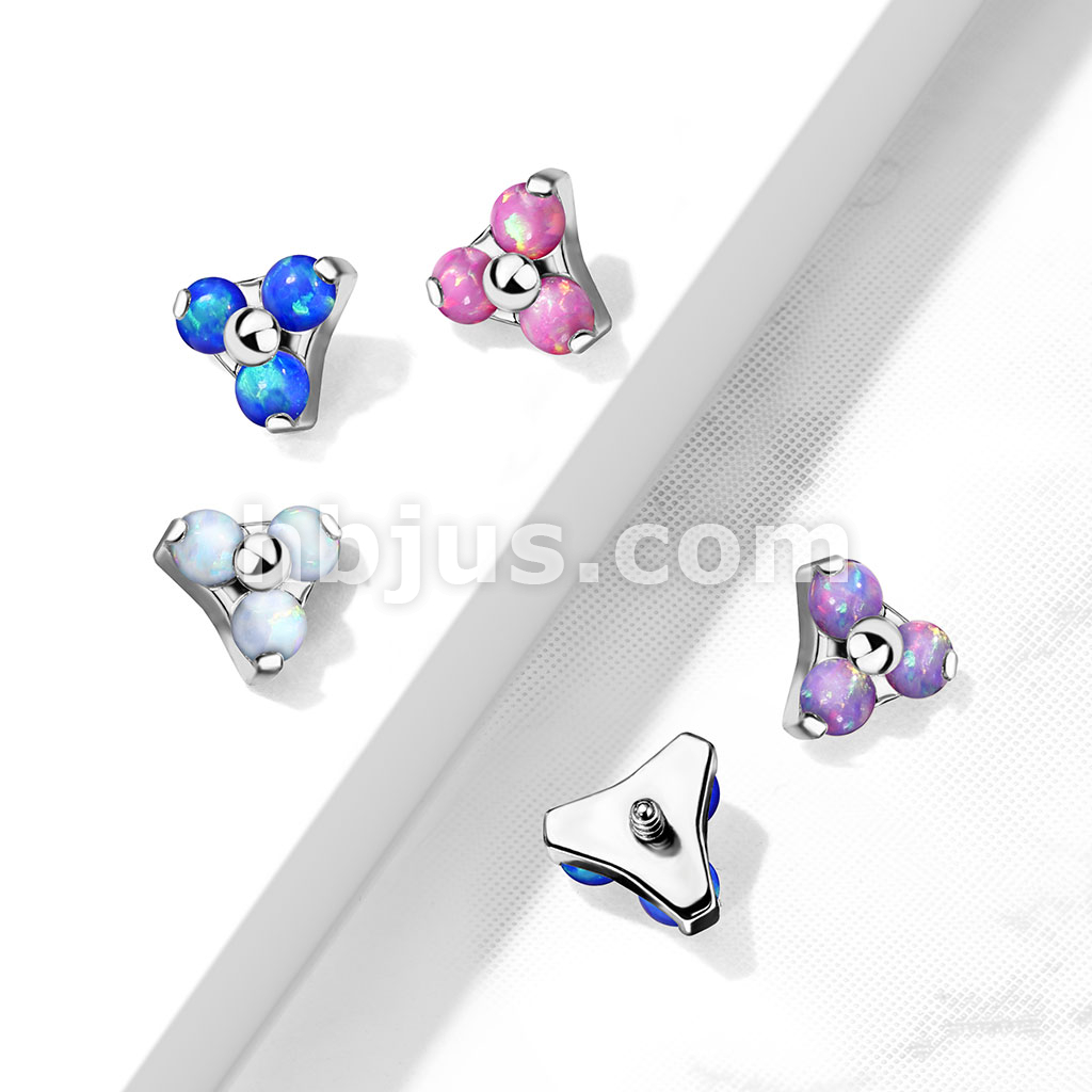 Three Opal Set Triangle 316L Surgical Steel Internally Threaded Top Parts