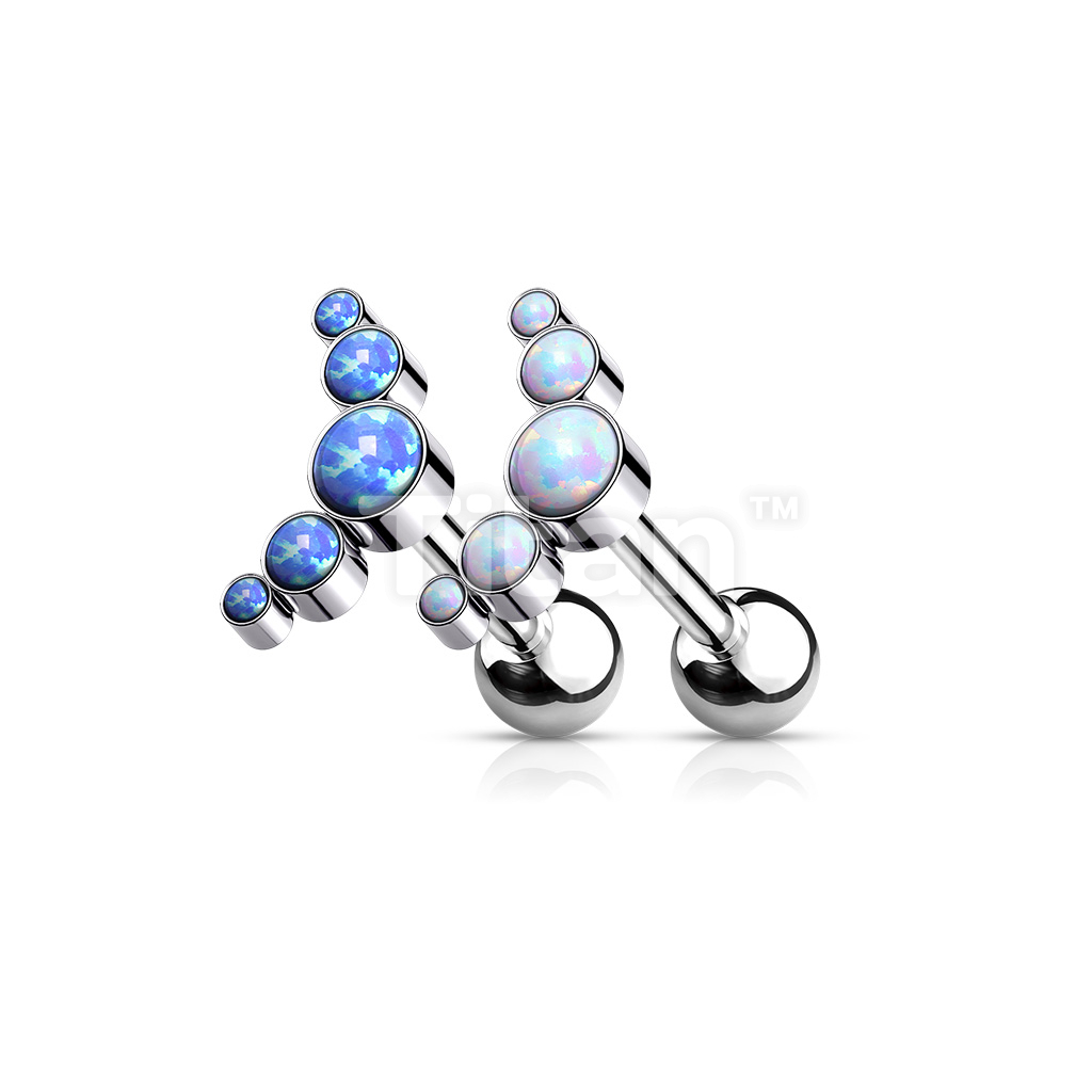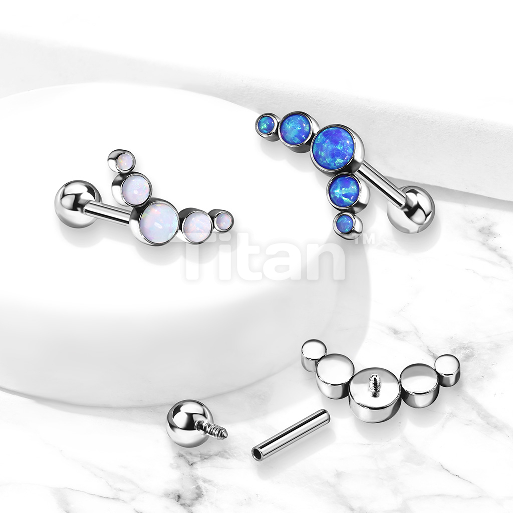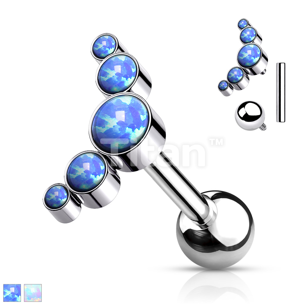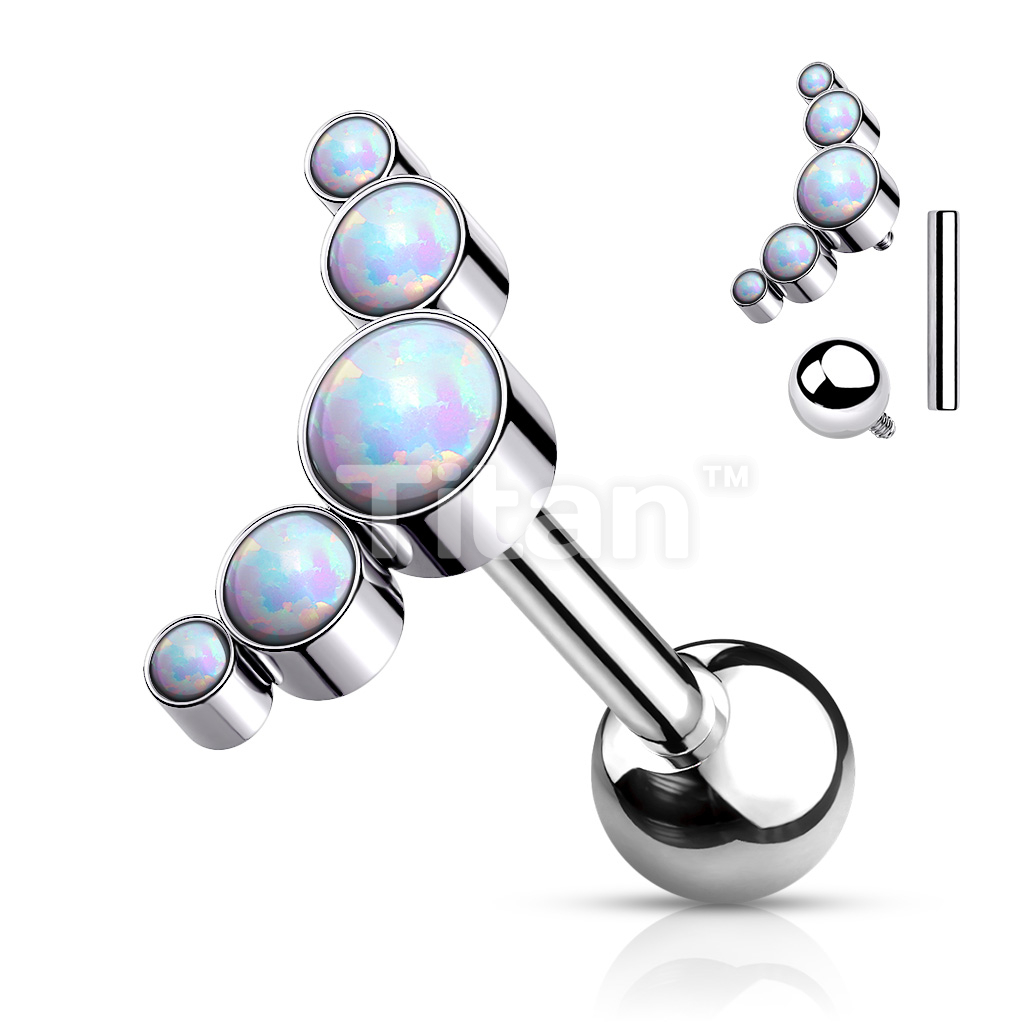 Implant Grade Titanium Internally Threaded 5-Bezel Set Round Opal Top Cartilage Barbell