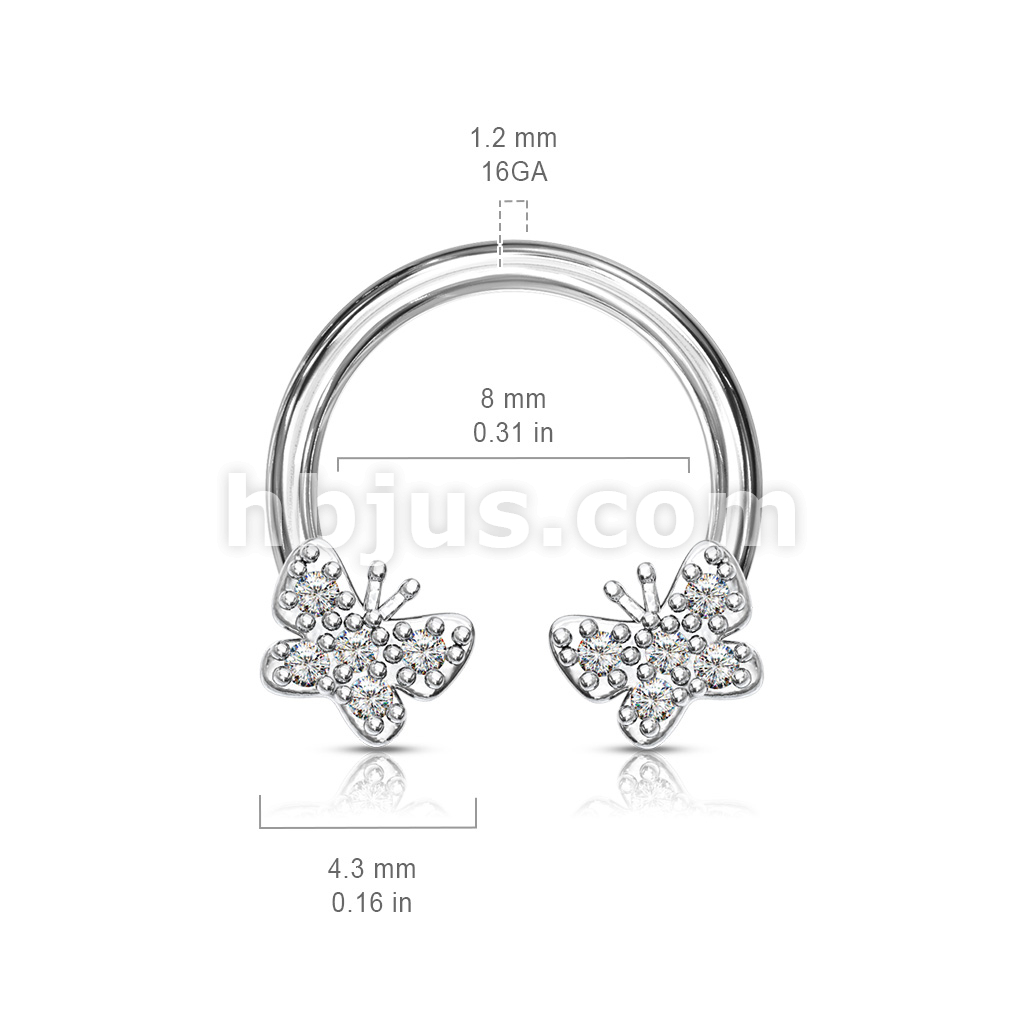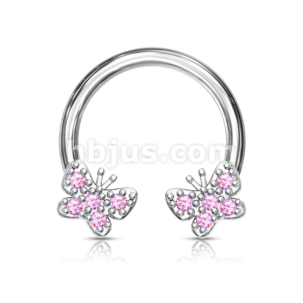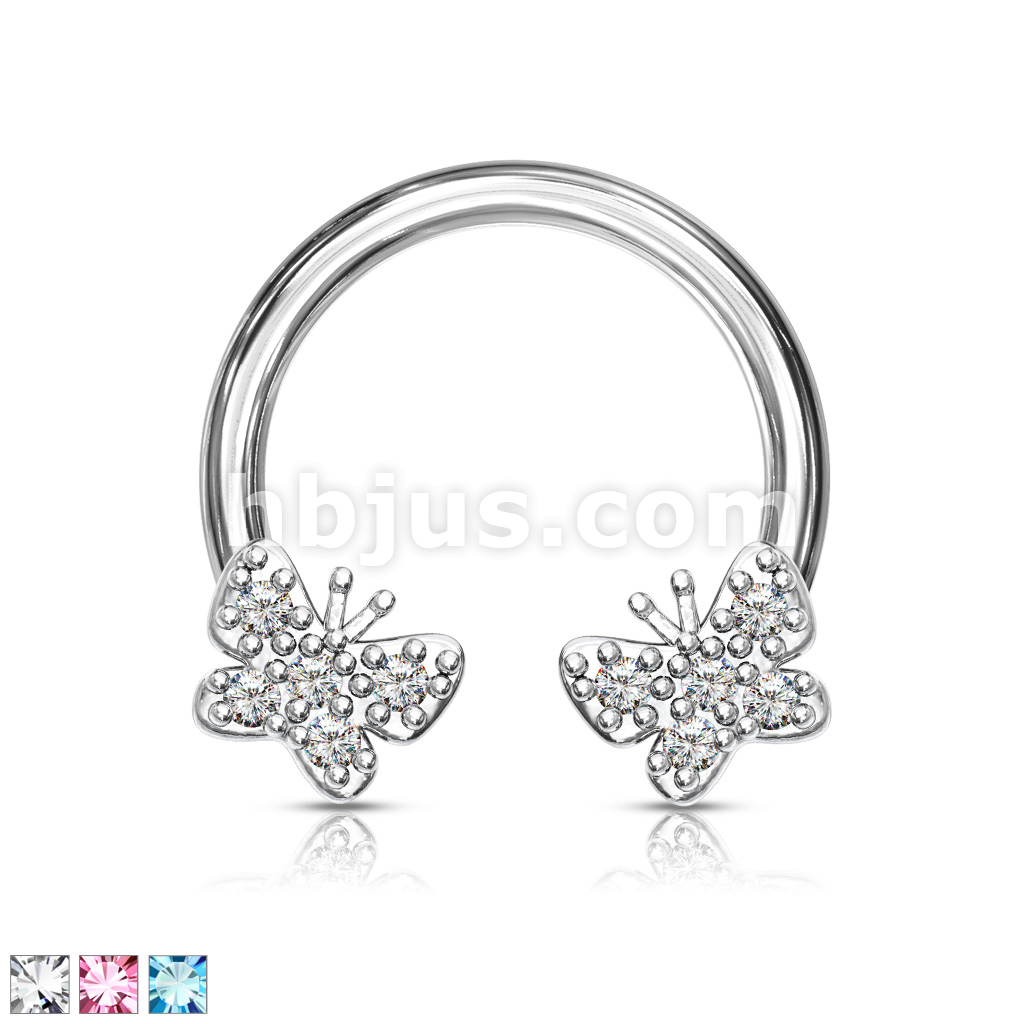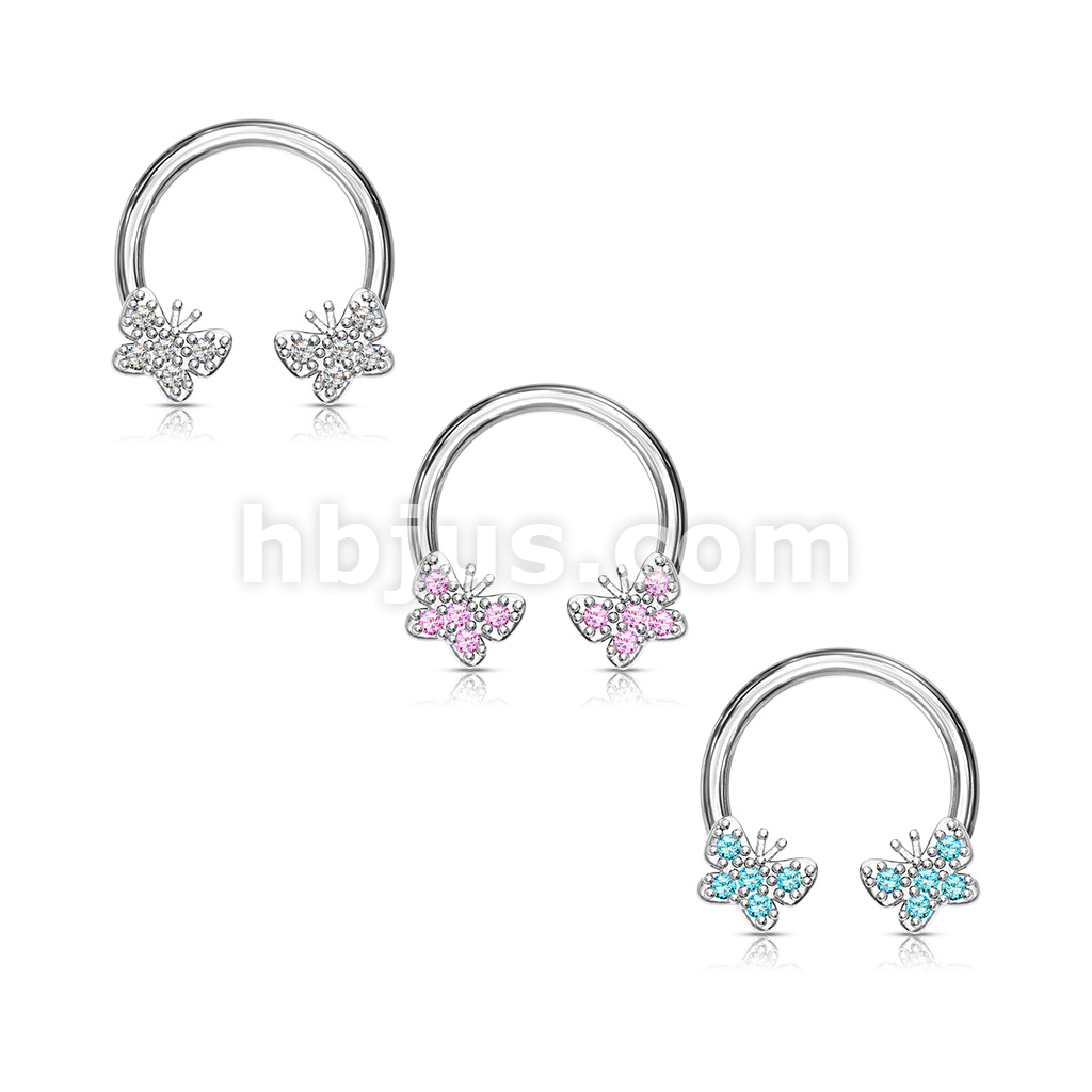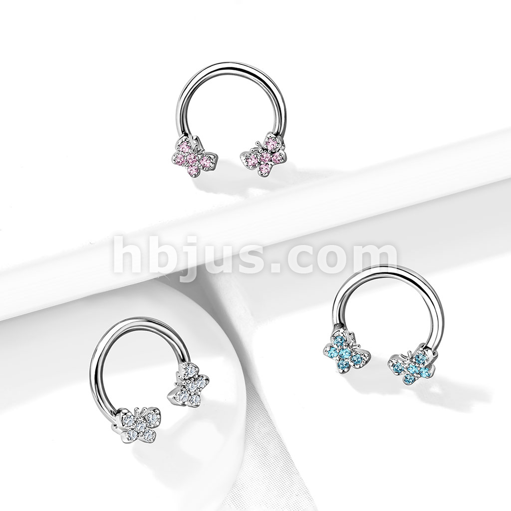 CZ Paved Butterfly Ends 316L Surgical Steel Circular, Horseshoe