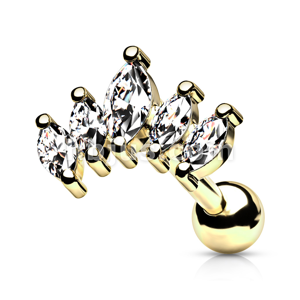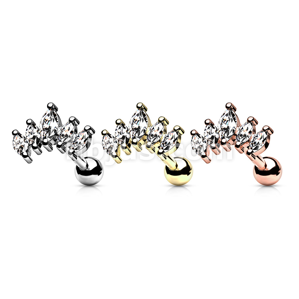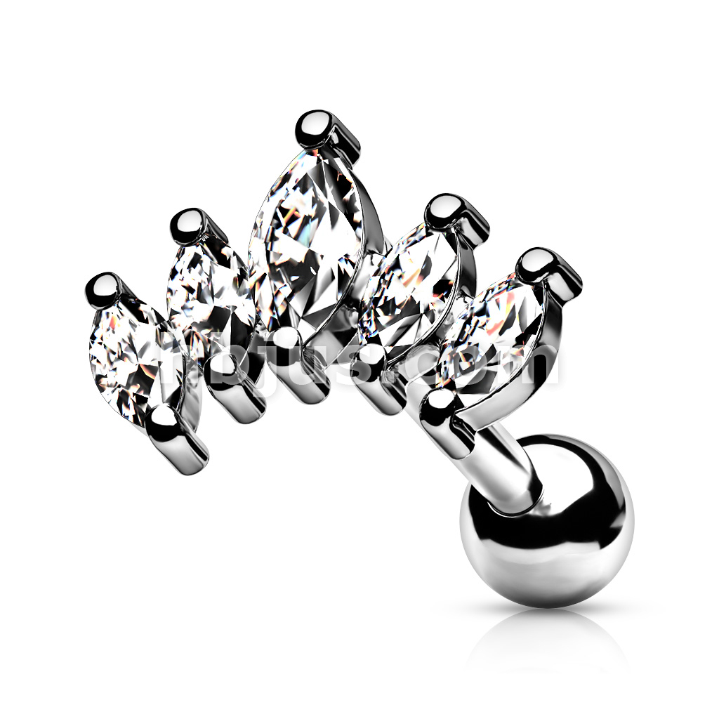 Graduated Prong Set Marquise CZ 316L Surgical Steel Cartilage, Tragus Barbell Studs