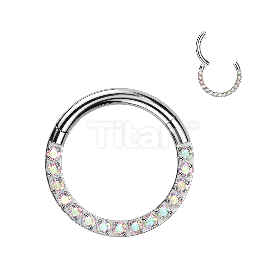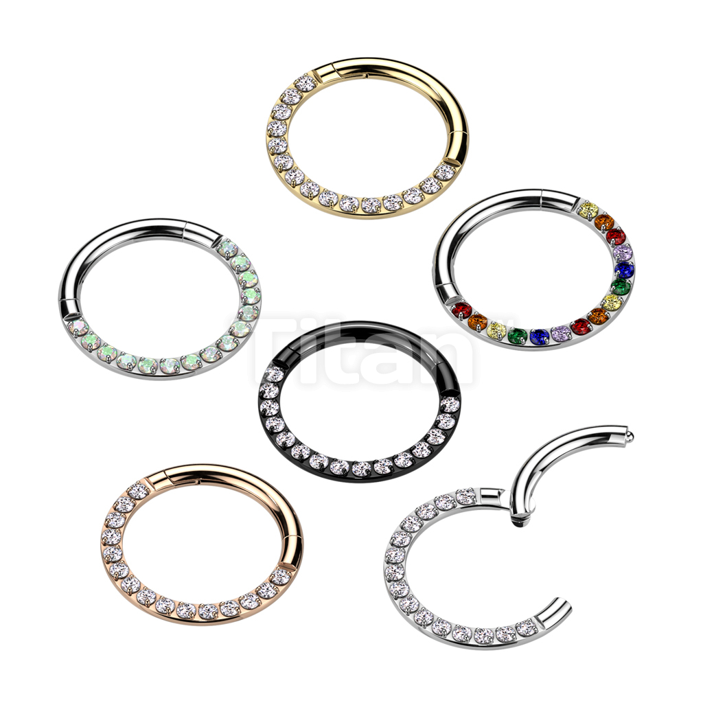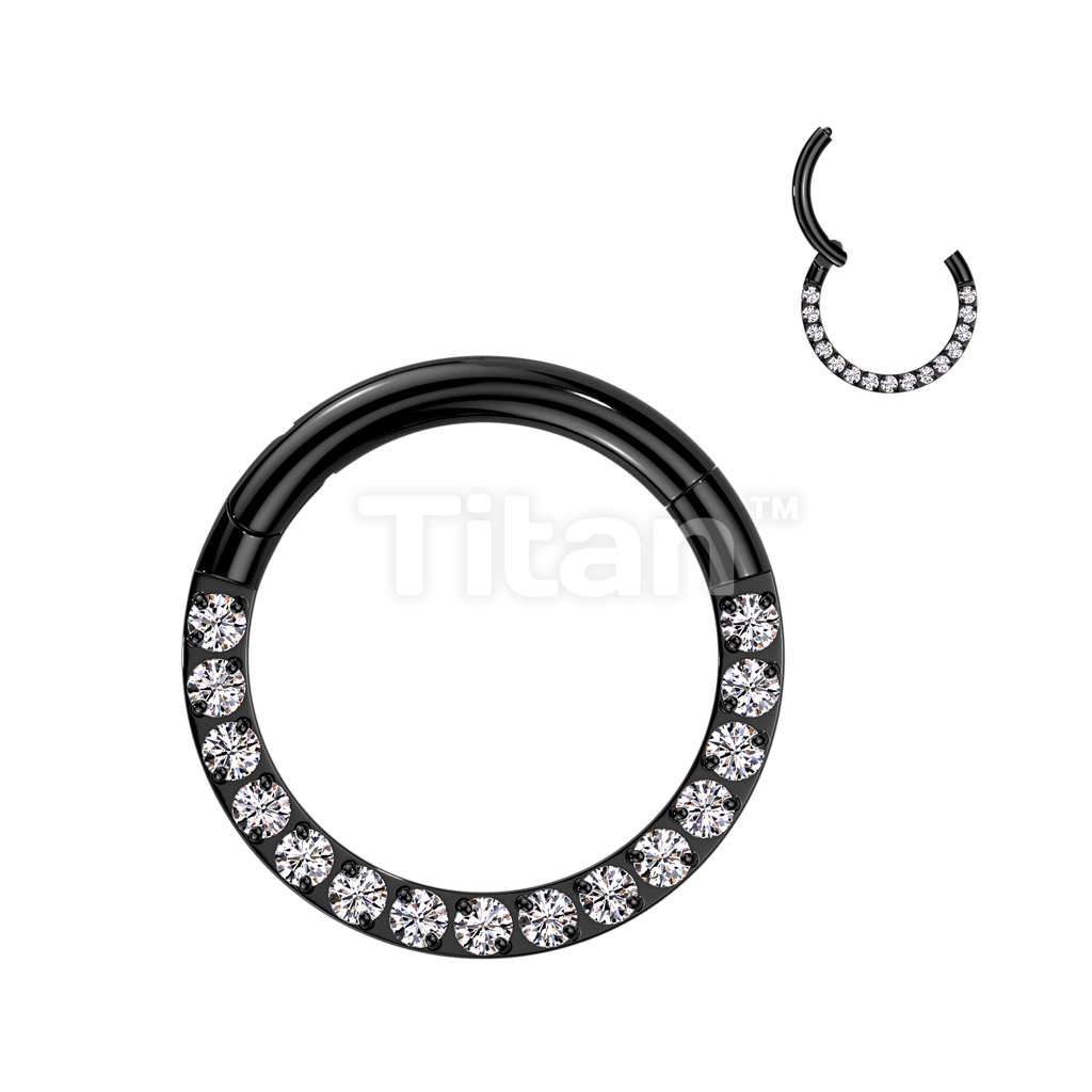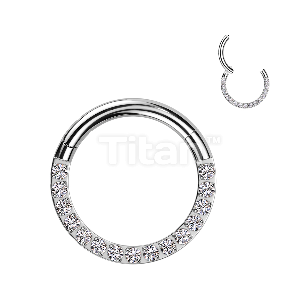 Implant Grade Titanium Hinged Segment Hoop Ring With Forward Facing Pave CNC Set CZ