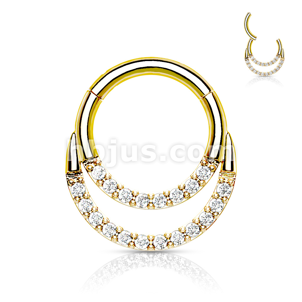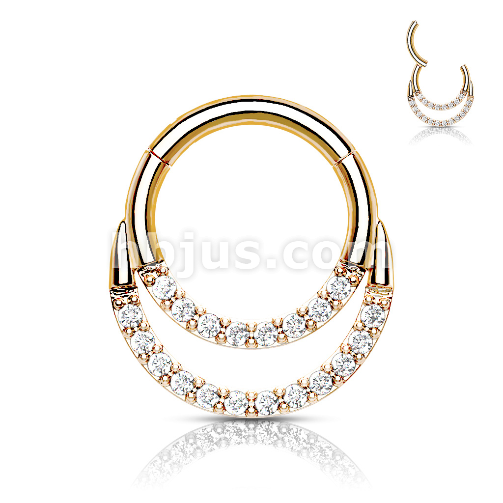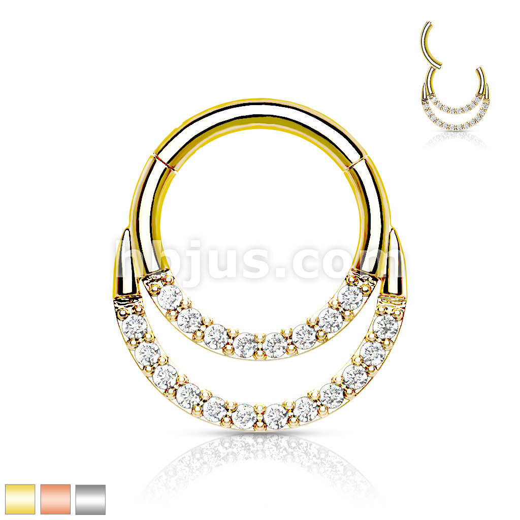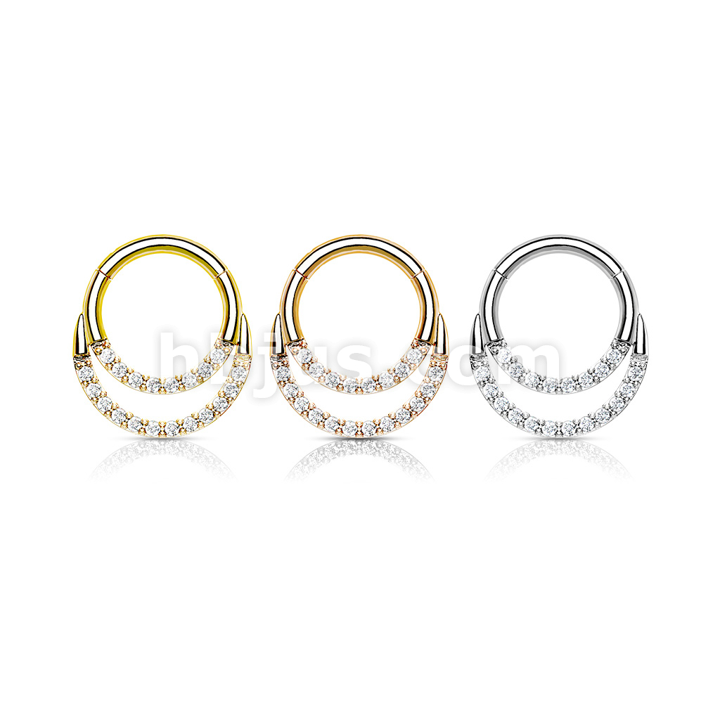 High Quality Precision All 316L Surgical Steel Hinged Segment Hoop Rings with CNC Set Double Lined CZ