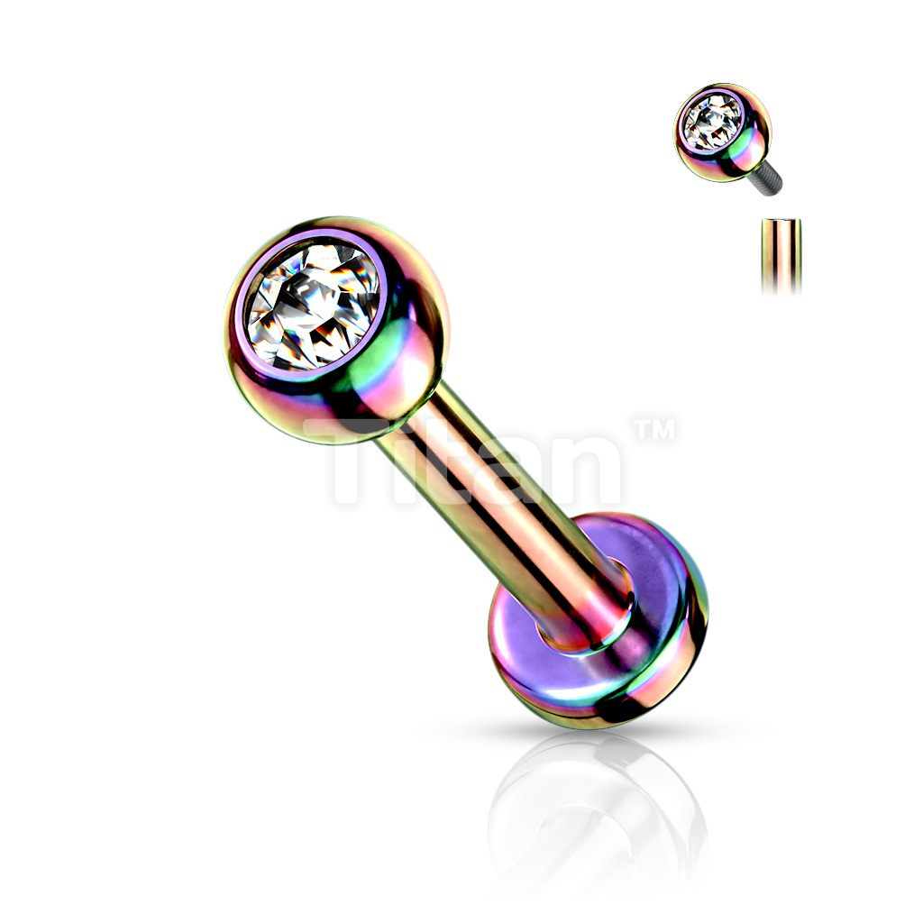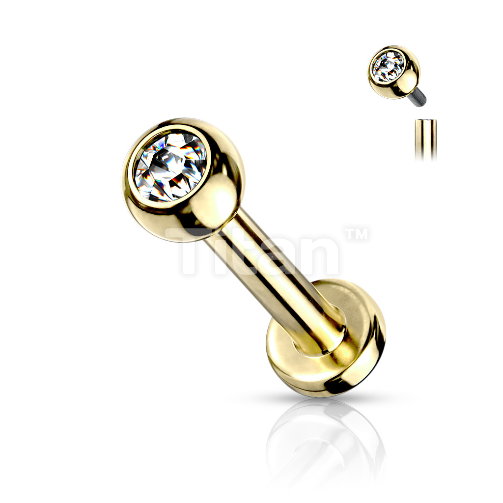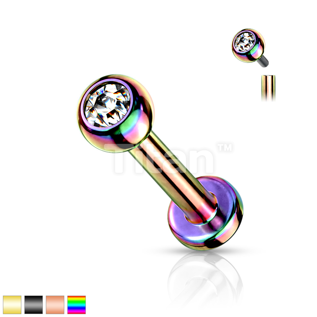 Implant Grade Titanium Internally Threaded PVD Plated Jewel Top Labret