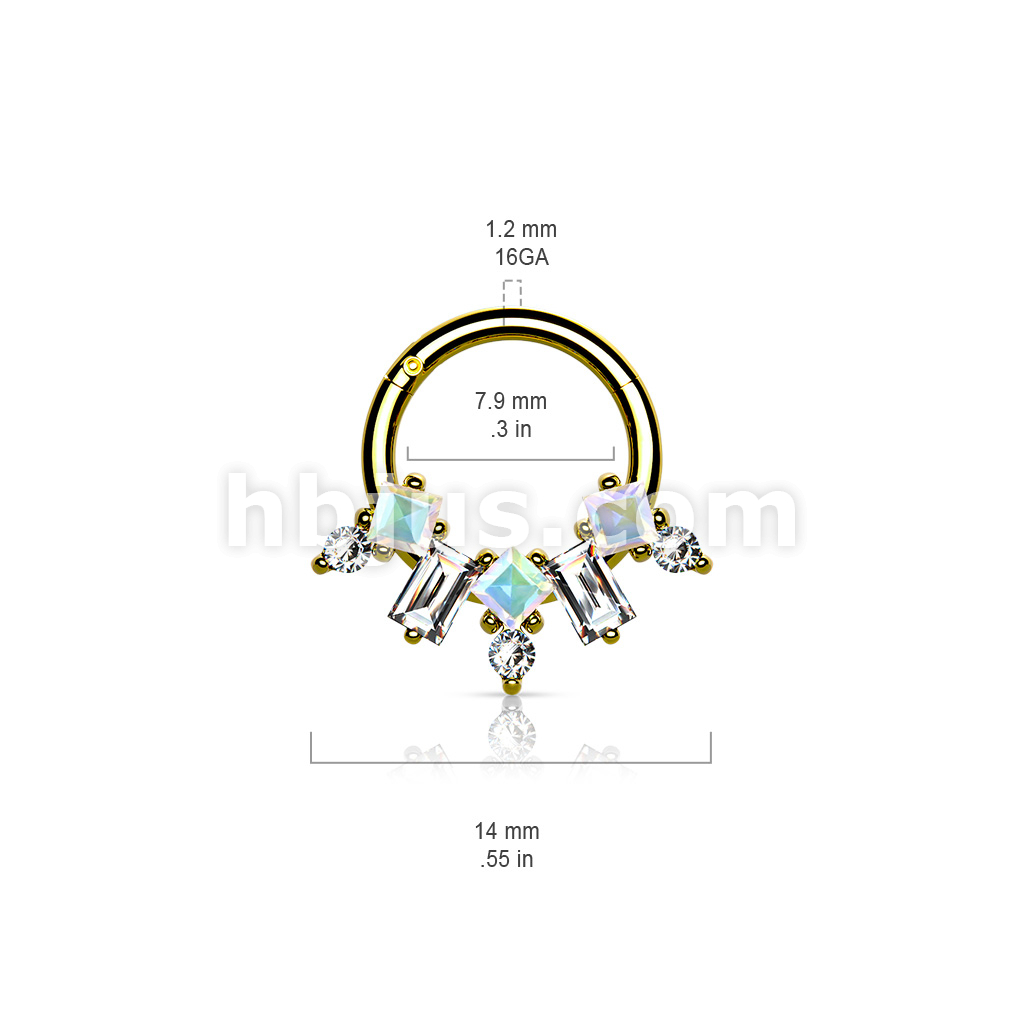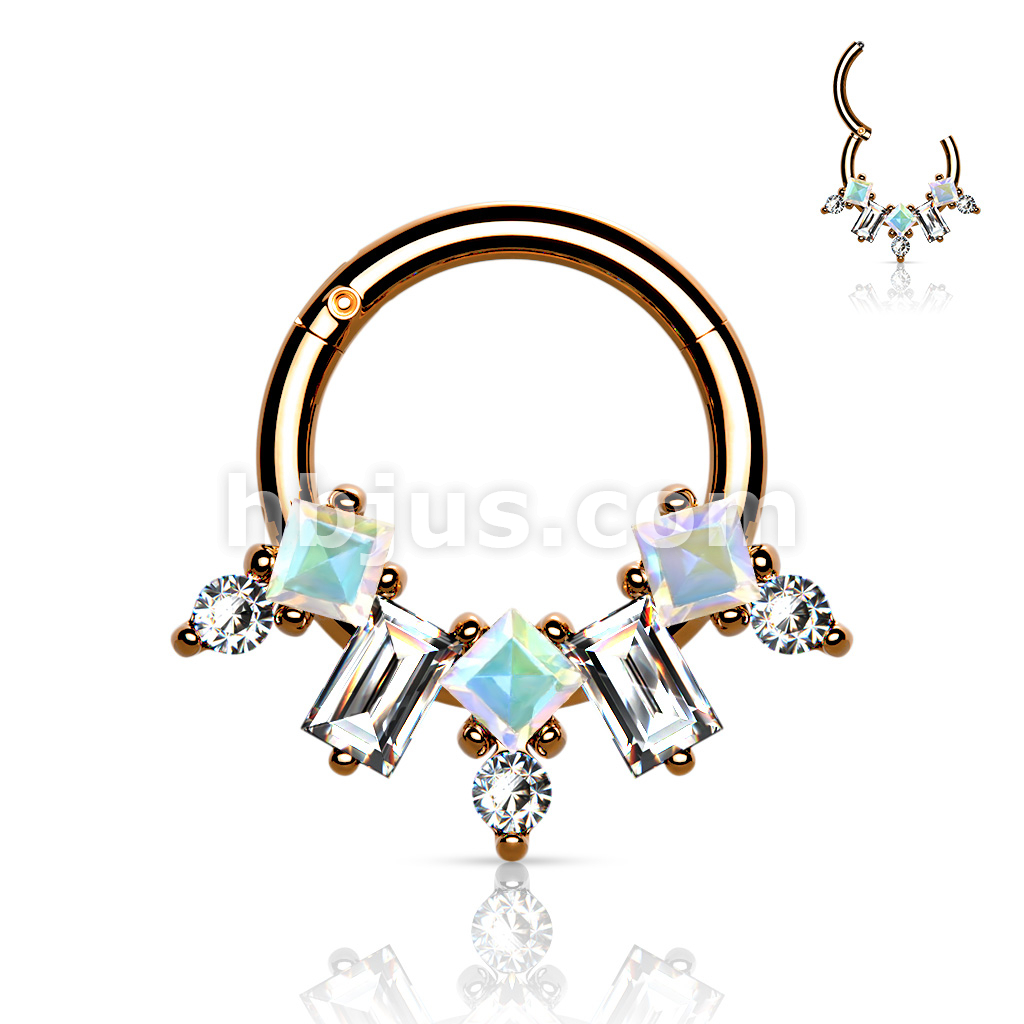 Multi CZ Fan 316L Surgical Steel Hinge Hoop Segment Rings