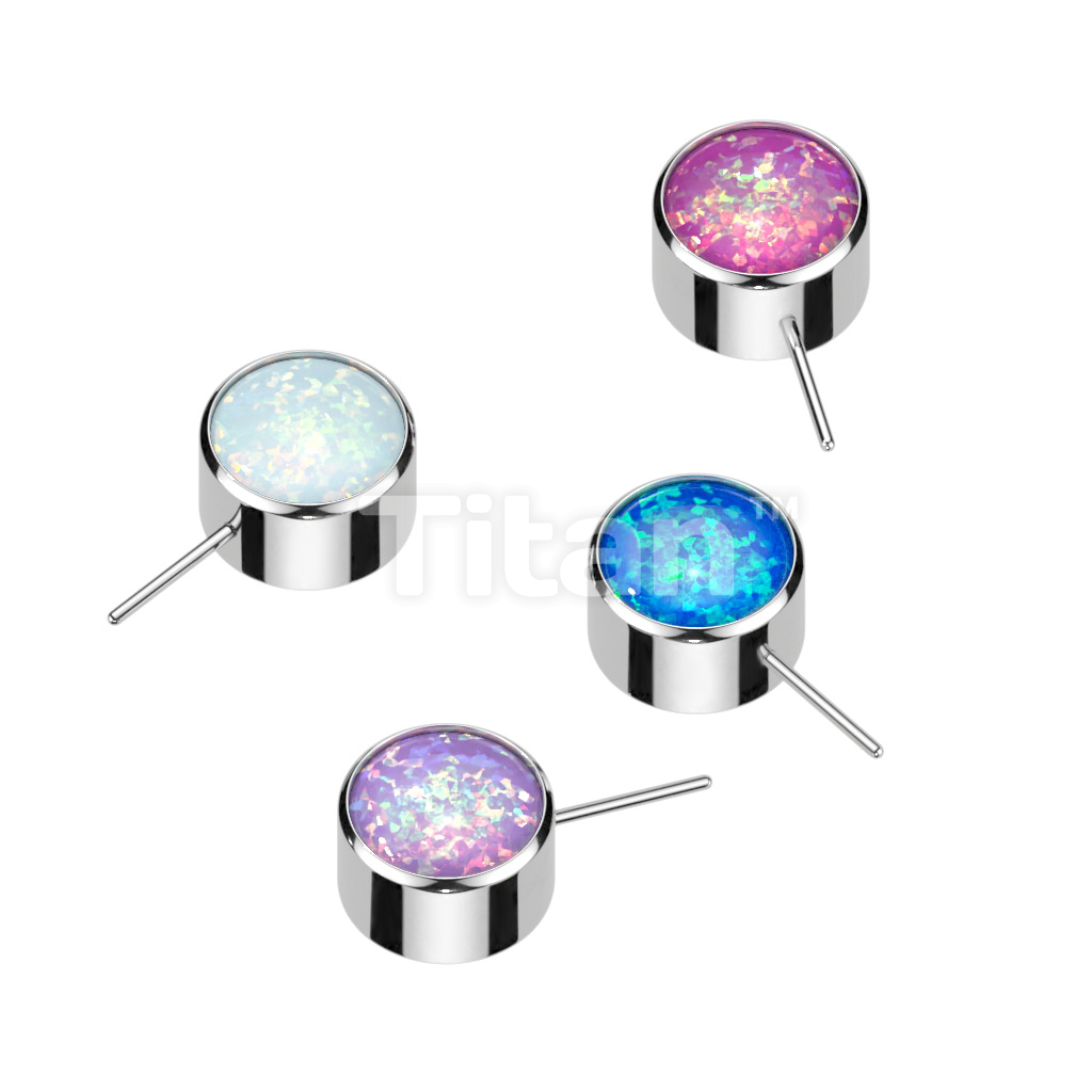 Implant Grade Titanium Threadless Push In Bezel Set Forward Facing Opal Ball