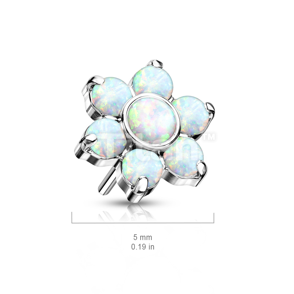 Implant Grade Titanium Threadless Push In Opal Flower With Bezel Set Center and Prong Set Petals