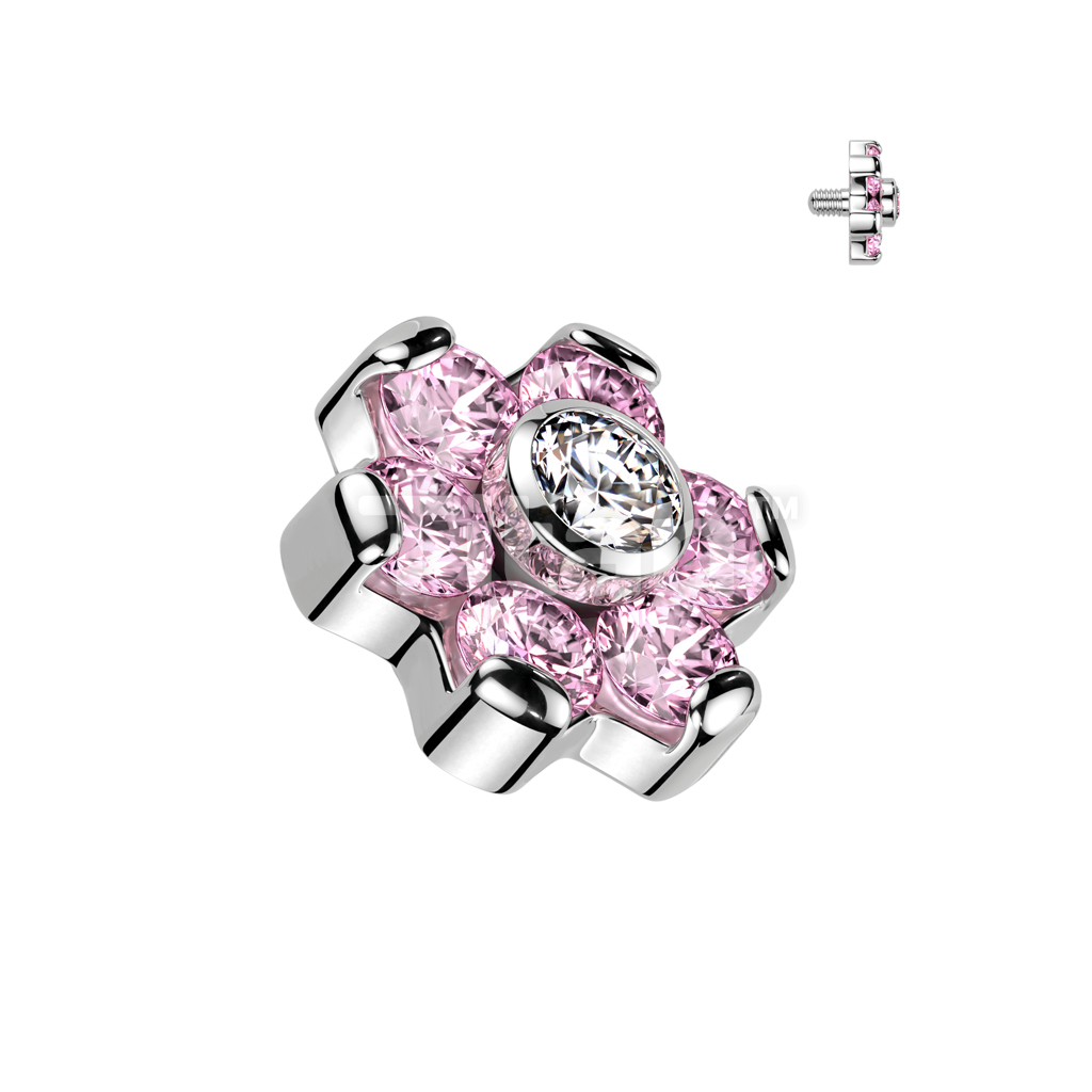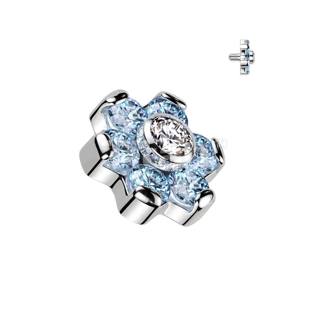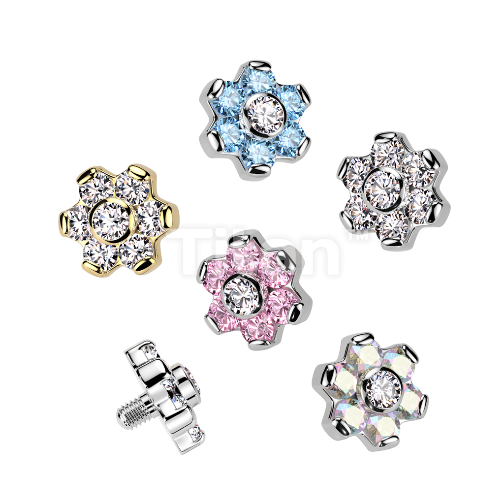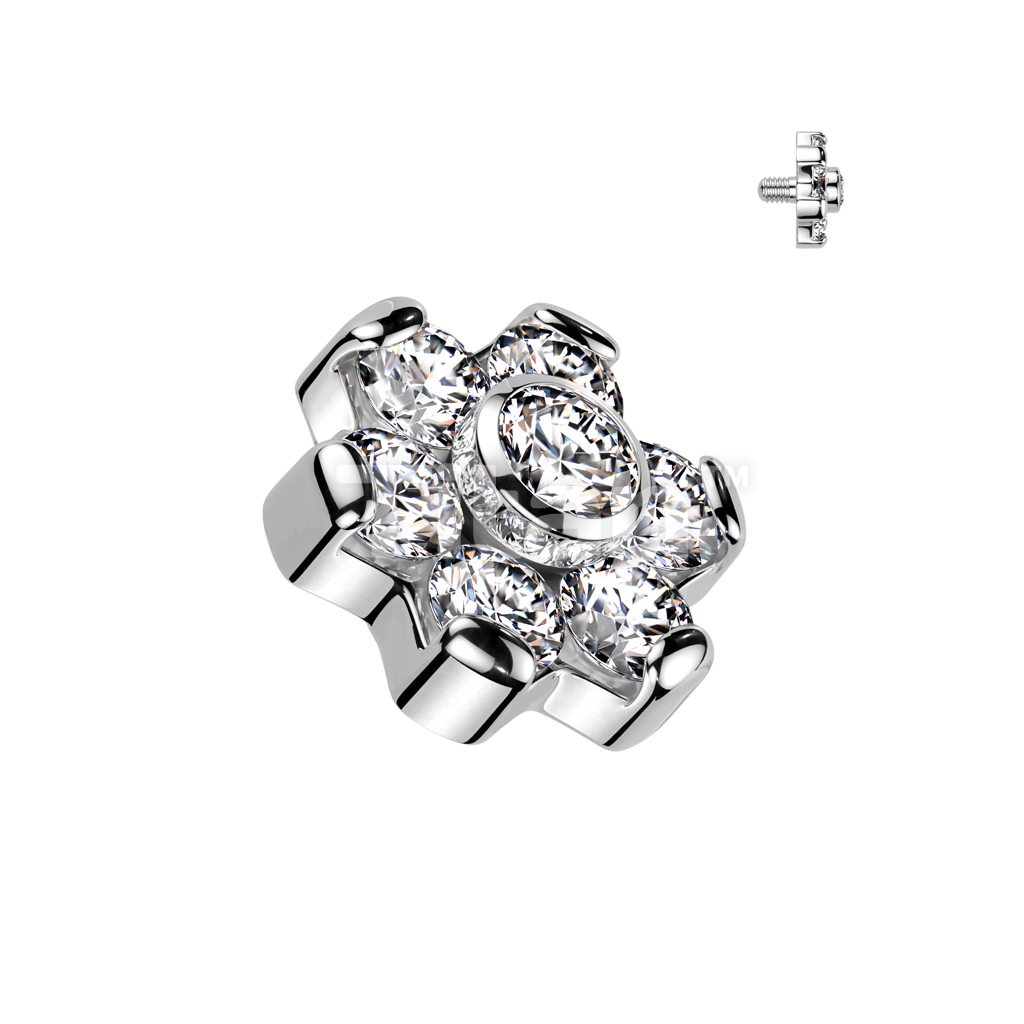 Implant Grade Titanium Internally Threaded CZ Flower Top With Bezel Set Center and Prong Set Petals