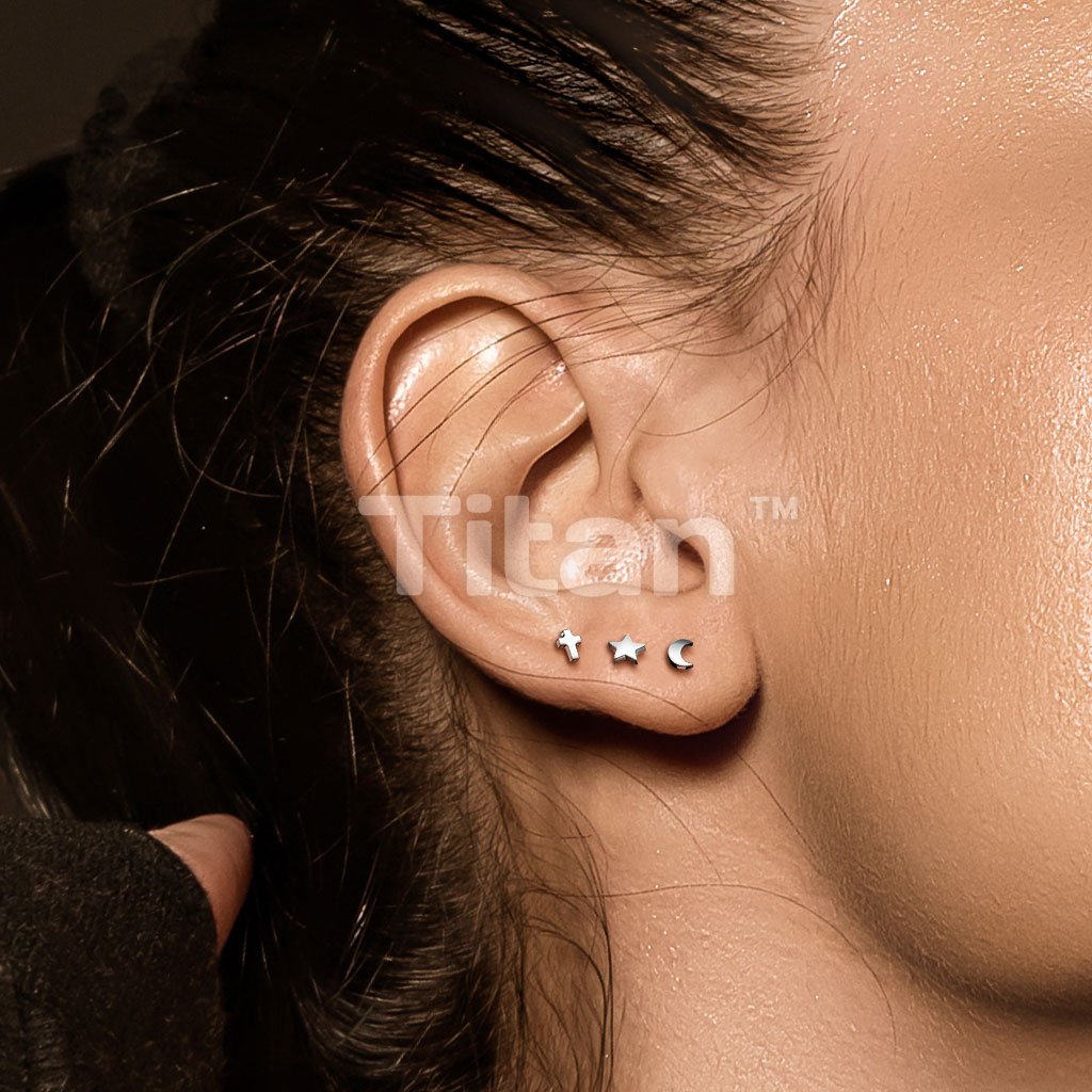 Implant Grade Titanium Internally Threaded Crescent Moon Top Labret Stud