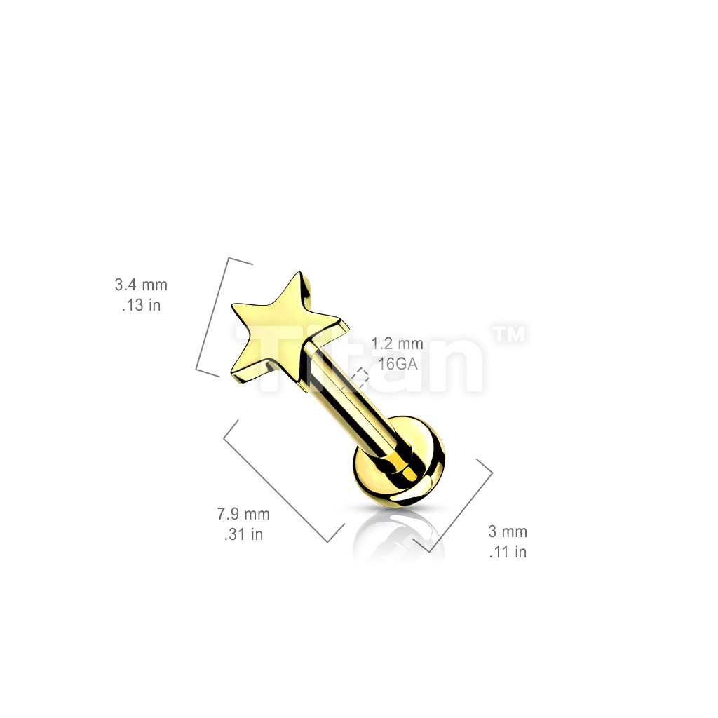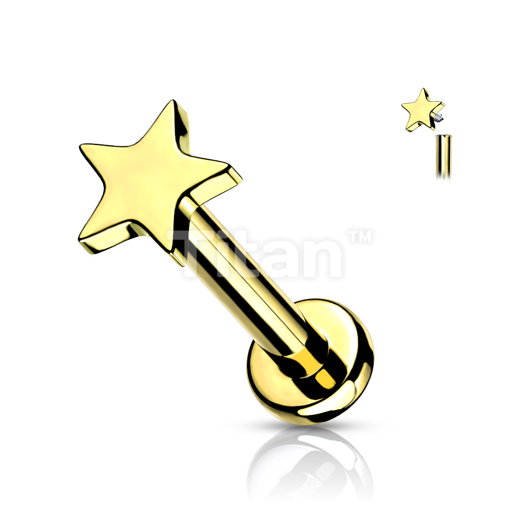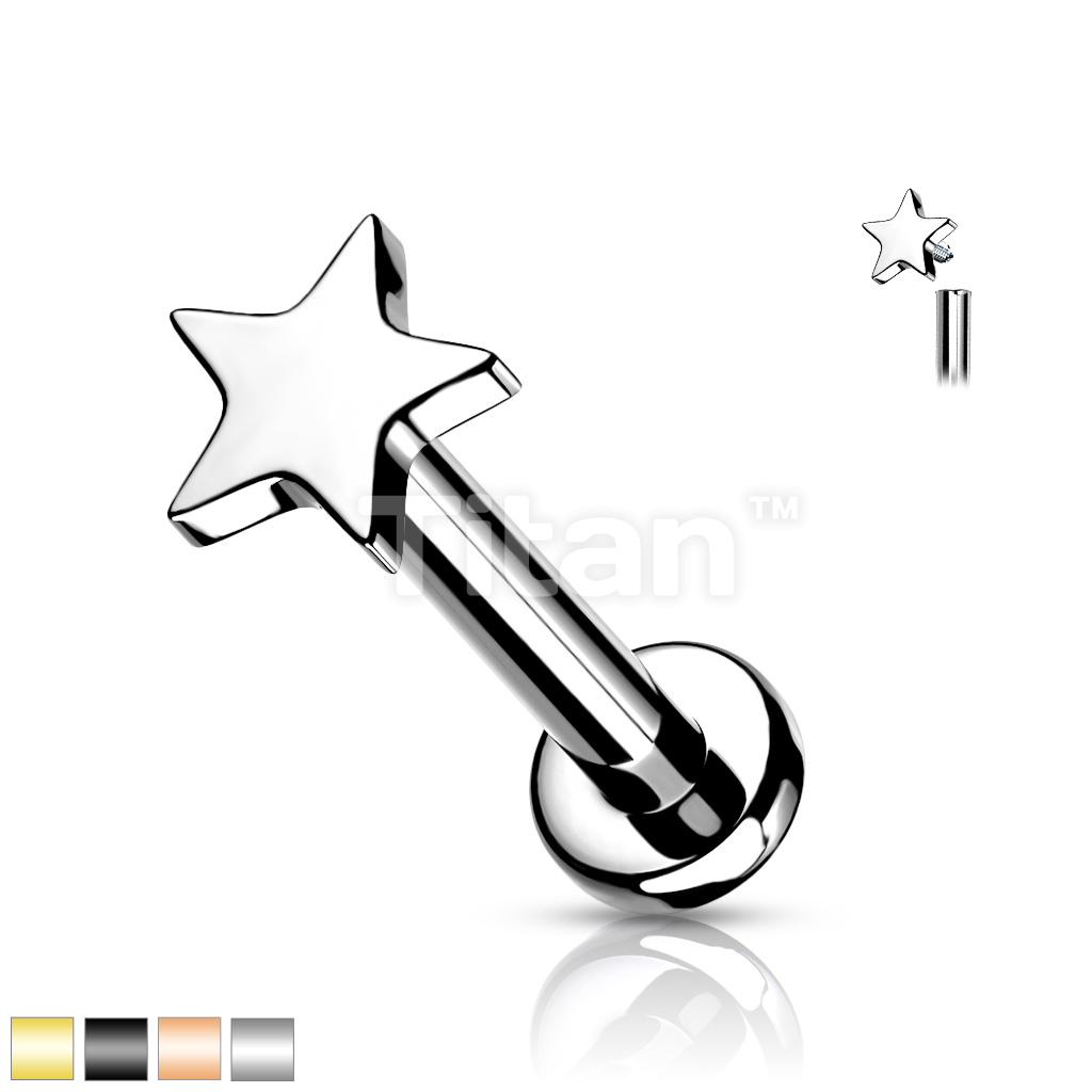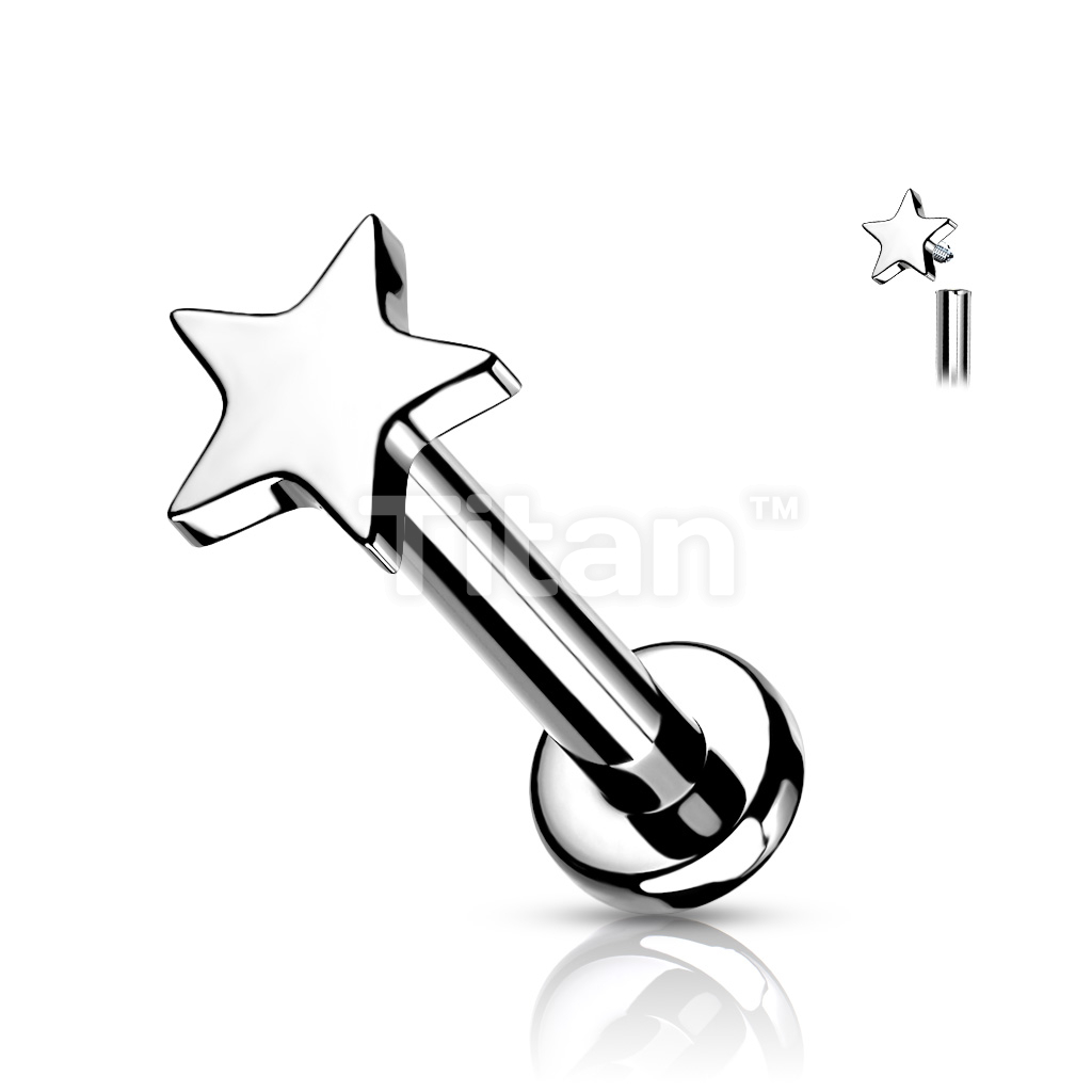 Implant Grade Titanium Internally Threaded Star Top Labret Stud