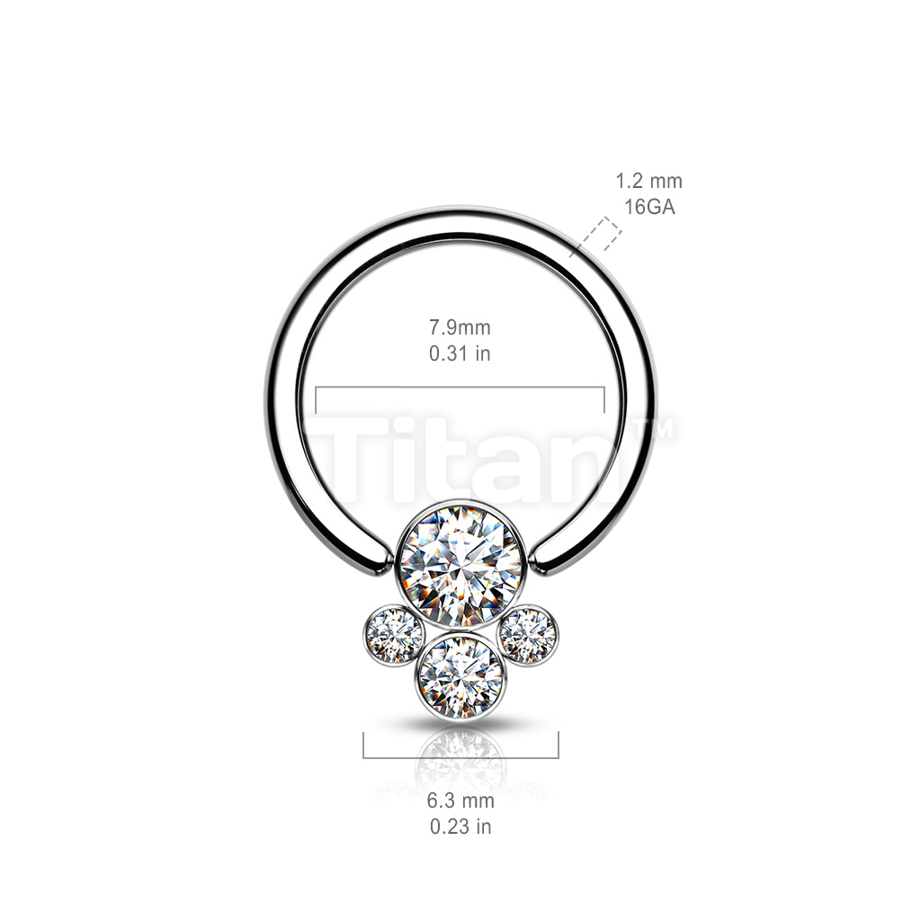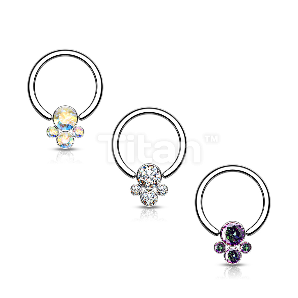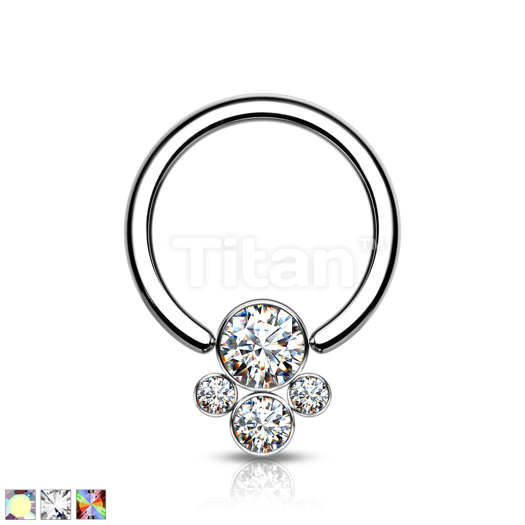 Implant Grade Titanium Captive Bead Rings With 4 Bezel Set CZ Cluster
